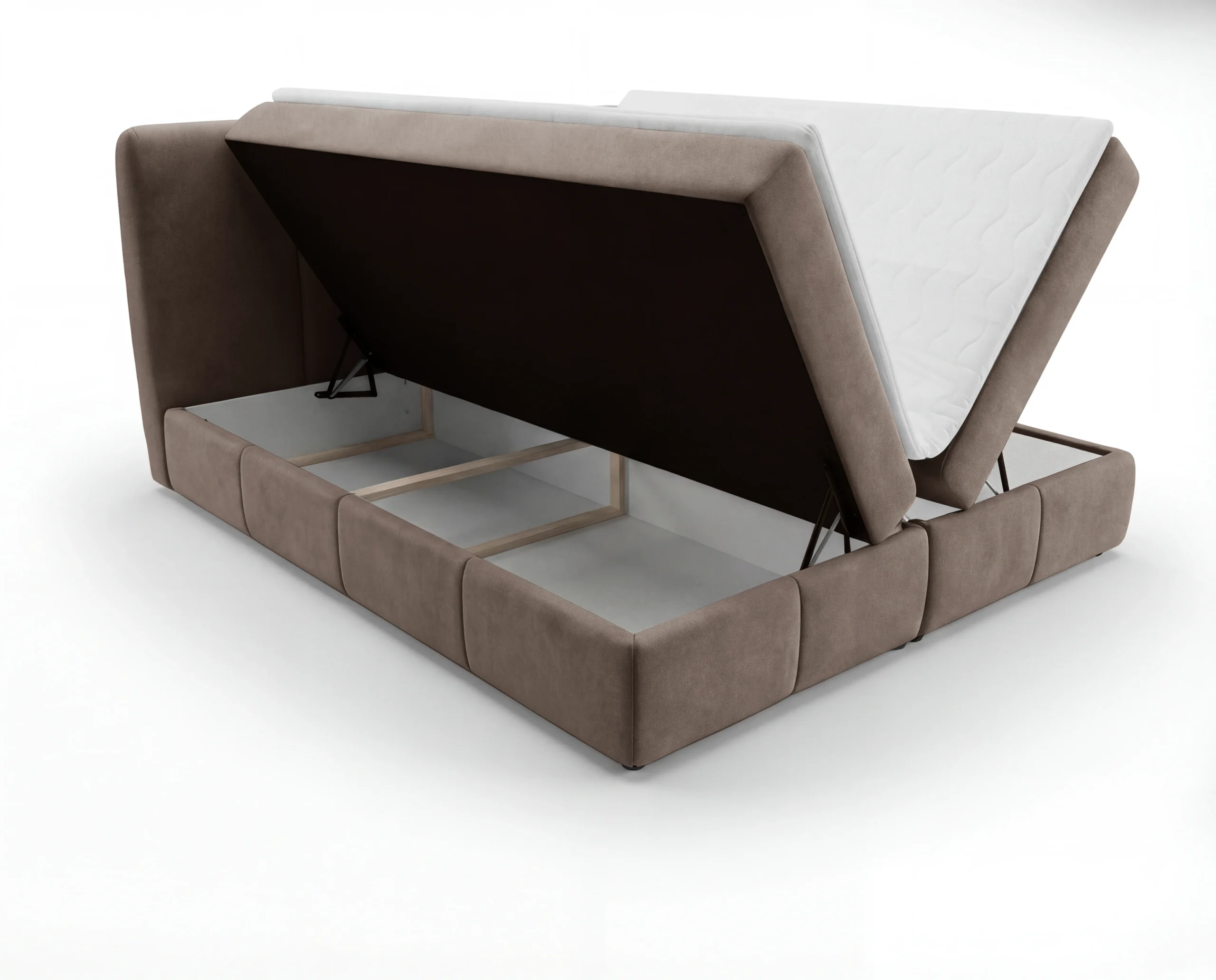 Model został wyposażony w dwa pojemniki na pościel, które oferują dużą przestrzeń do przechowywania kołder, poduszek czy sezonowych tekstyliów. To praktyczne rozwiązanie sprawdzi się zarówno w mniejszych, jak i przestronnych sypialniach, pomagając utrzymać porządek i maksymalnie wykorzystać przestrzeń.