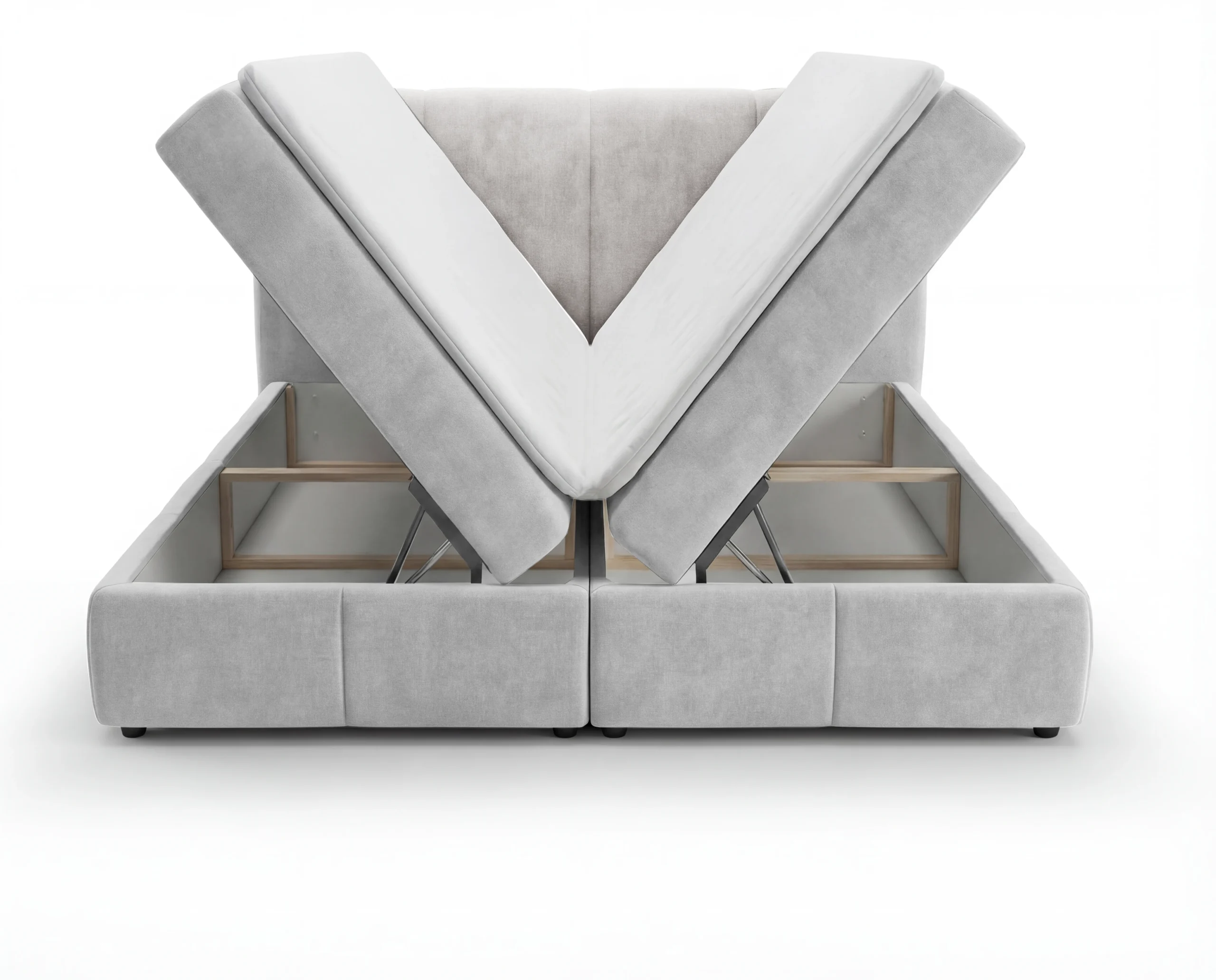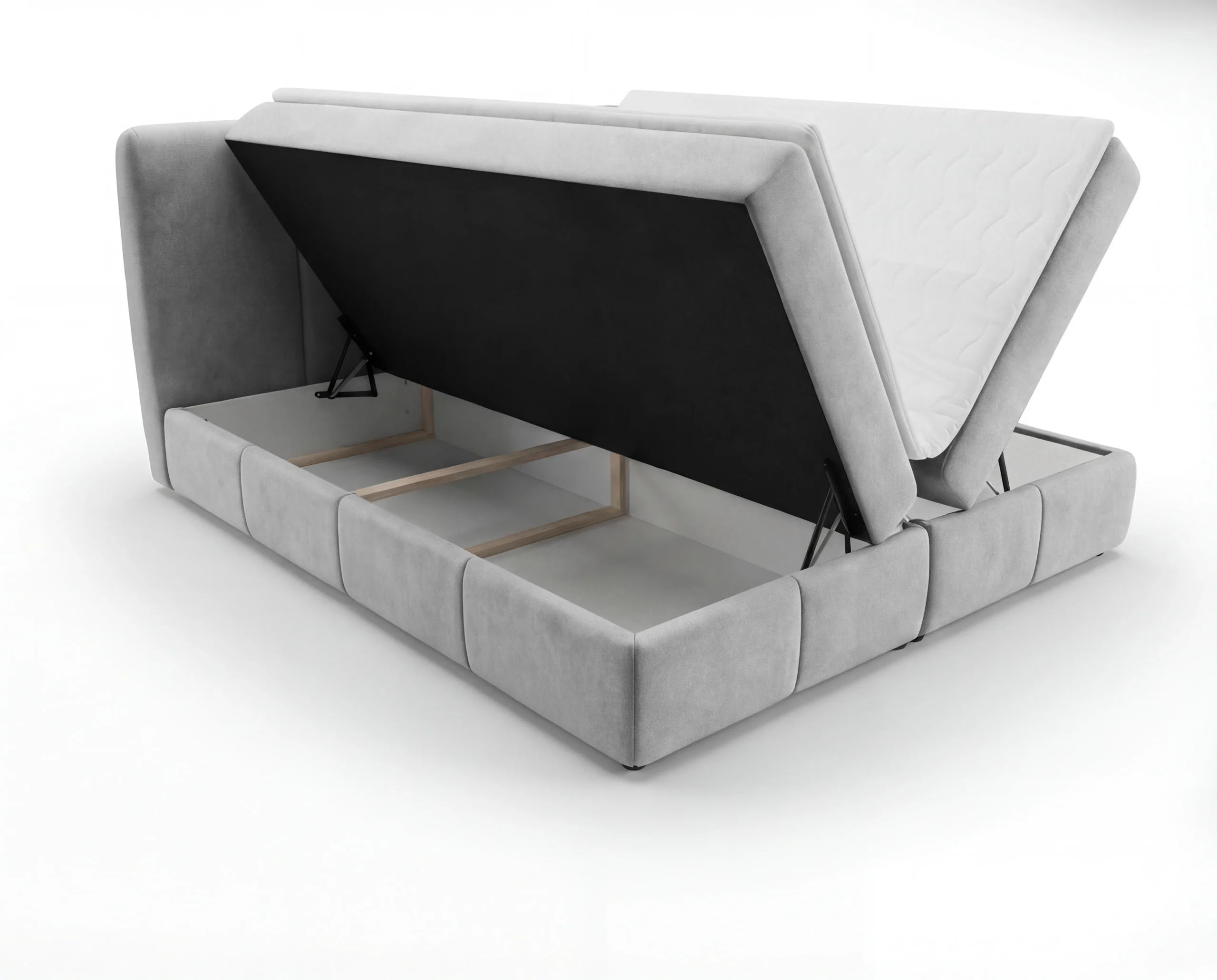 Model został wyposażony w dwa pojemniki na pościel, które oferują dużą przestrzeń do przechowywania kołder, poduszek czy sezonowych tekstyliów. To praktyczne rozwiązanie sprawdzi się zarówno w mniejszych, jak i przestronnych sypialniach, pomagając utrzymać porządek i maksymalnie wykorzystać przestrzeń.