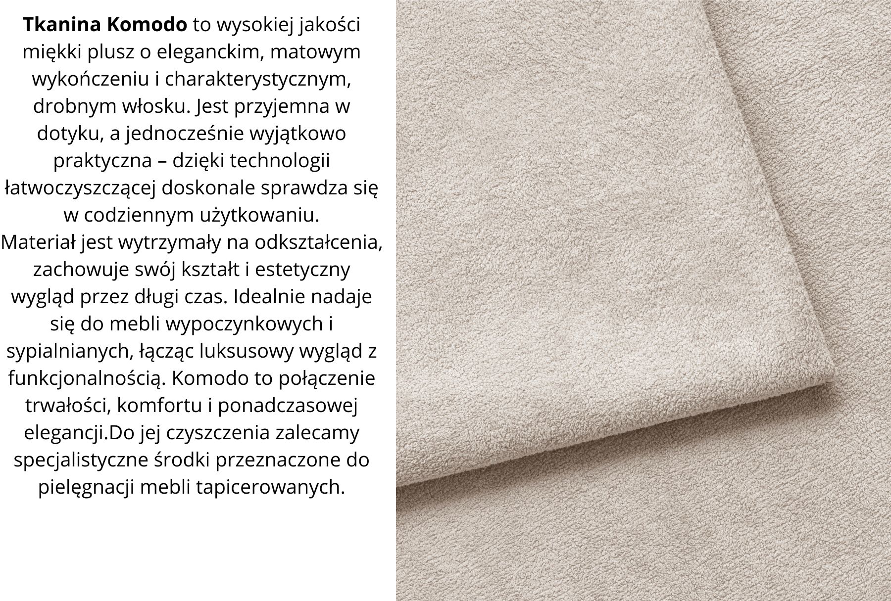 ✔ trwała tkanina Komodo plusz łatwoczyszczący