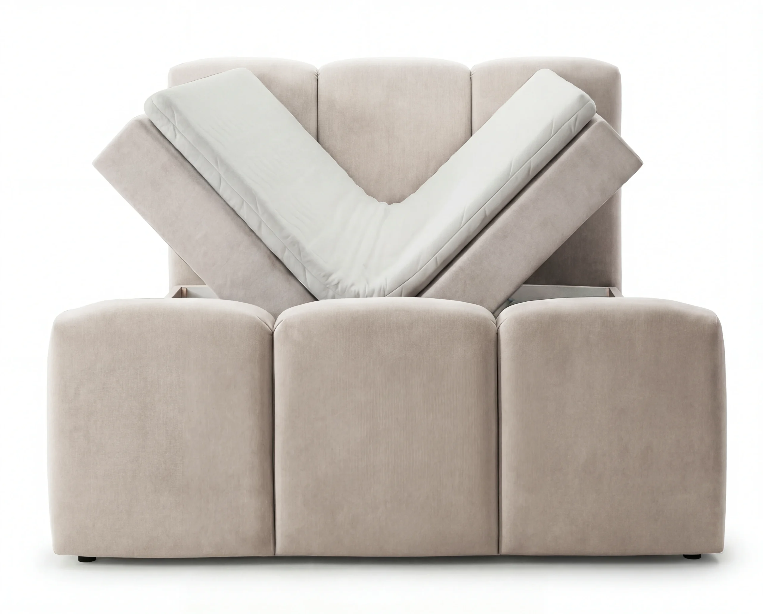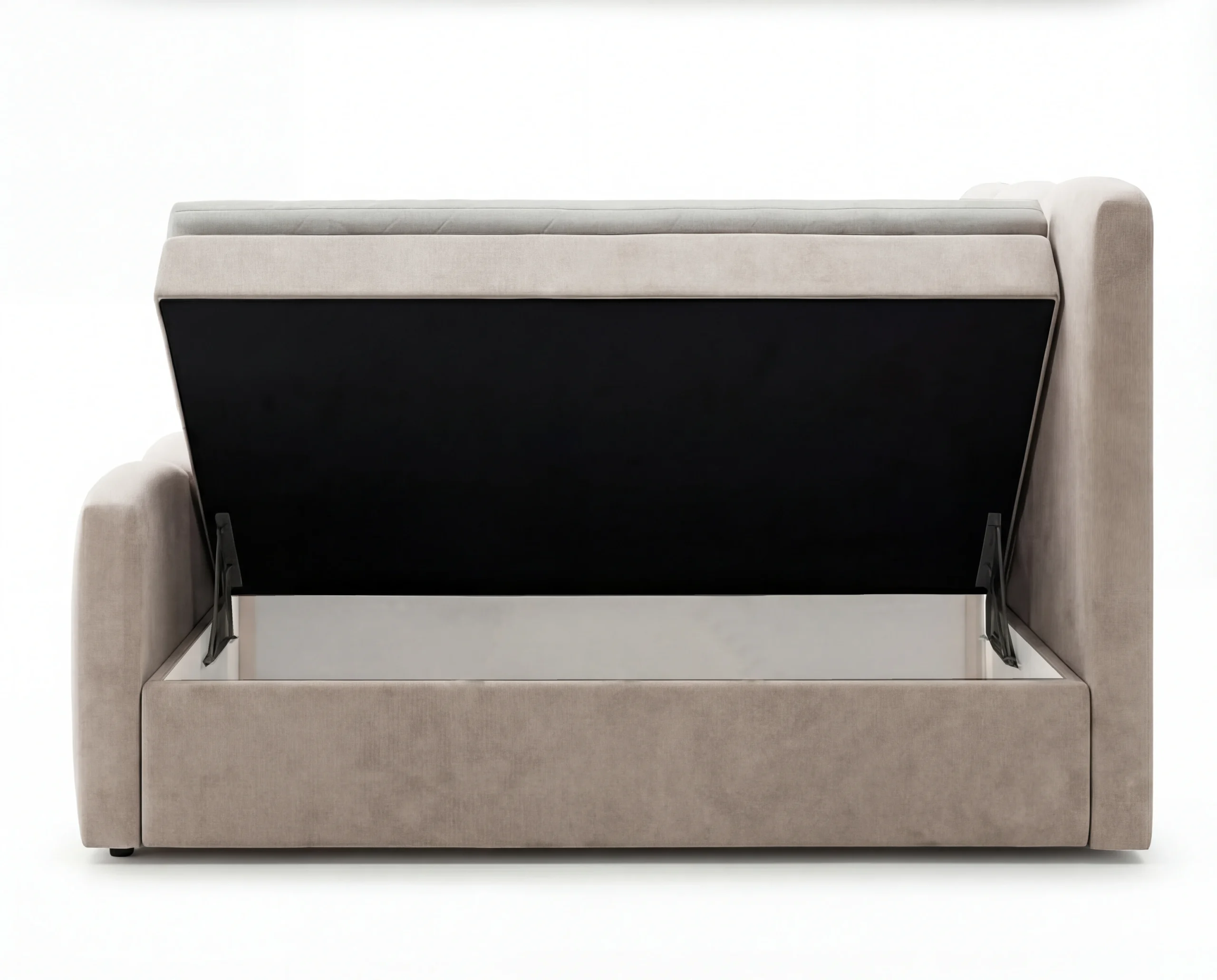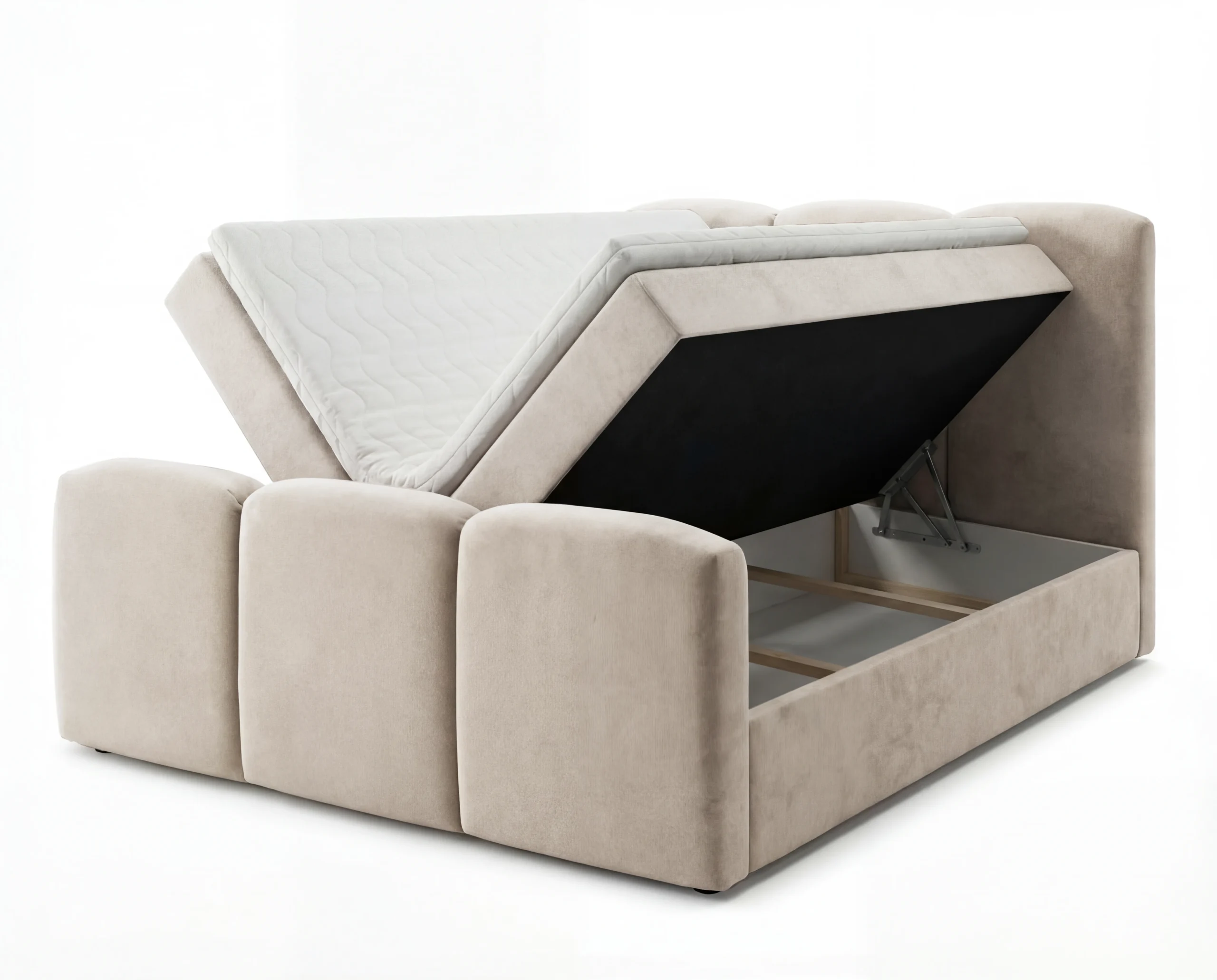 Łóżko zostało wyposażone w 2 pojemniki na pościel, które zapewniają dużą przestrzeń do przechowywania. Każda skrzynia posiada duży, praktyczny schowek, idealny na pościel, koce czy sezonowe tekstylia. System otwierania jest wygodny i ułatwia codzienne użytkowanie.