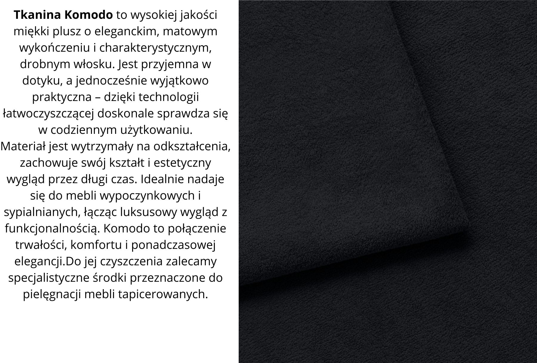 ✔ trwała tkanina Komodo plusz łatwoczyszczący