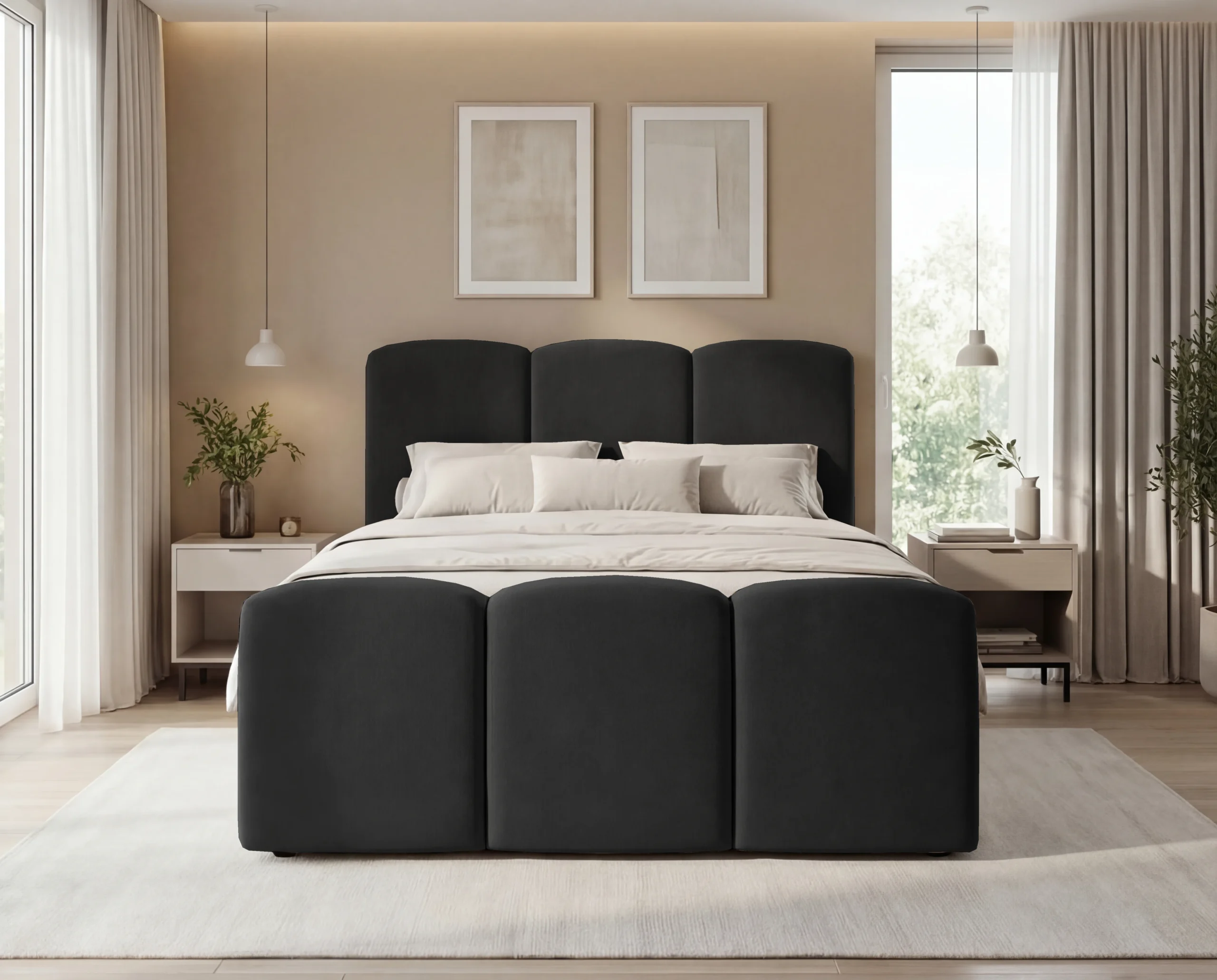 Nowoczesne łóżko kontynentalne to idealne połączenie elegancji, wygody i funkcjonalności. Model wyróżnia się masywną, miękką bryłą oraz efektownym zagłówkiem z pionowymi głębokimi wciągami, które nadają wnętrzu luksusowego charakteru. To doskonały wybór do sypialni w stylu nowoczesnym, glamour lub minimalistycznym.