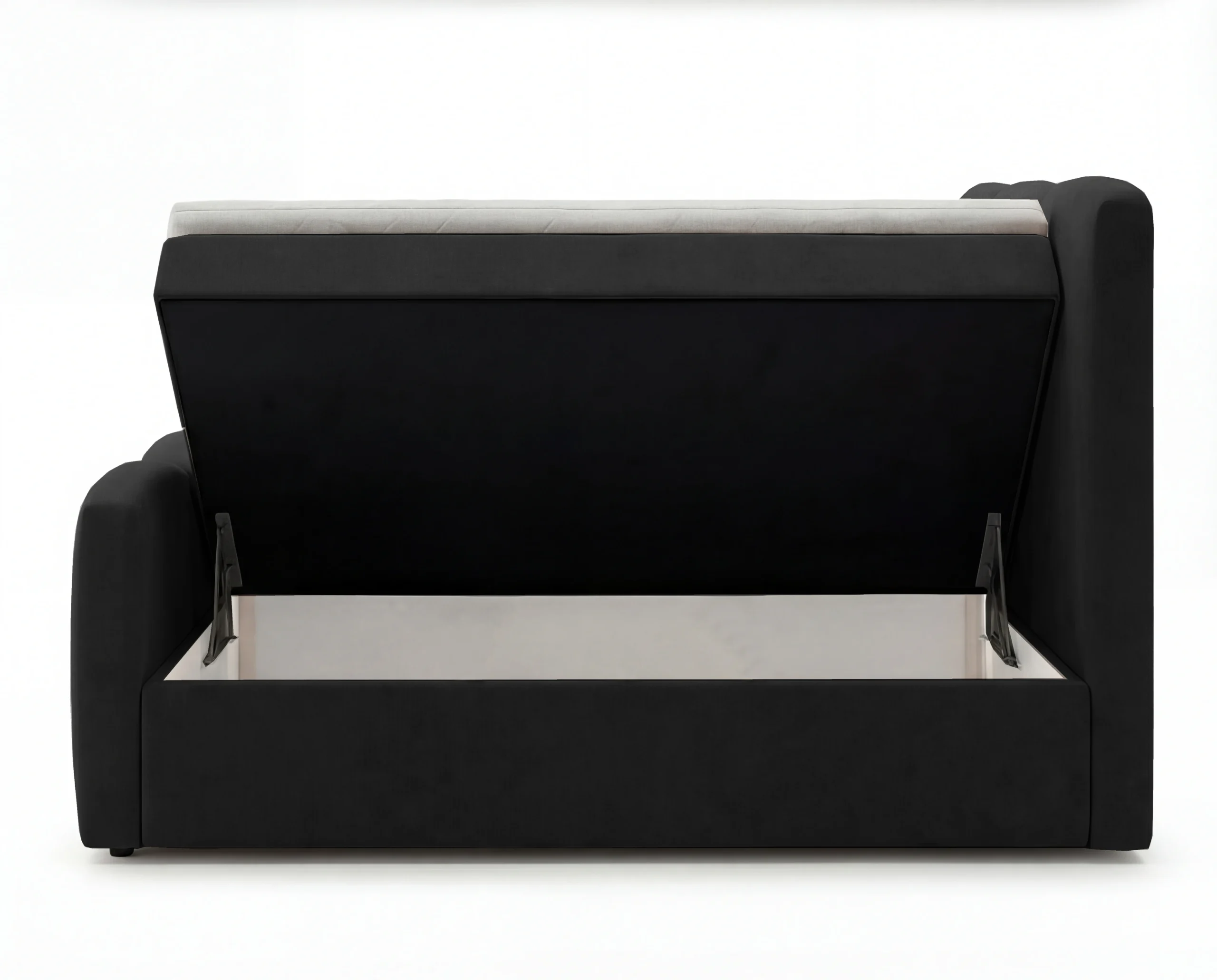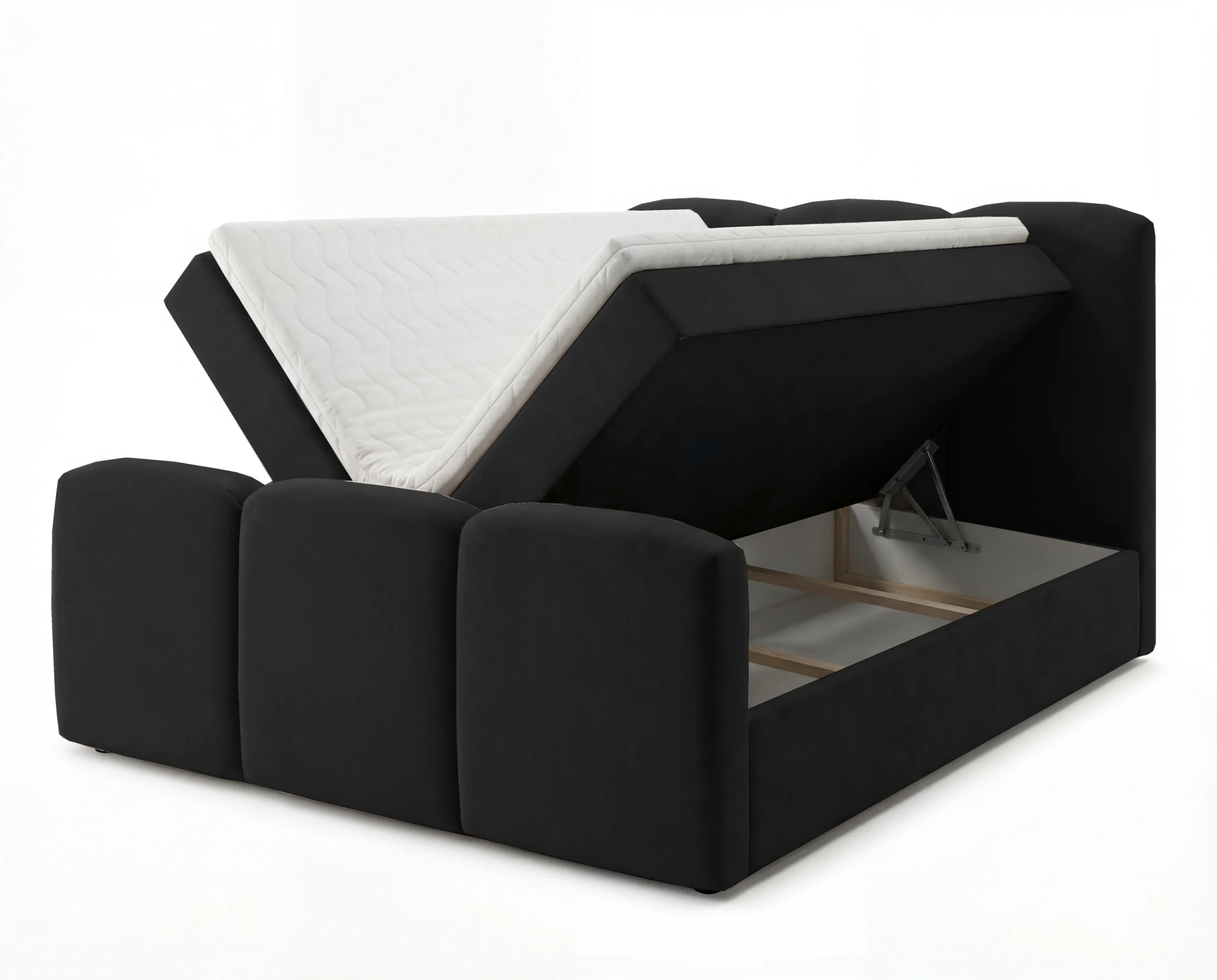 Łóżko zostało wyposażone w 2 pojemniki na pościel, które zapewniają dużą przestrzeń do przechowywania. Każda skrzynia posiada duży, praktyczny schowek, idealny na pościel, koce czy sezonowe tekstylia. System otwierania jest wygodny i ułatwia codzienne użytkowanie.