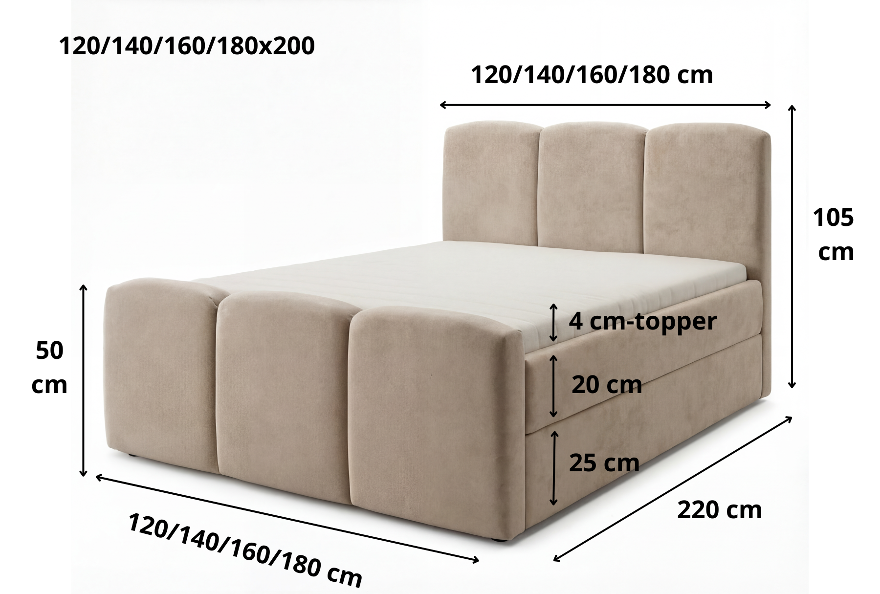 Nowoczesne łóżko kontynentalne to idealne połączenie elegancji, wygody i funkcjonalności. Model wyróżnia się masywną, miękką bryłą oraz efektownym zagłówkiem z pionowymi głębokimi wciągami, które nadają wnętrzu luksusowego charakteru. To doskonały wybór do sypialni w stylu nowoczesnym, glamour lub minimalistycznym.