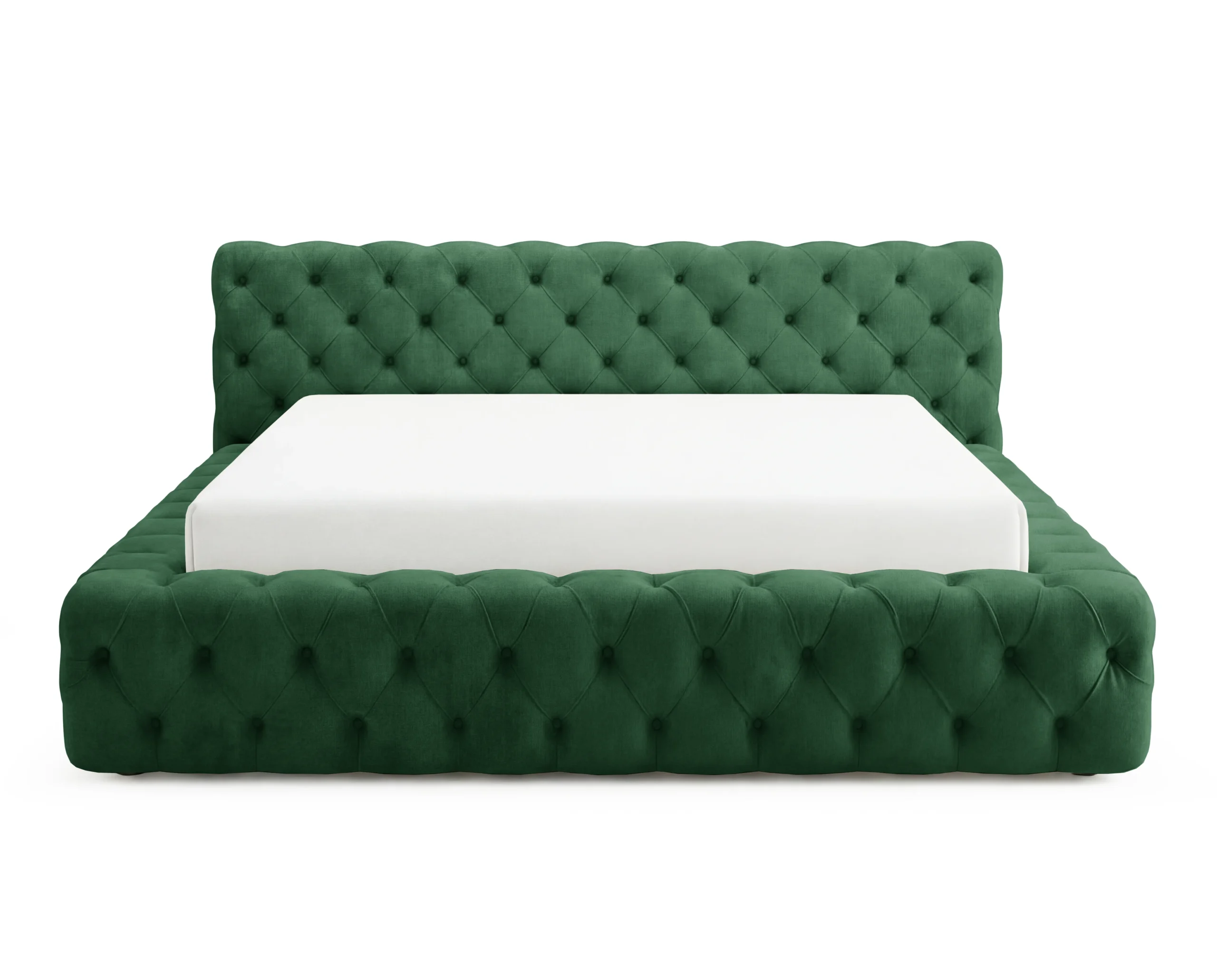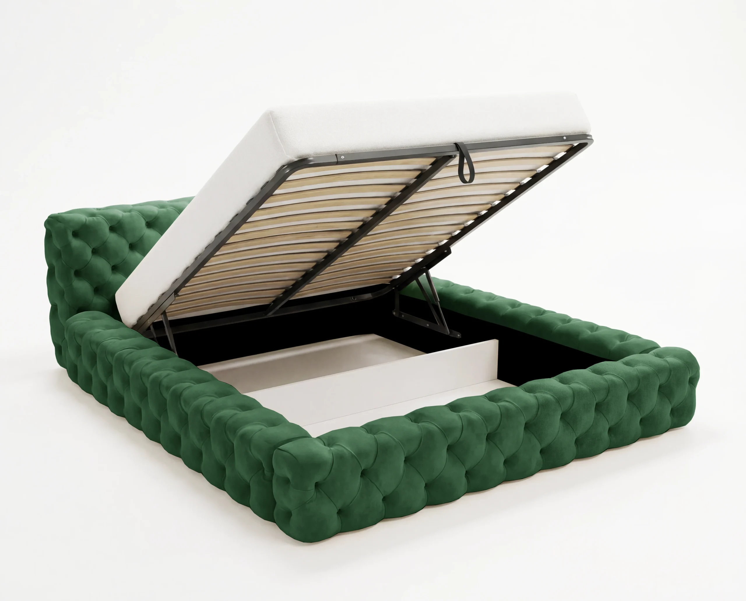 Łóżko tapicerowane z pojemnikiem i stelażem metalowym Winston 160×200 zielony