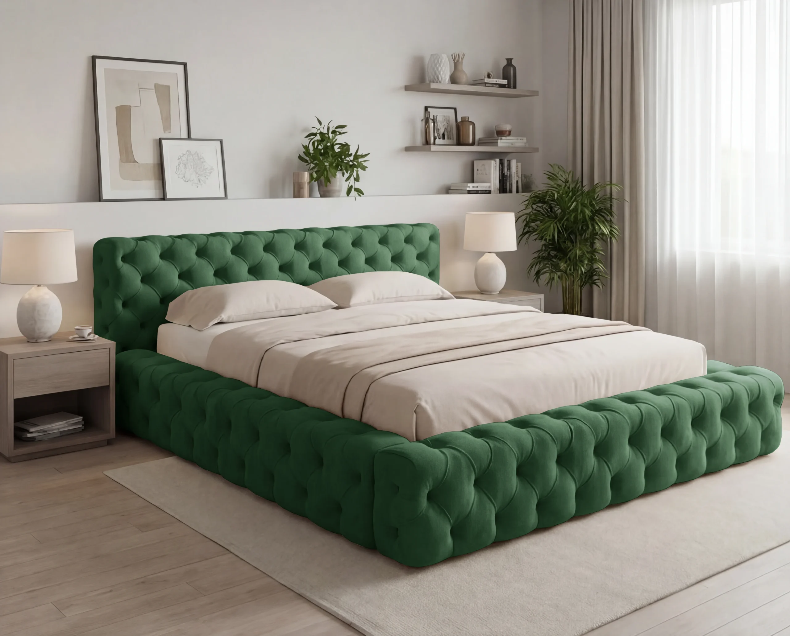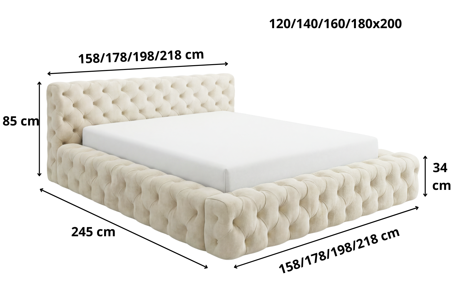 Łóżko Winston – Magic Velvet, Styl Chesterfield, Pojemnik i Stelaż Metalowy