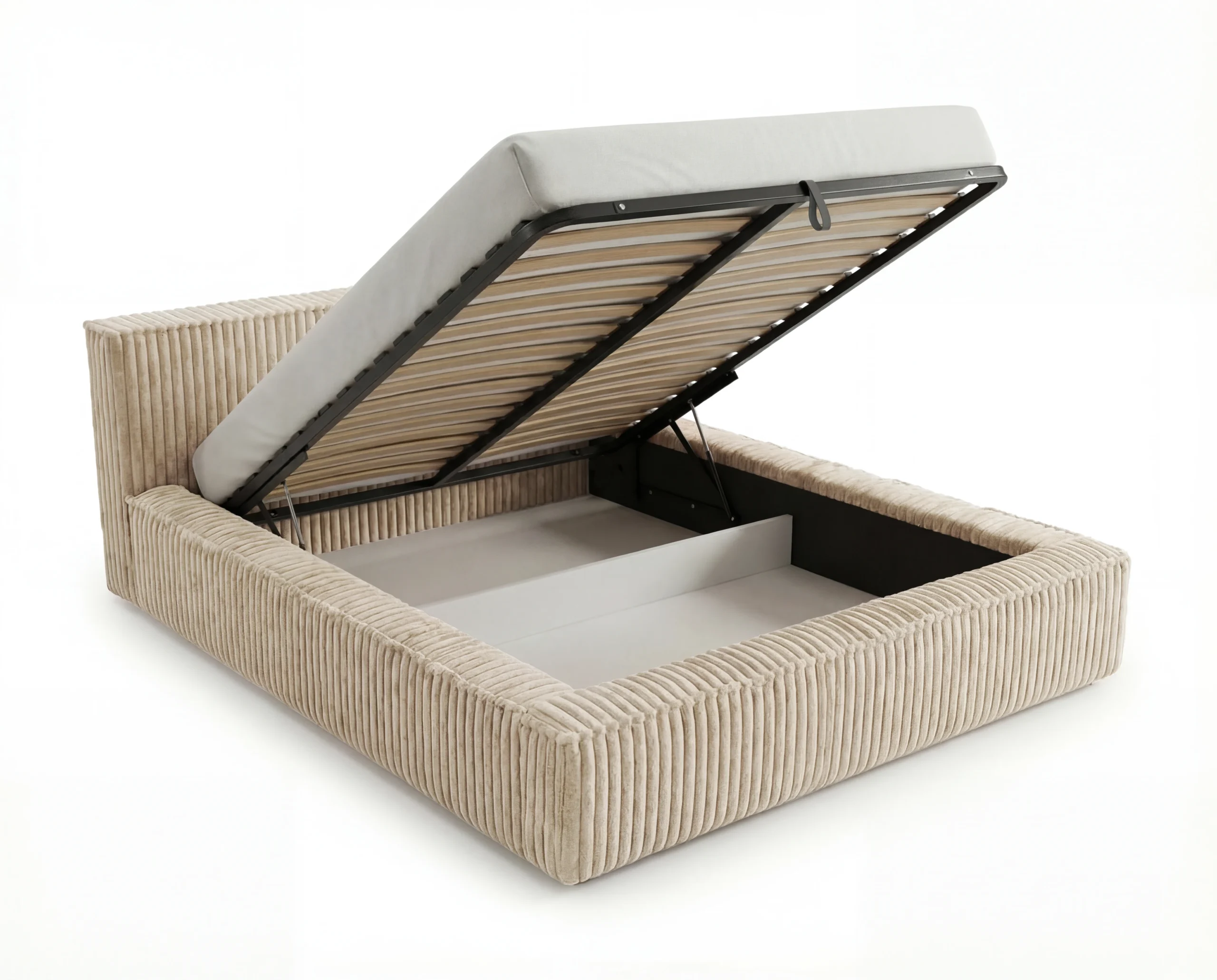 Łóżko tapicerowane z pojemnikiem na pościel Leo 180×200 tkanina sztruks beżowy