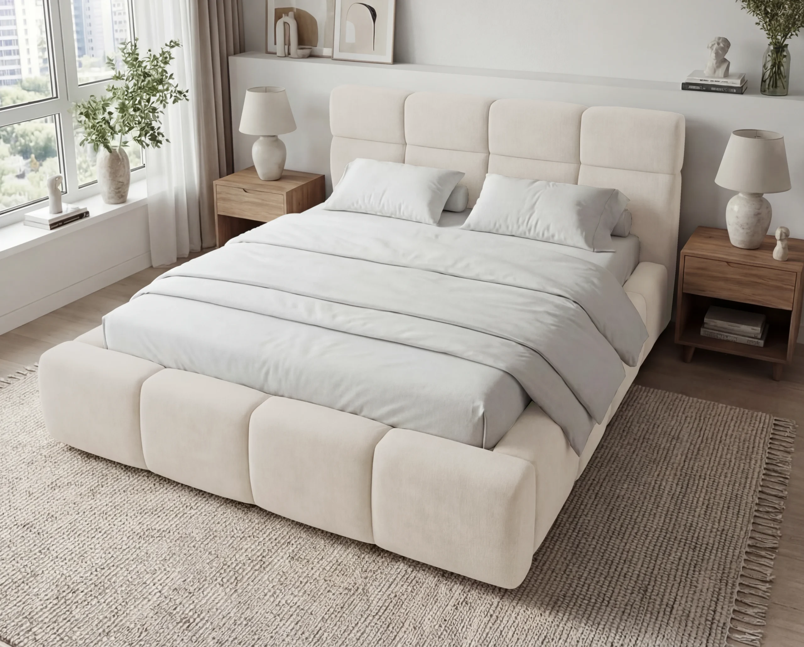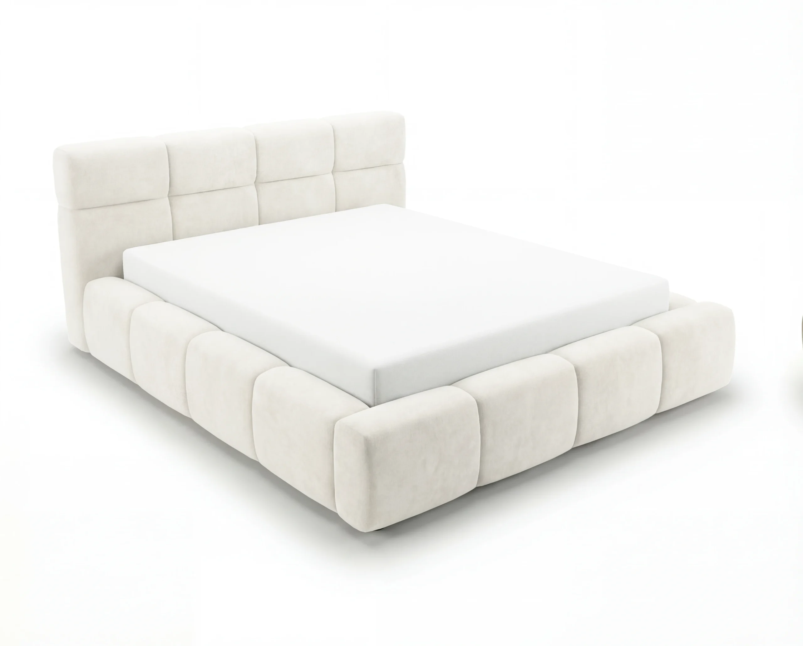 Model został wykonany w tej samej, wysokiej jakości tkaninie łatwoczyszczącej, która łączy estetykę z funkcjonalnością. Materiał jest przyjemny w dotyku, odporny na codzienne użytkowanie oraz łatwy w pielęgnacji, dzięki czemu łóżko przez długi czas zachowuje swój nienaganny wygląd.