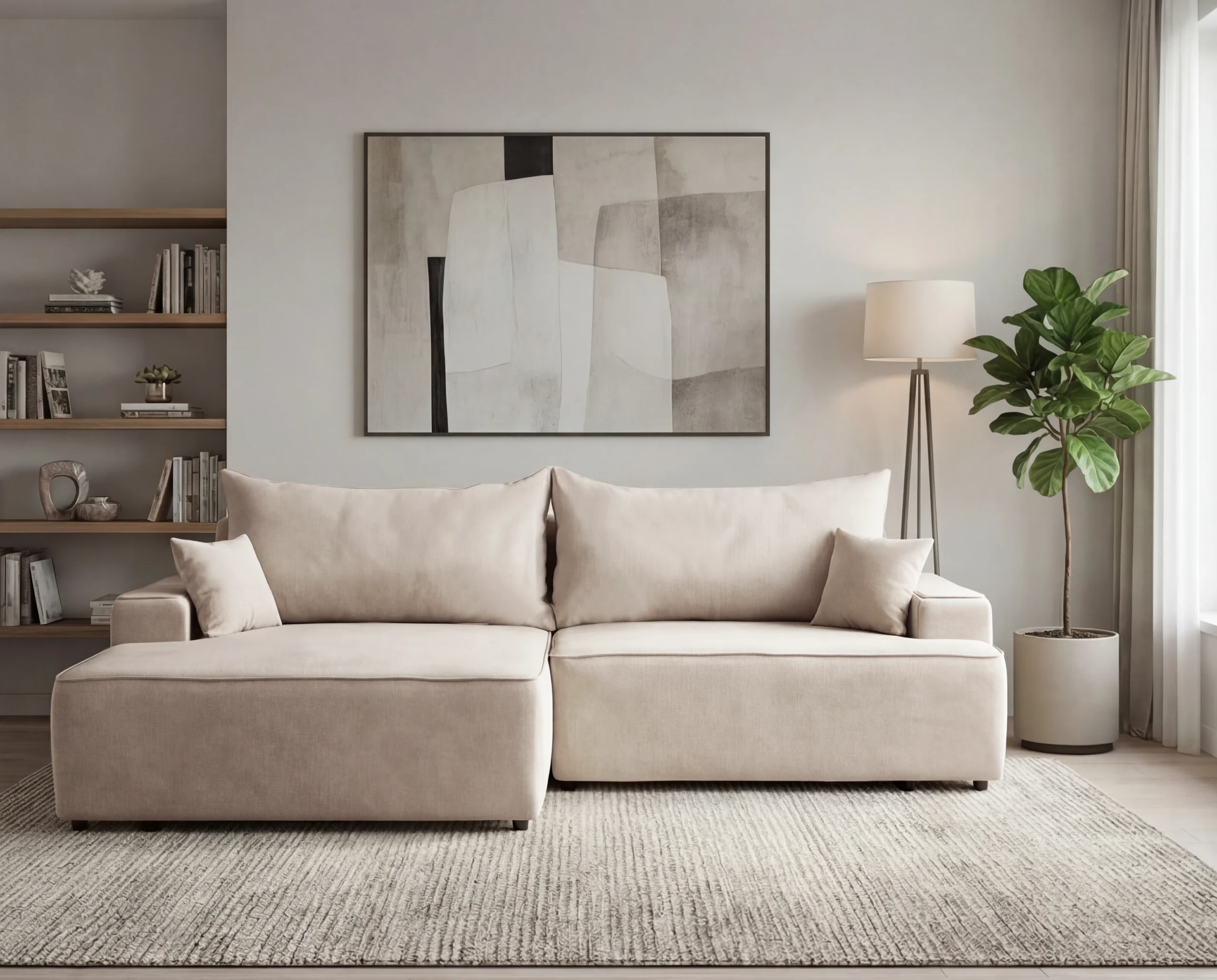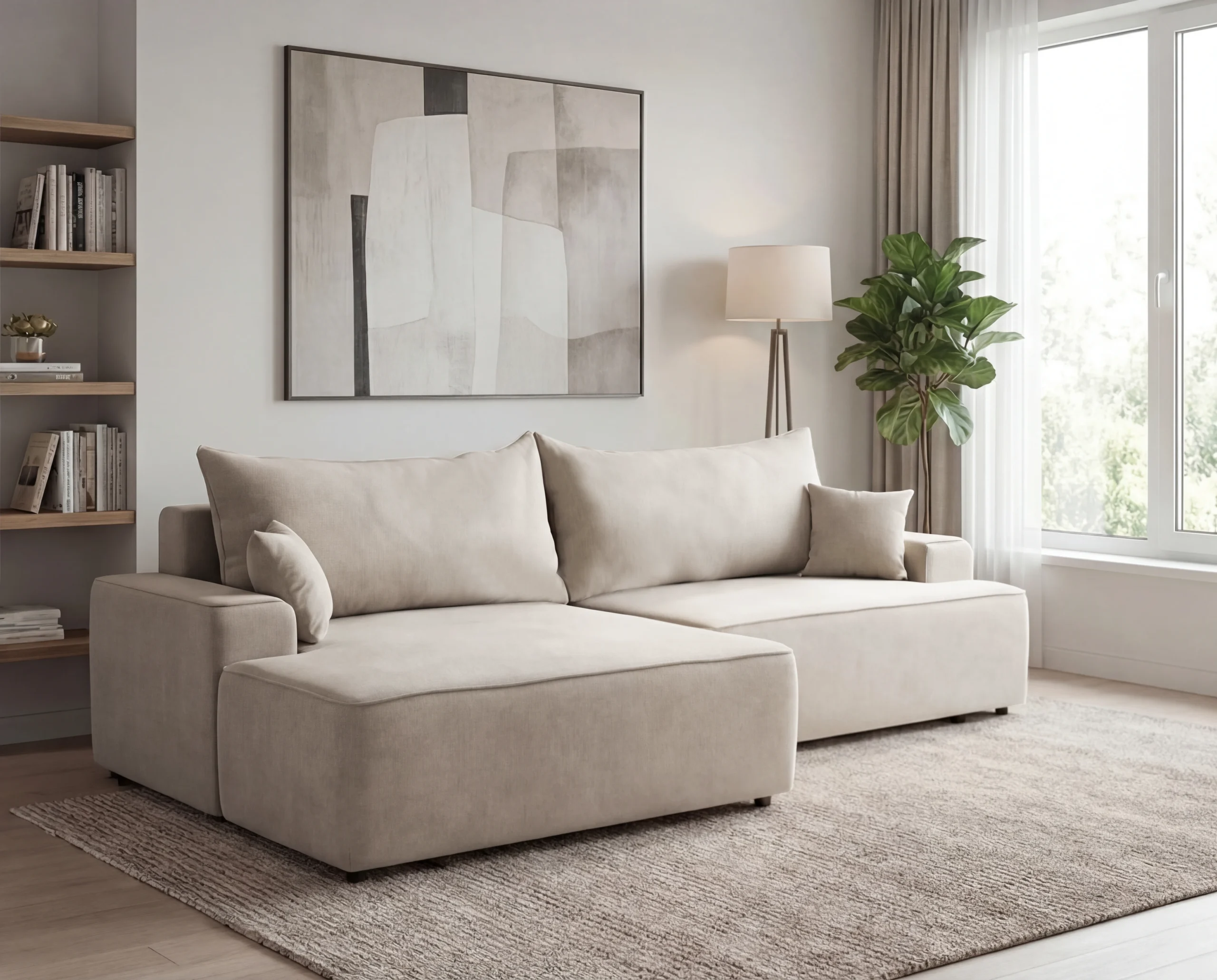 Narożnik do salonu z funkcją spania i pojemnikiem Fresh lewostronny beżowy