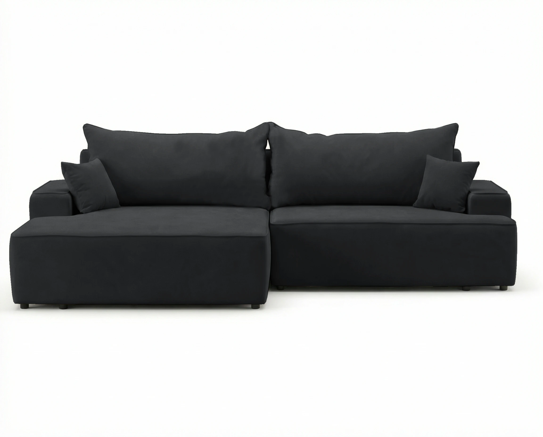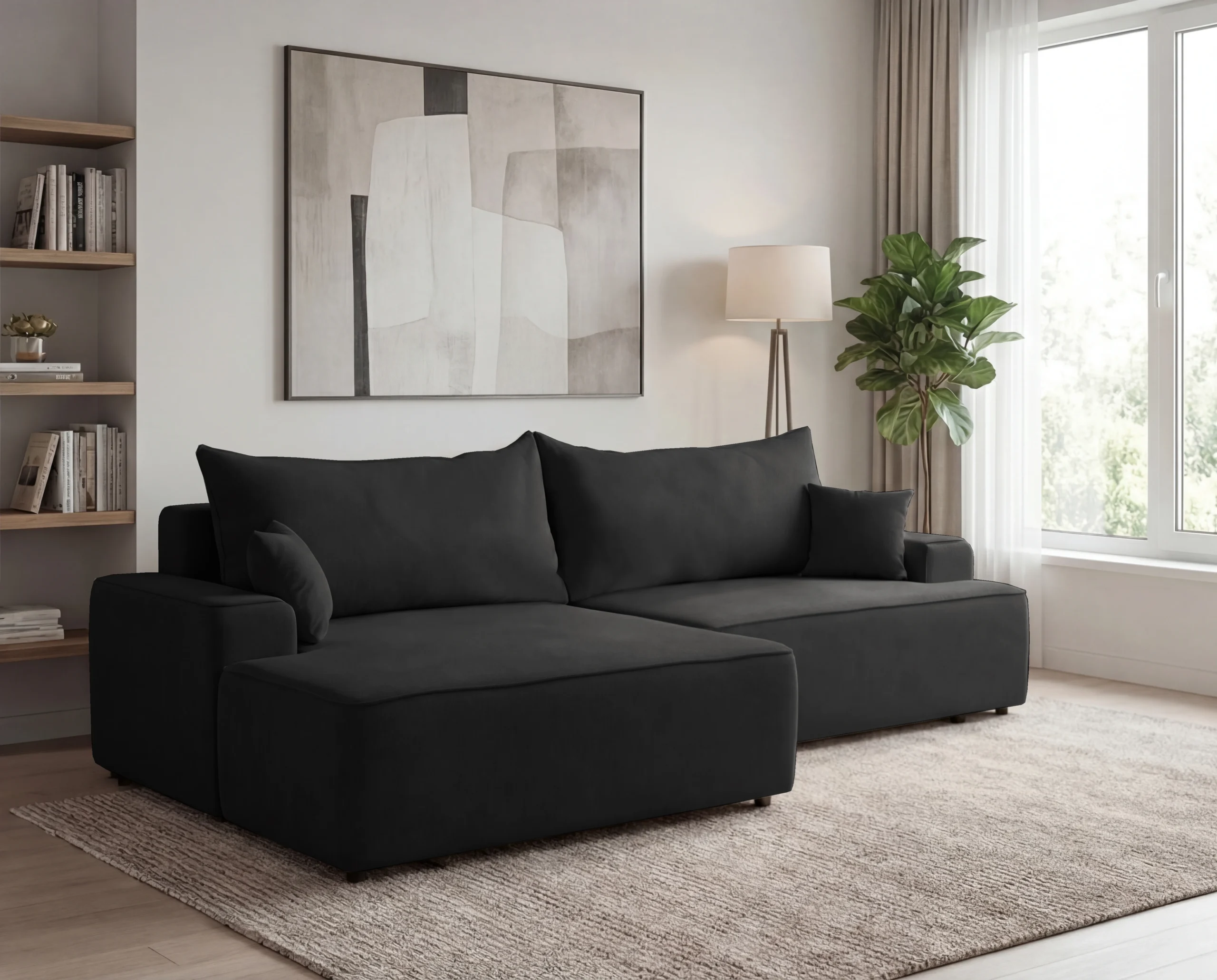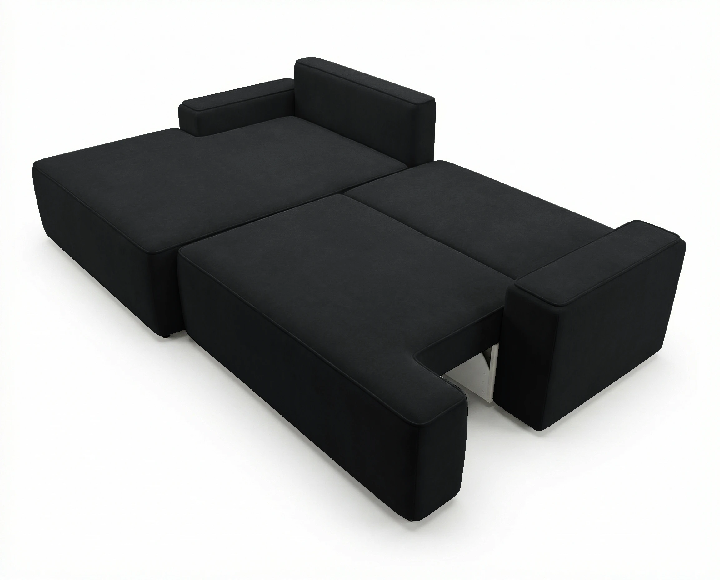 Narożnik do salonu z funkcją spania i pojemnikiem Fresh lewostronny czarny