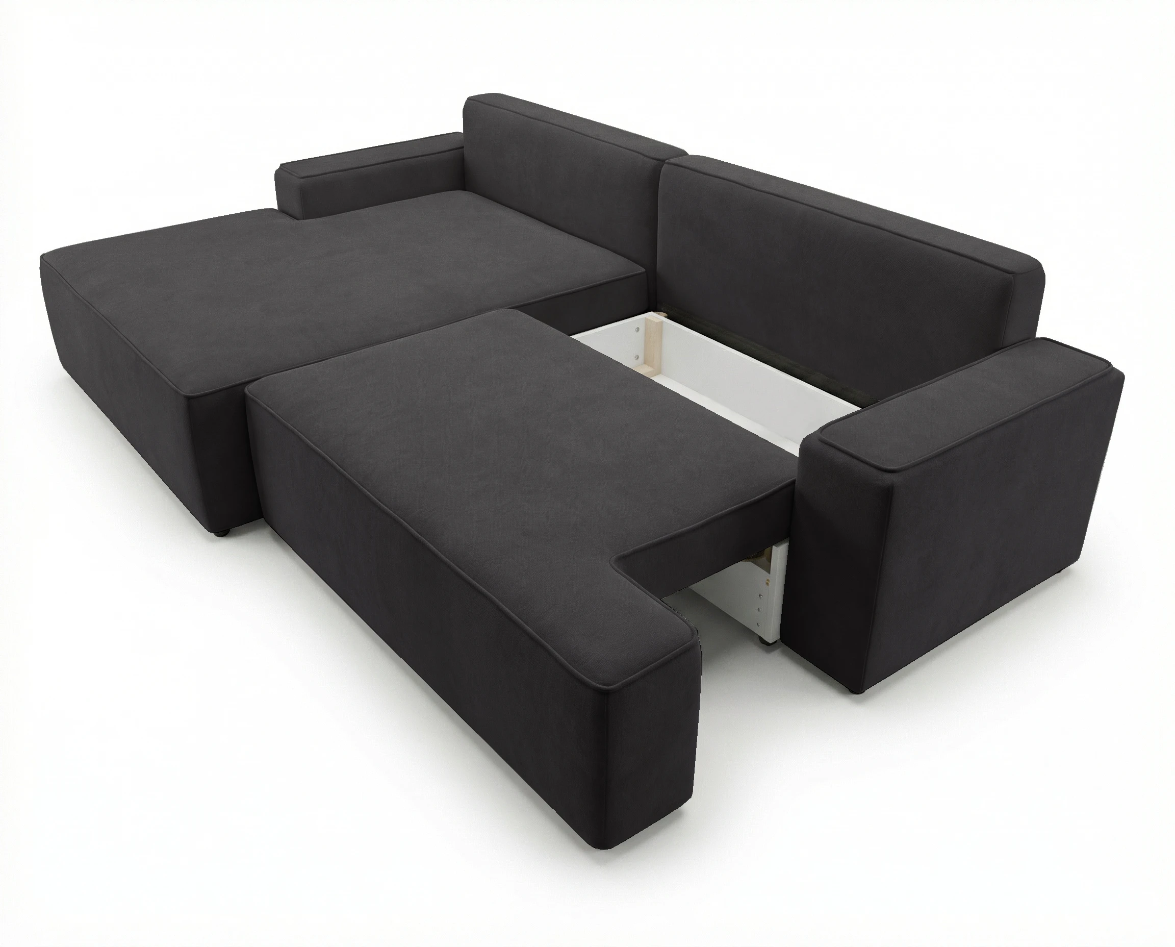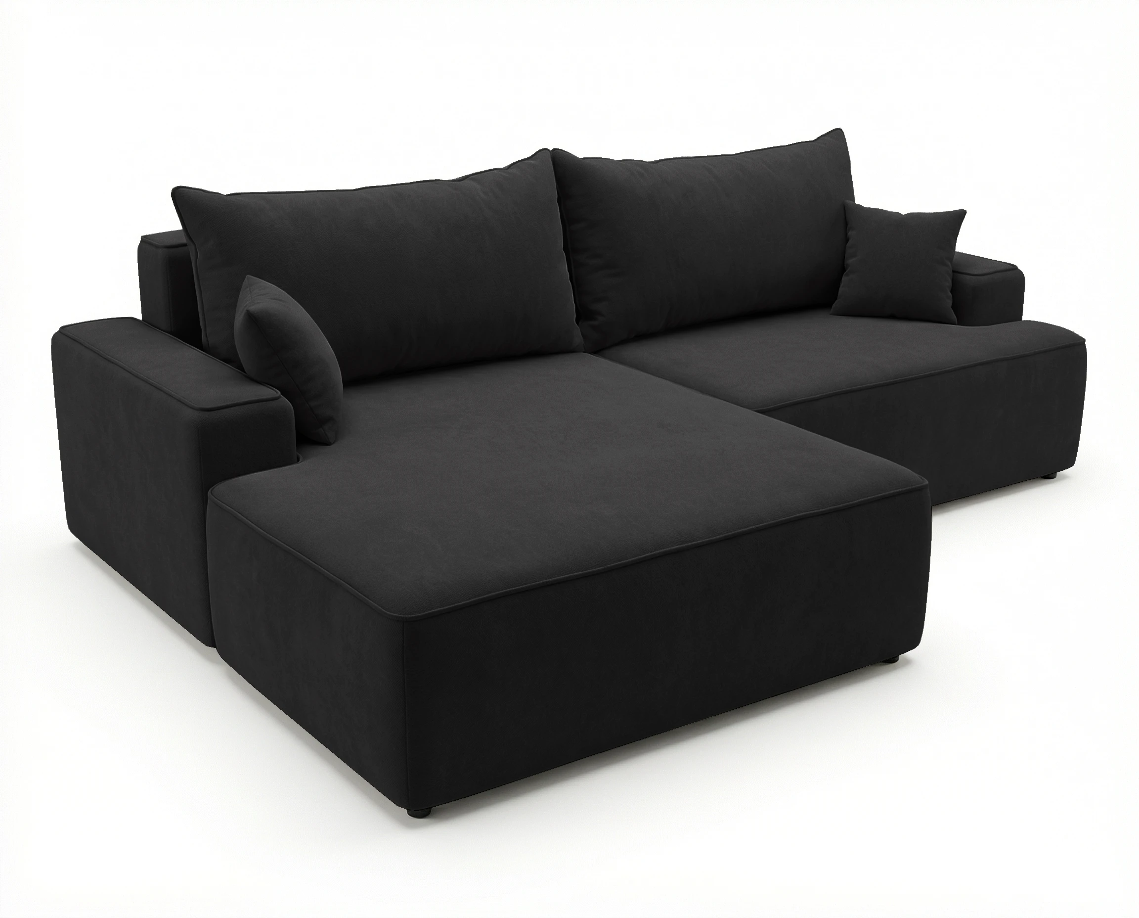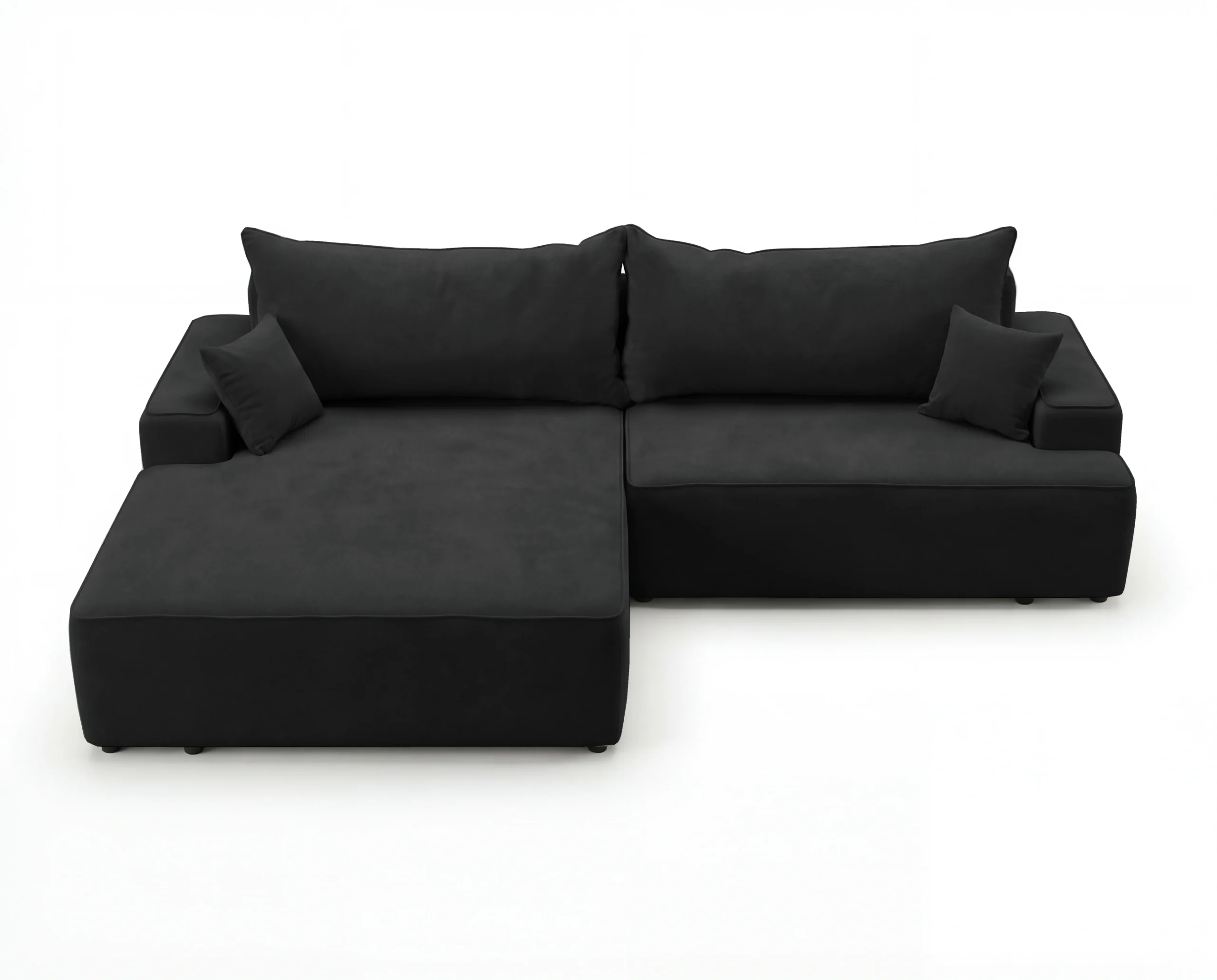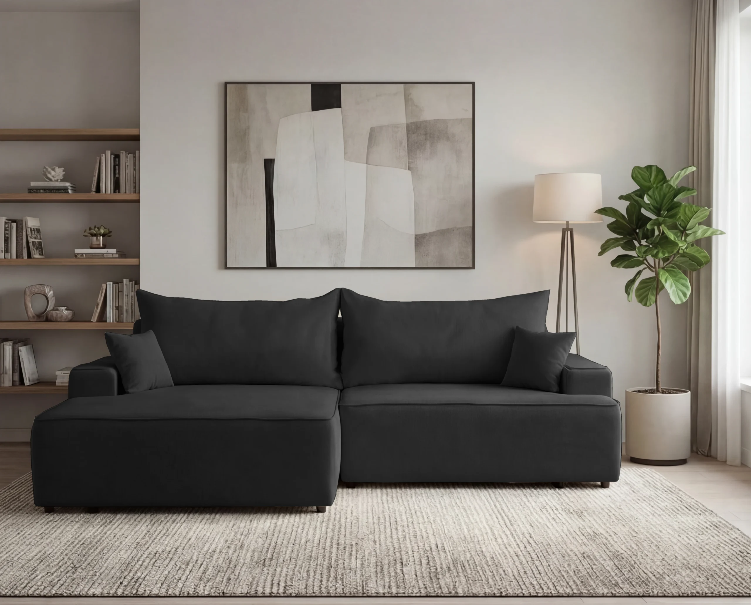 Narożnik do salonu z funkcją spania i pojemnikiem Fresh lewostronny czarny