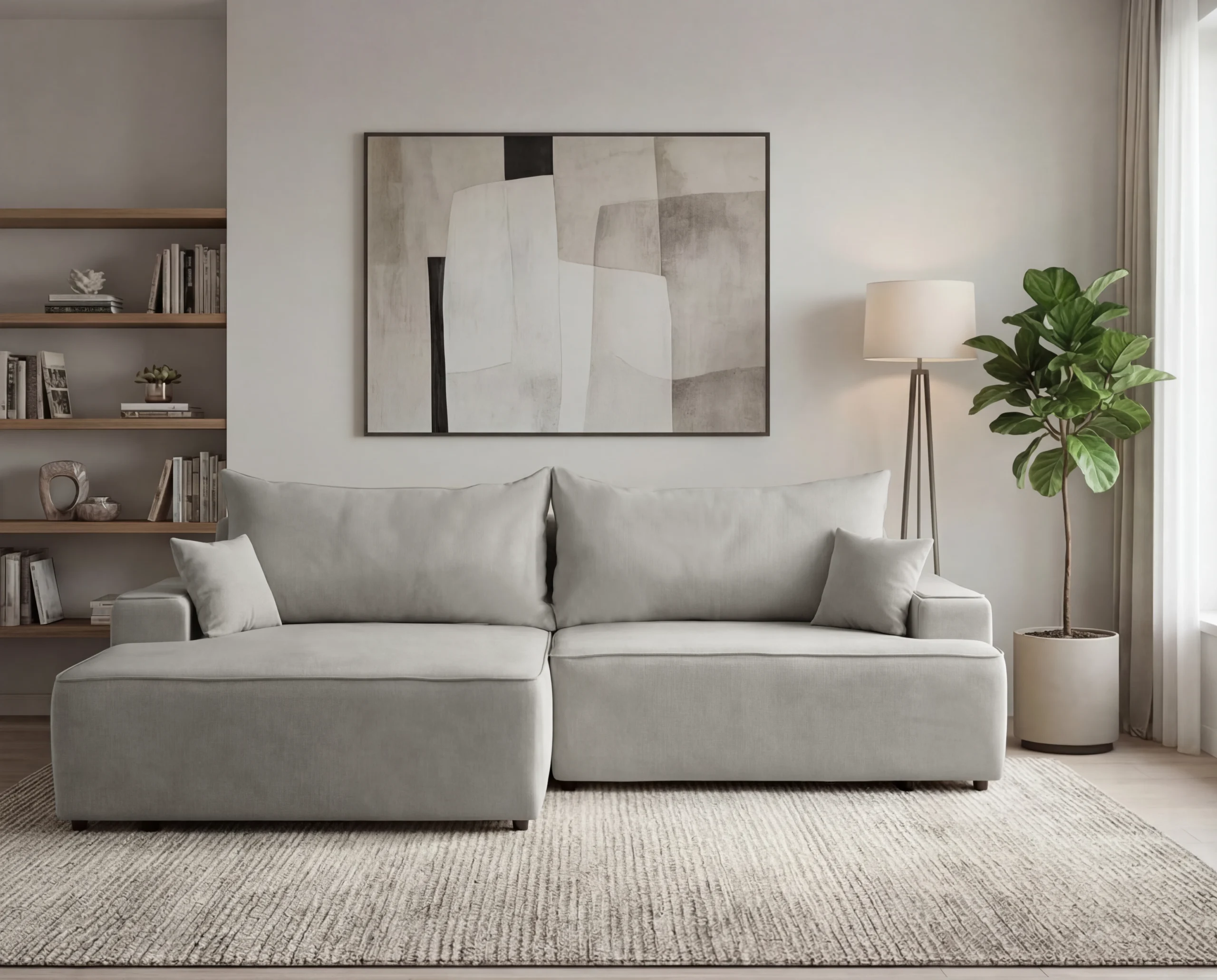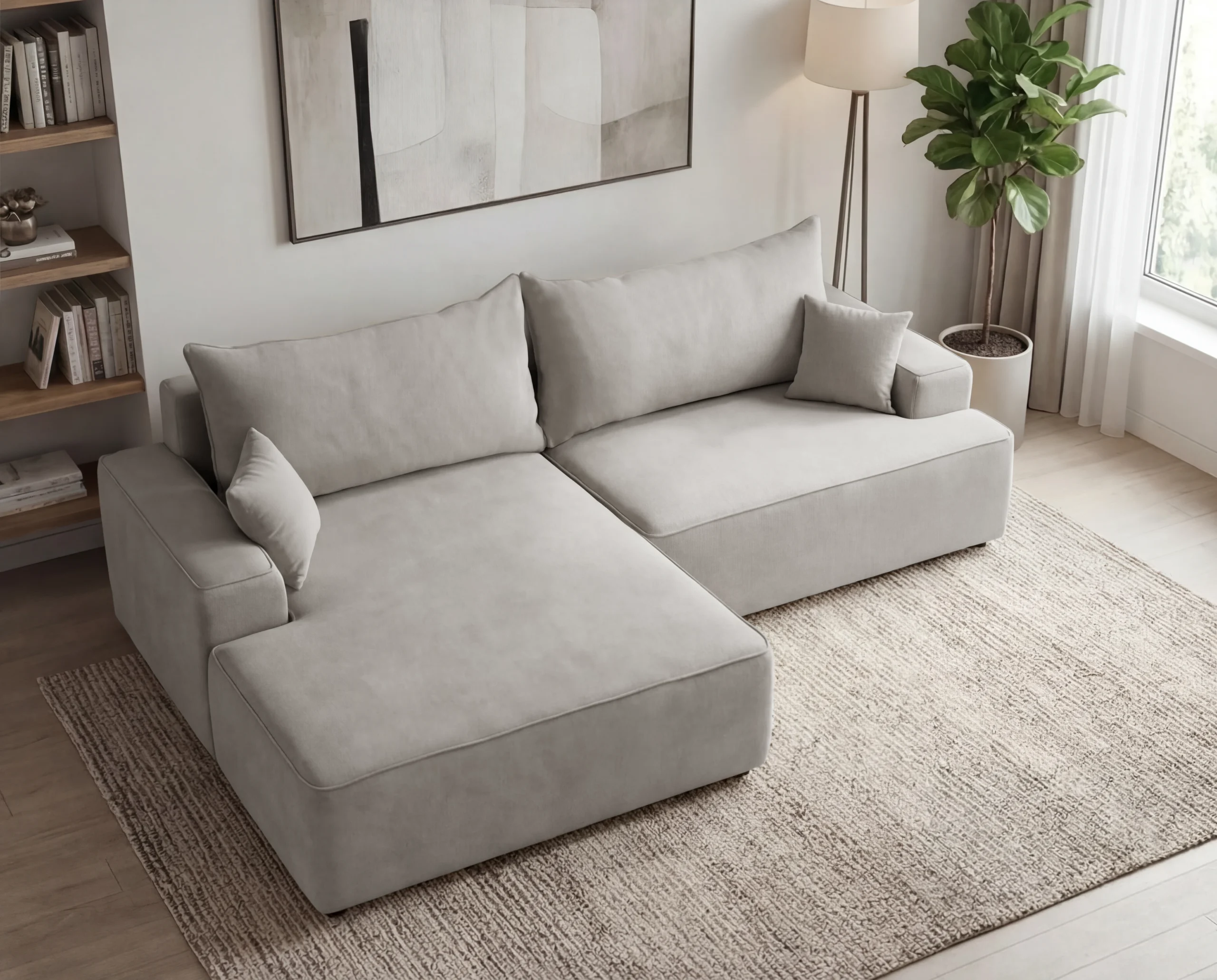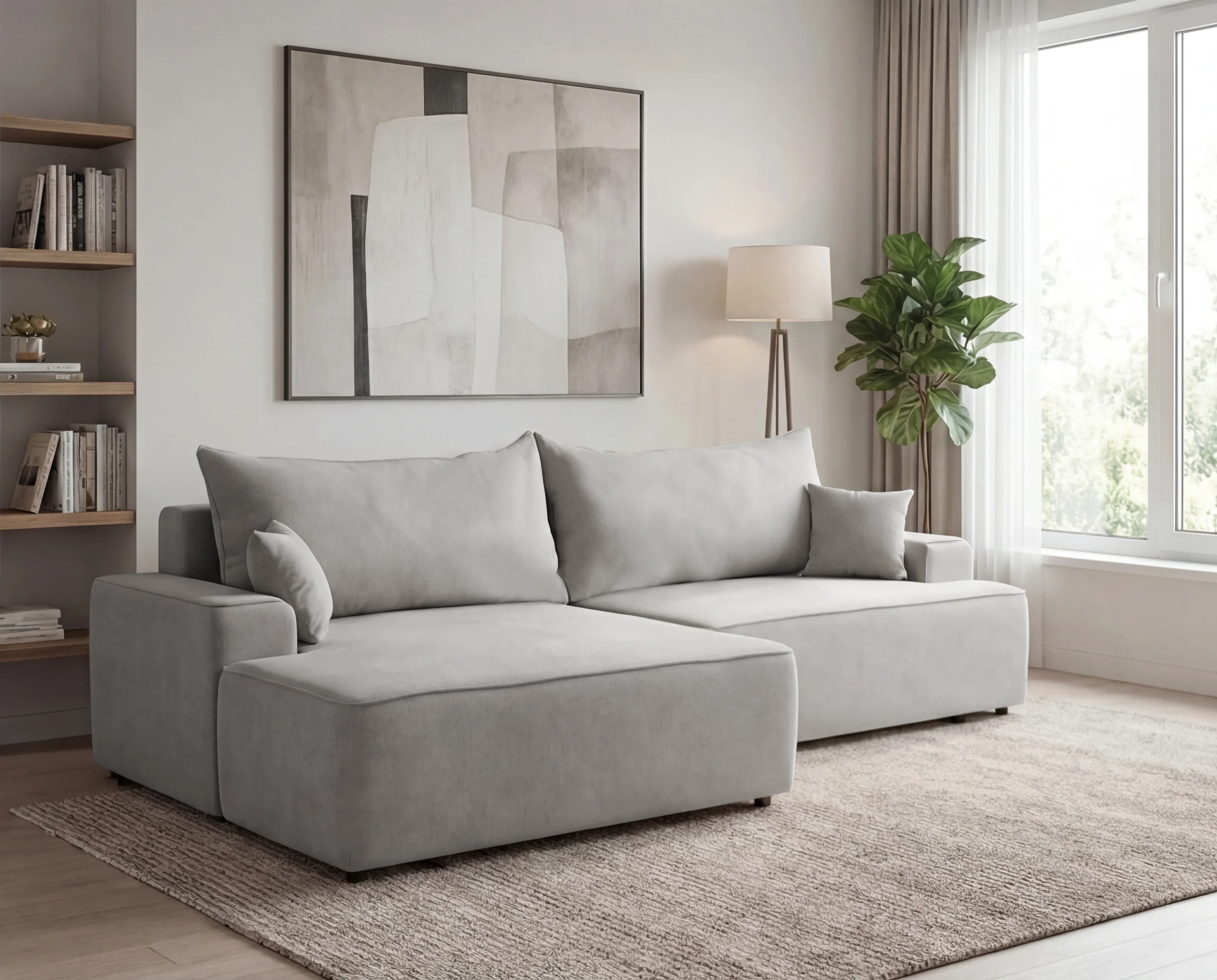 Narożnik do salonu z funkcją spania i pojemnikiem Fresh lewostronny jasnoszary