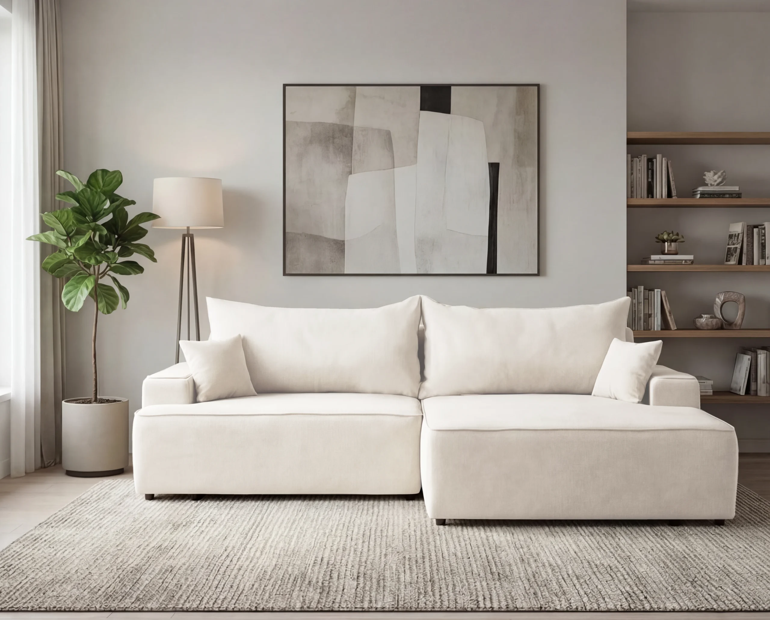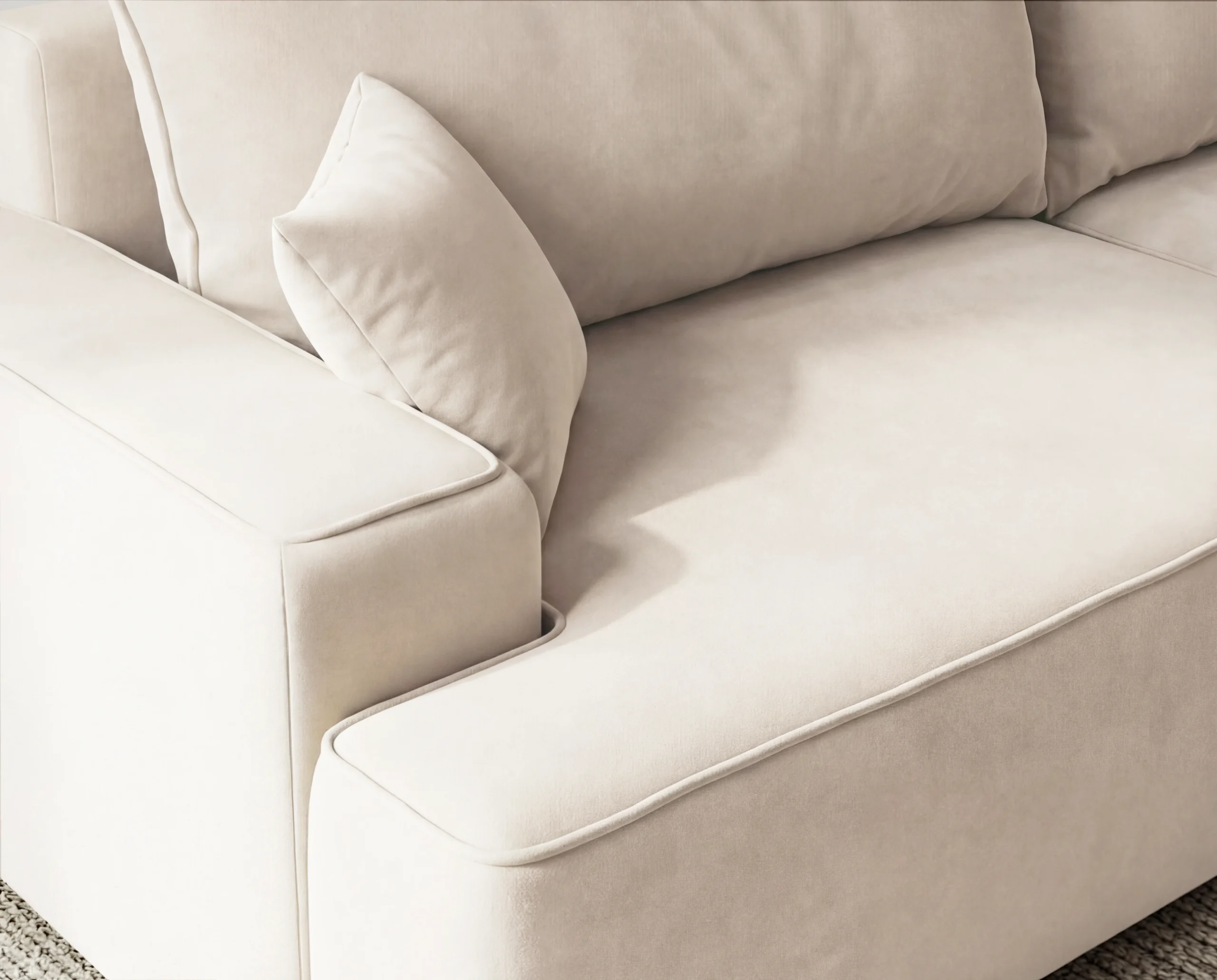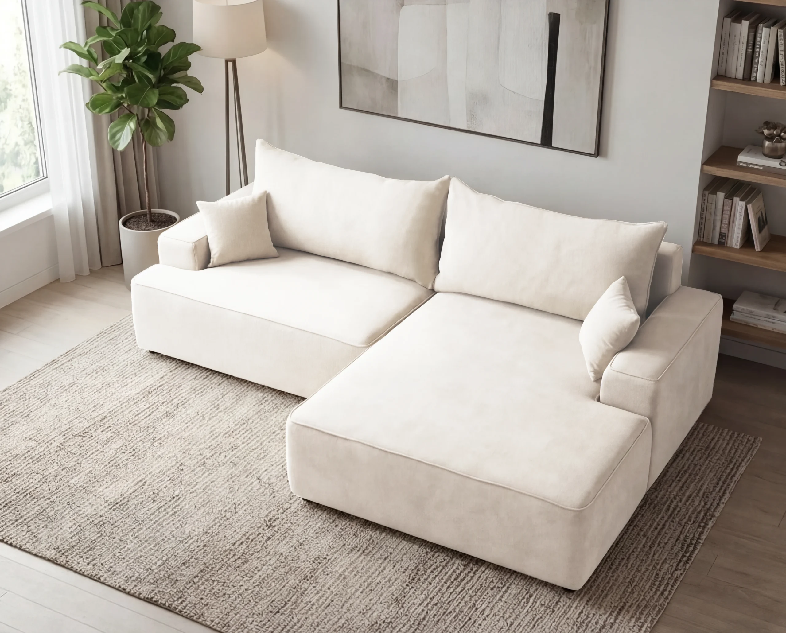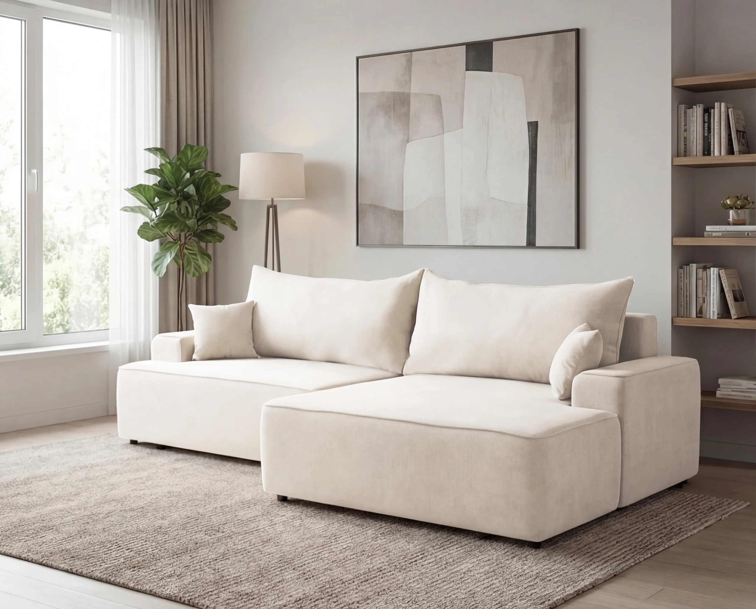 Narożnik do salonu z funkcją spania i pojemnikiem Fresh prawostronny kremowy
