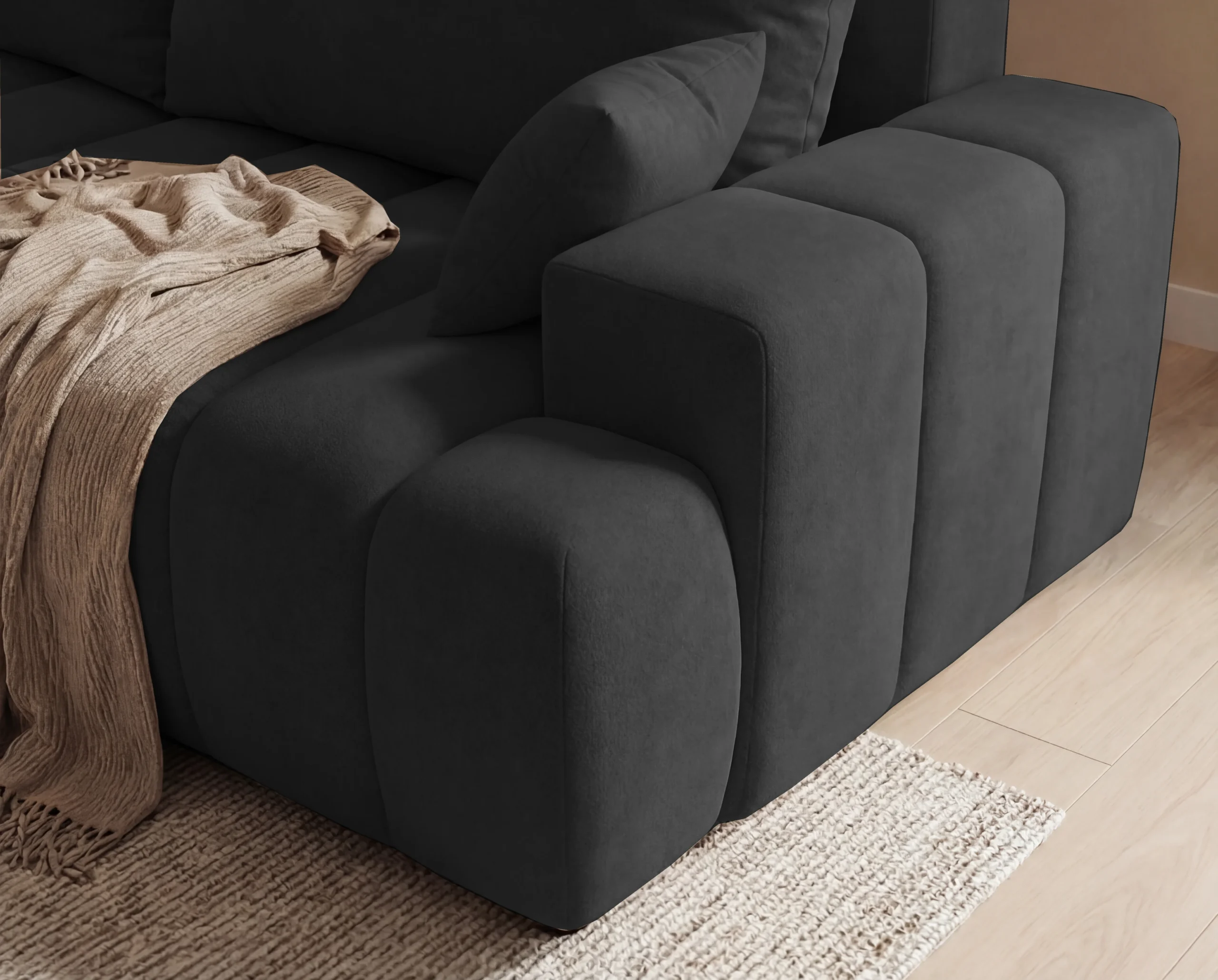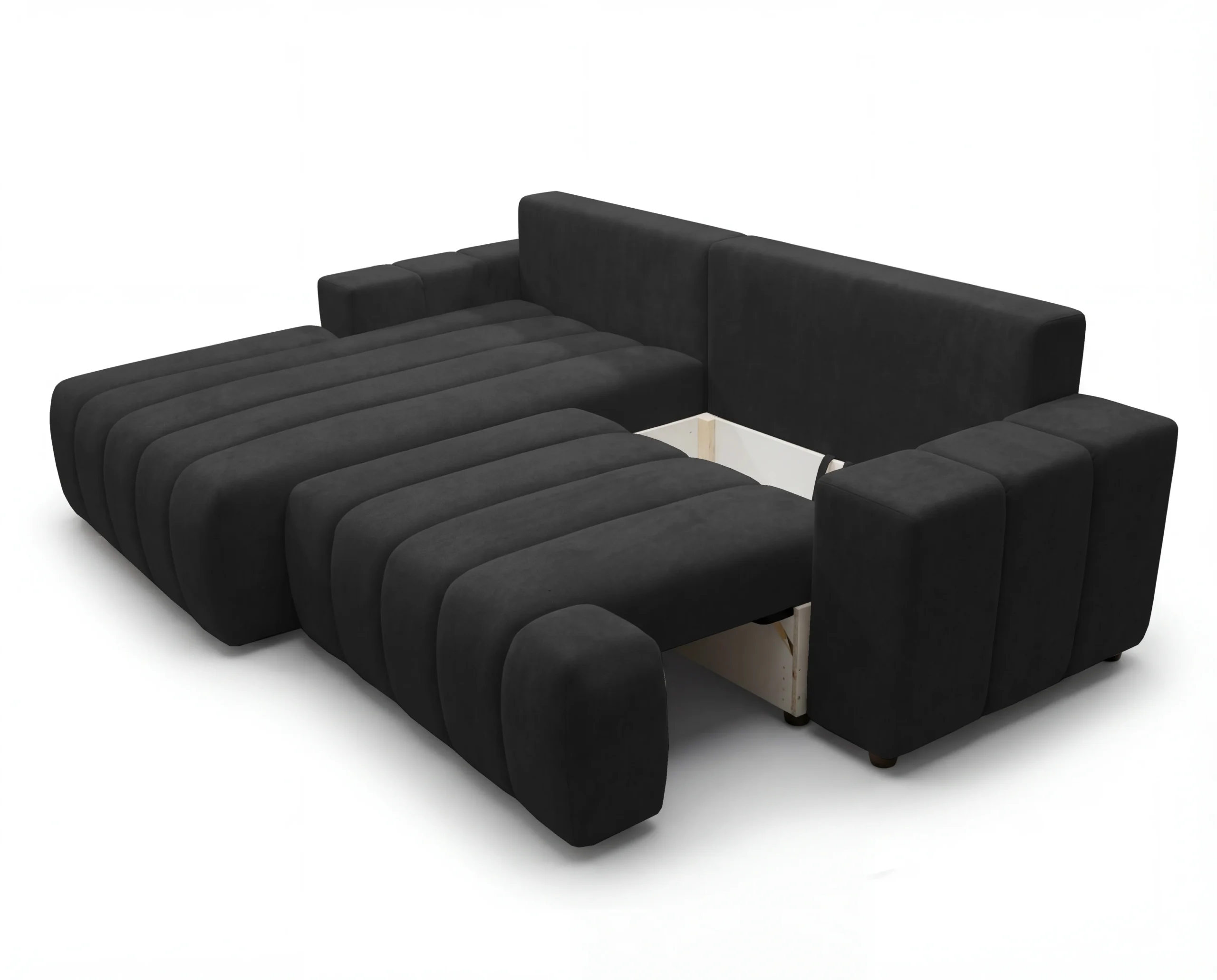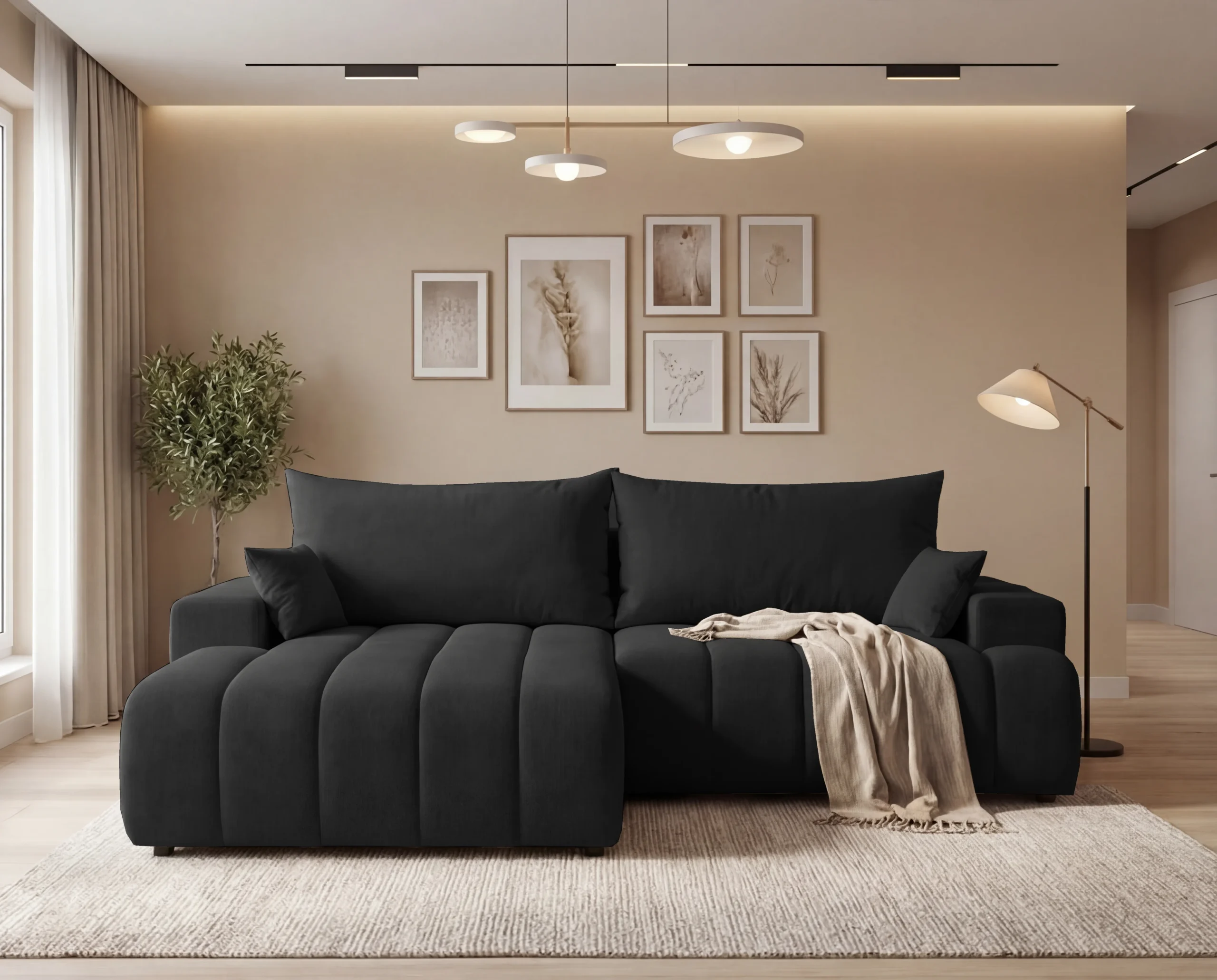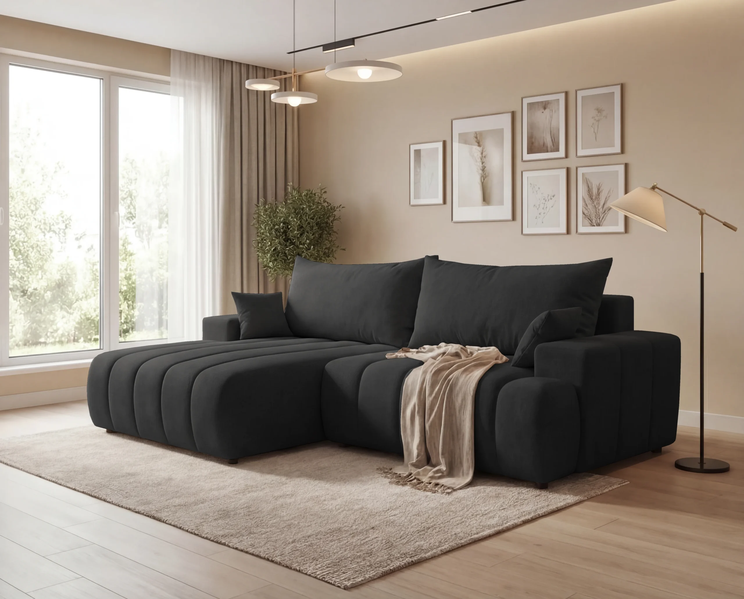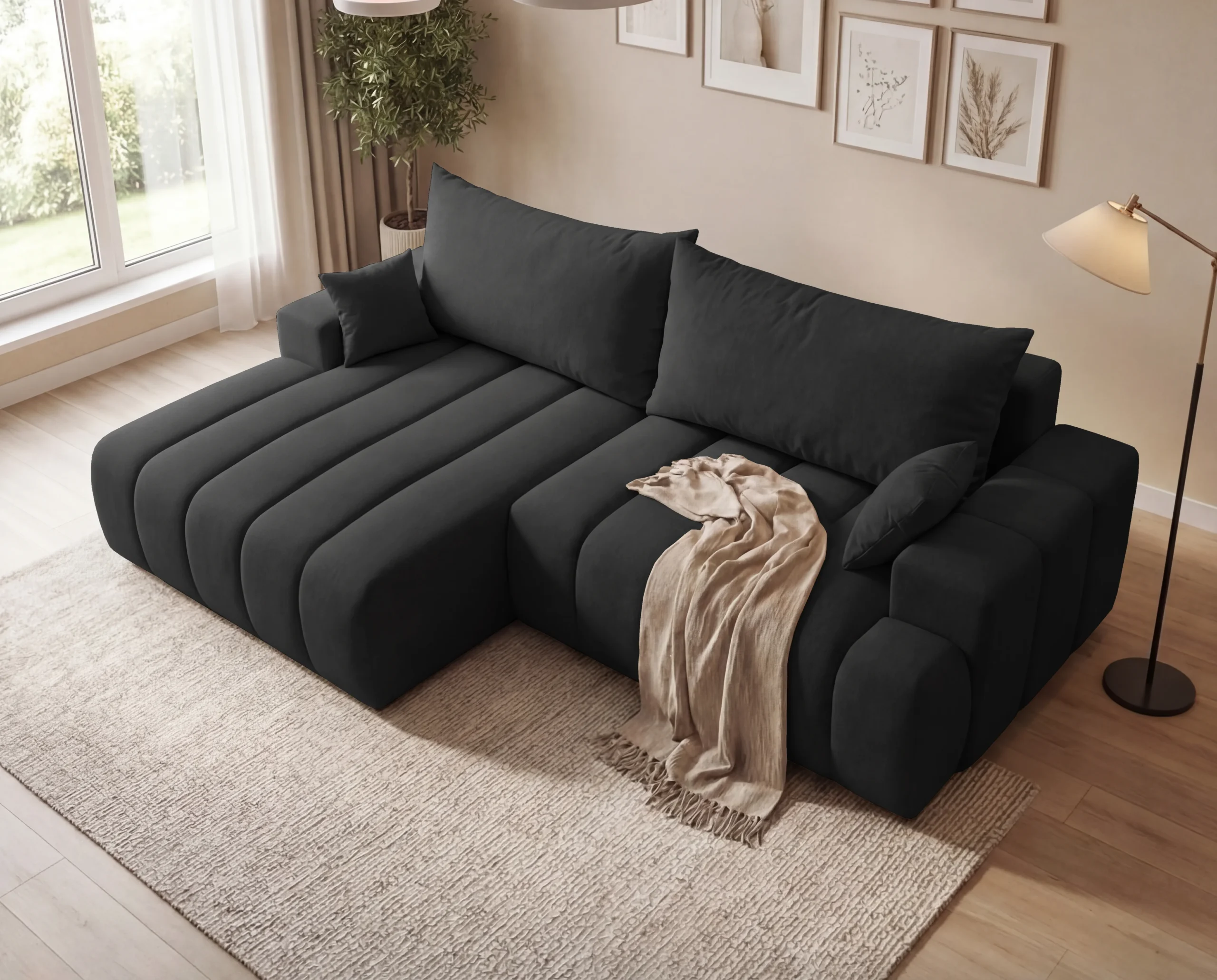 Narożnik L z funkcją spania i pojemnikiem Bueno lewostronny czarny