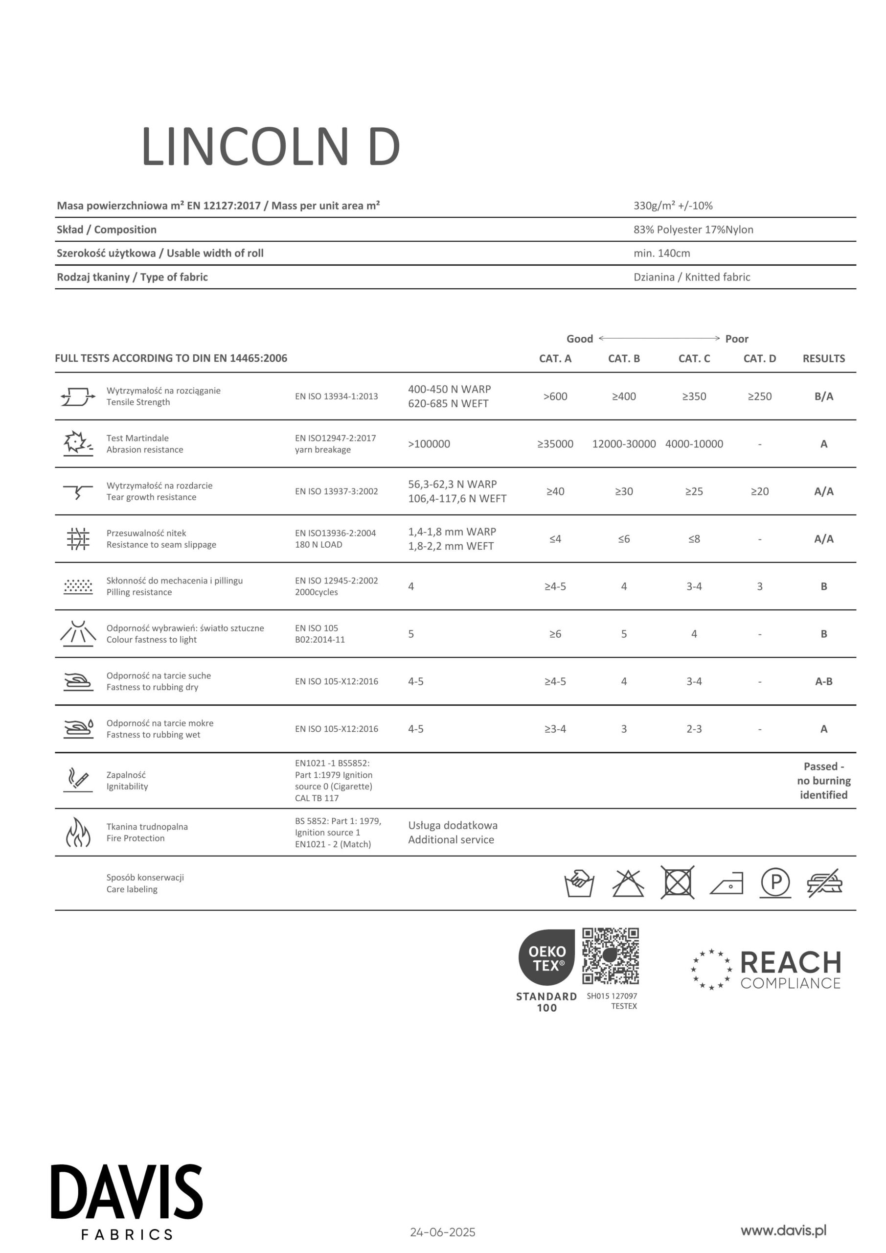 | Rodzaj Tkaniny | Tkanina LincolnD typu sztruks |