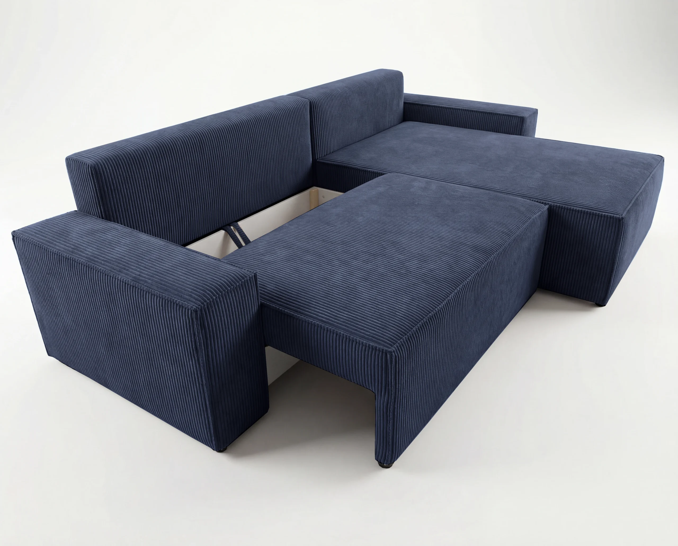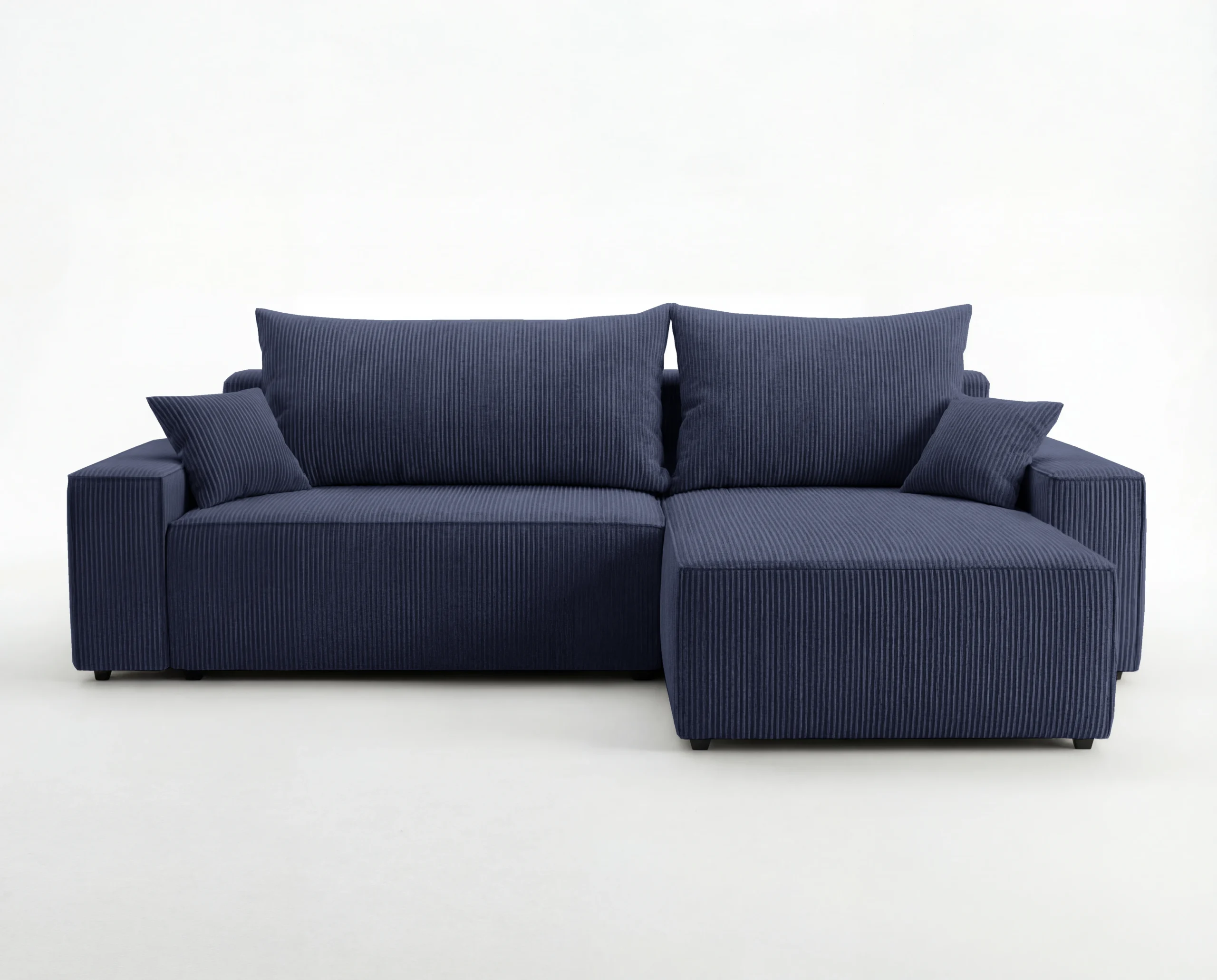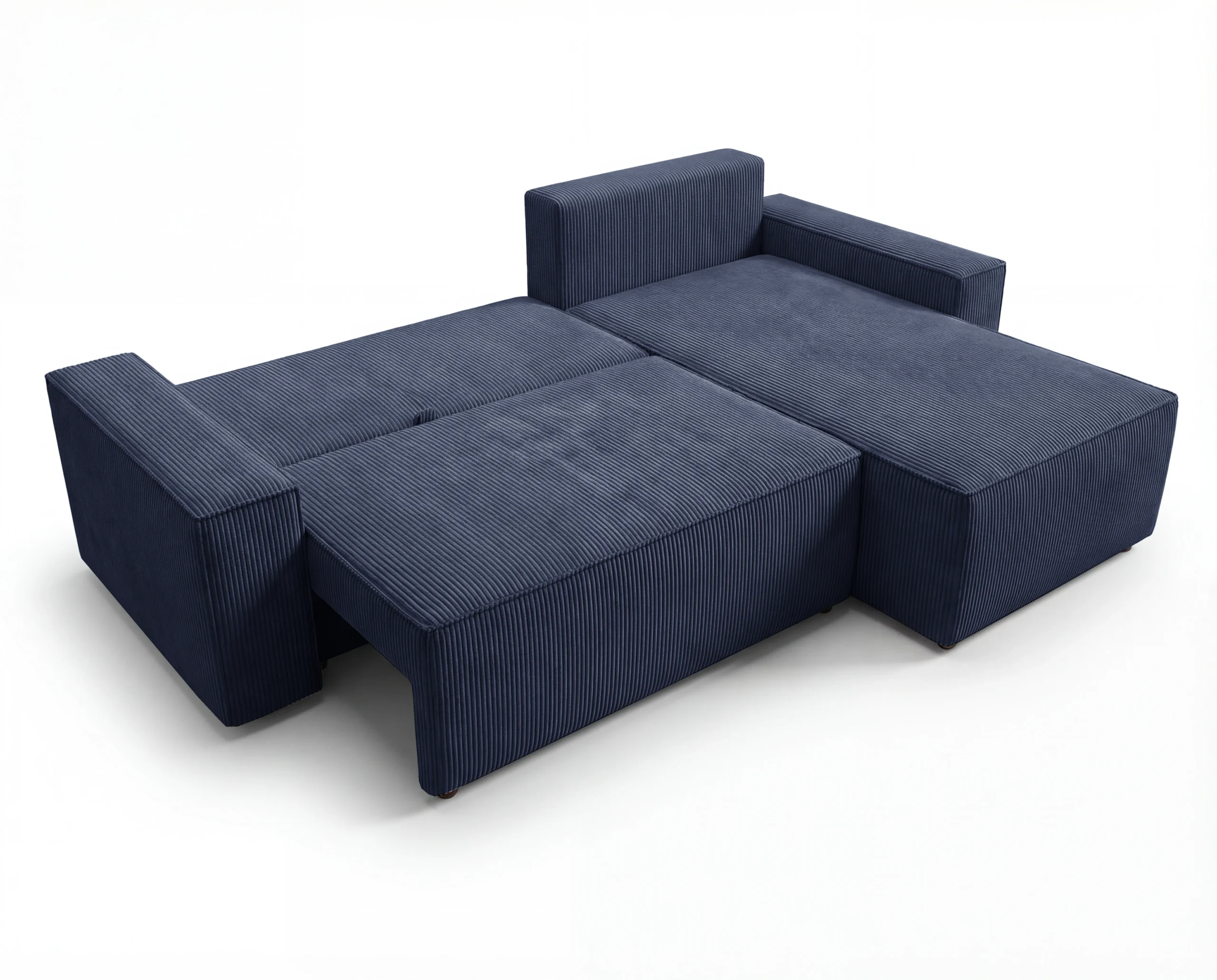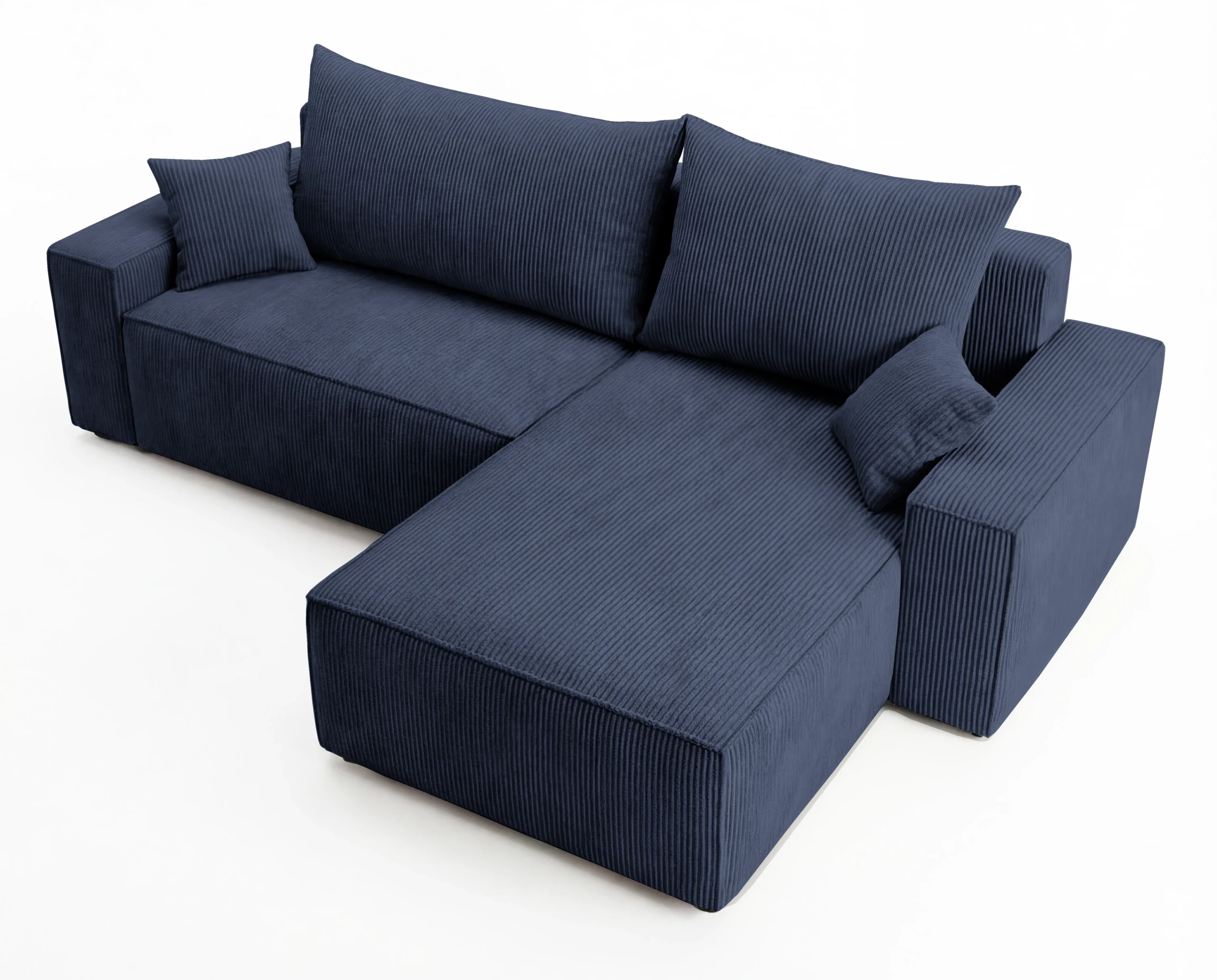 Narożnik L z funkcją spania i pojemnikiem Cord sztruks granatowy