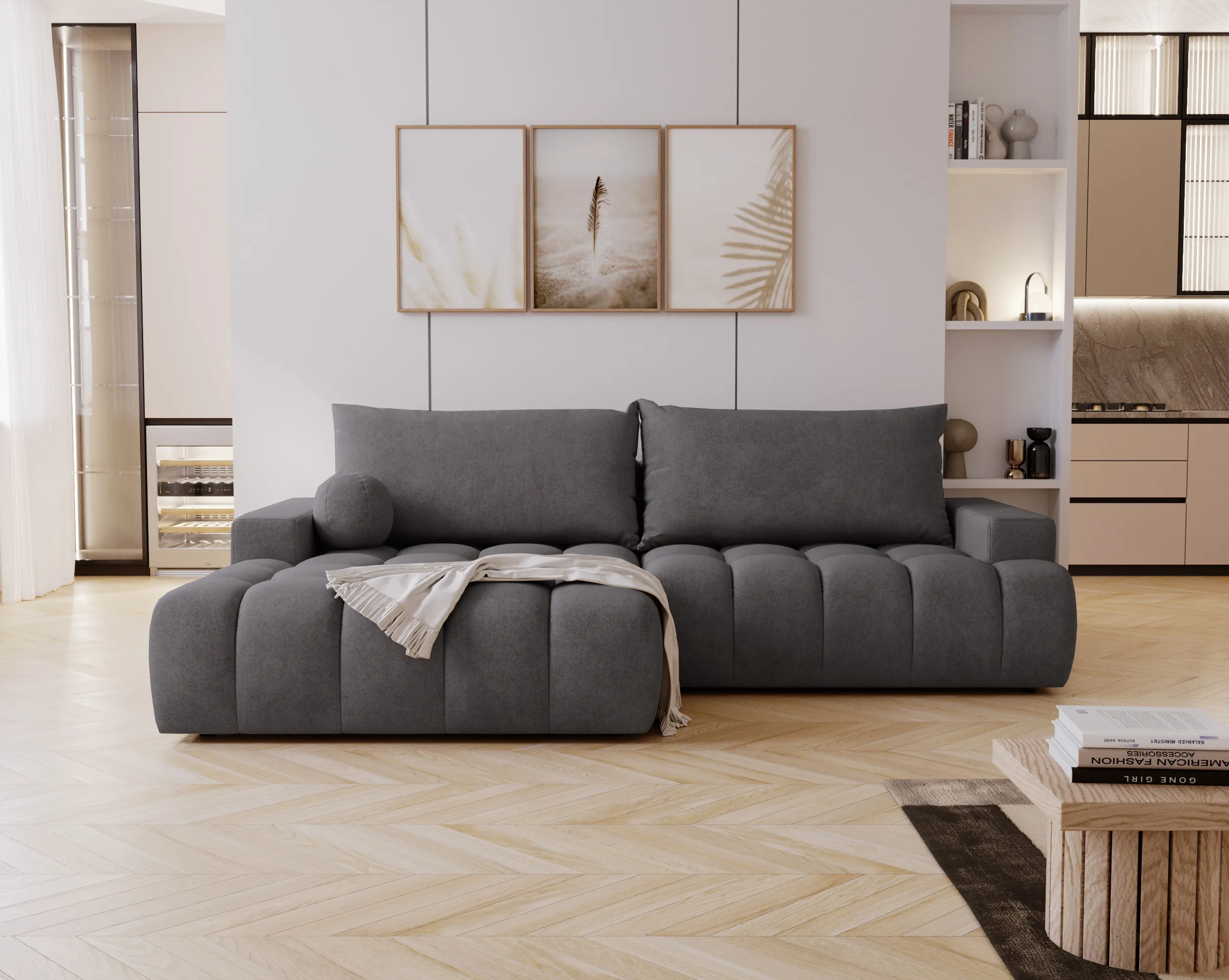 Narożnik Nubi to doskonały wybór dla osób ceniących wygodę, styl i funkcjonalność w jednym. Idealnie sprawdzi się w nowoczesnym salonie, stając się jego centralnym punktem.