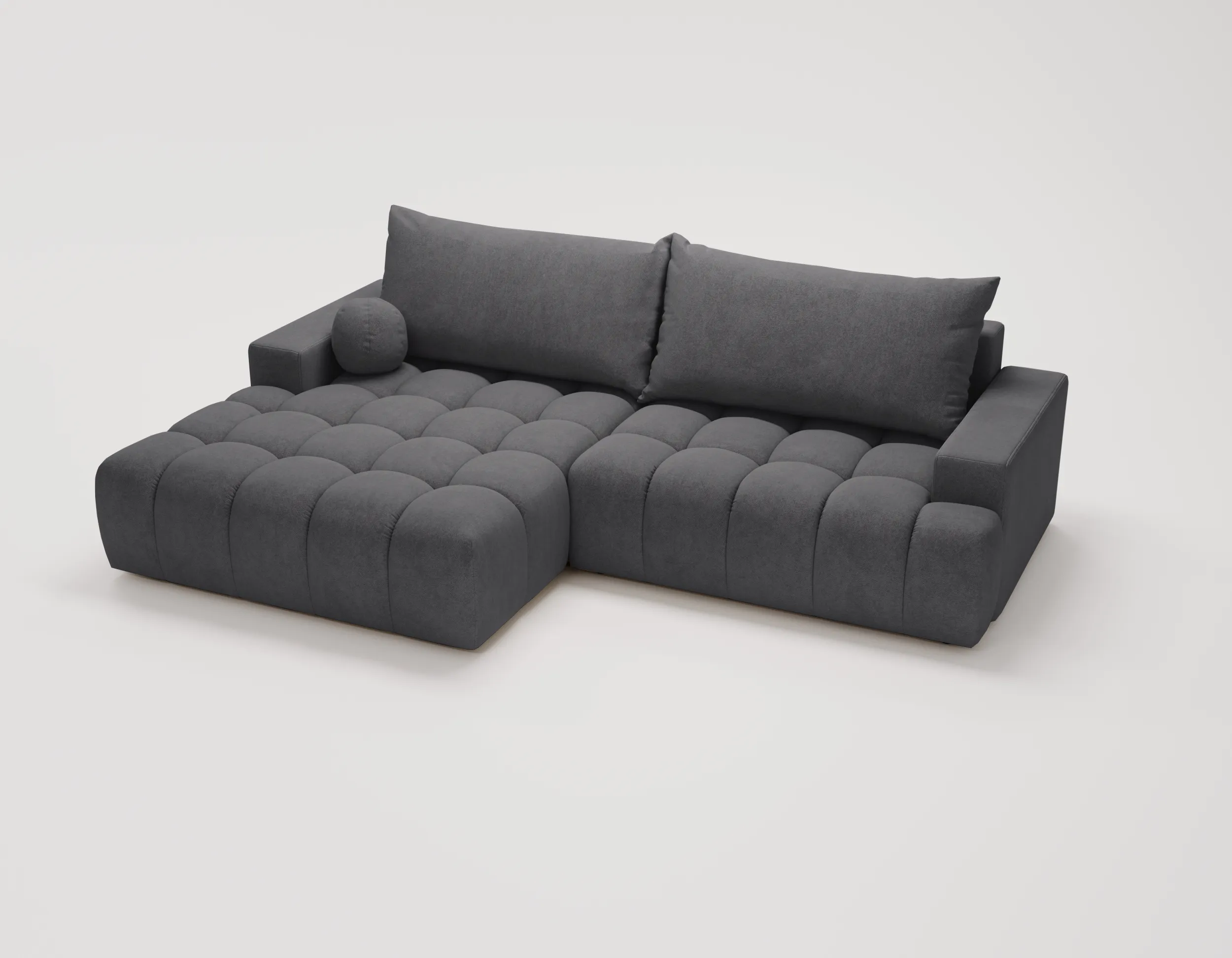 Narożnik L z funkcją spania i pojemnikiem Nubi lewostronny antracyt