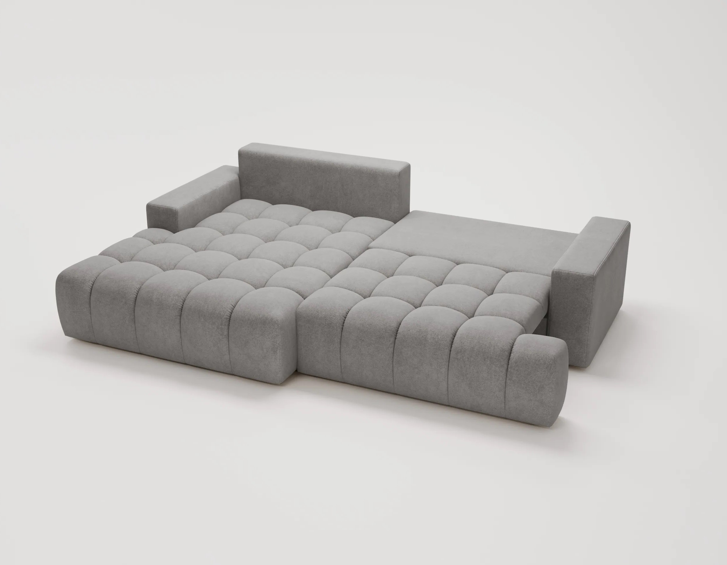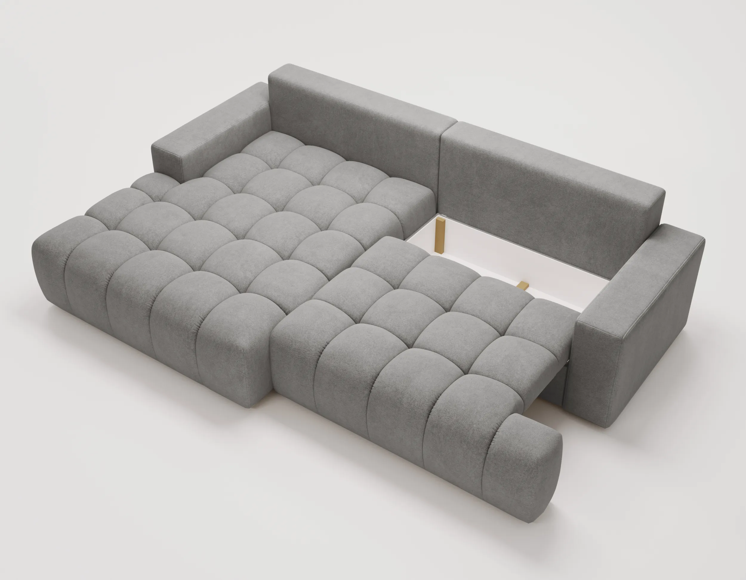 Narożnik z funkcją spania i pojemnikiem Nubi – welur Chill Me, nowoczesny design