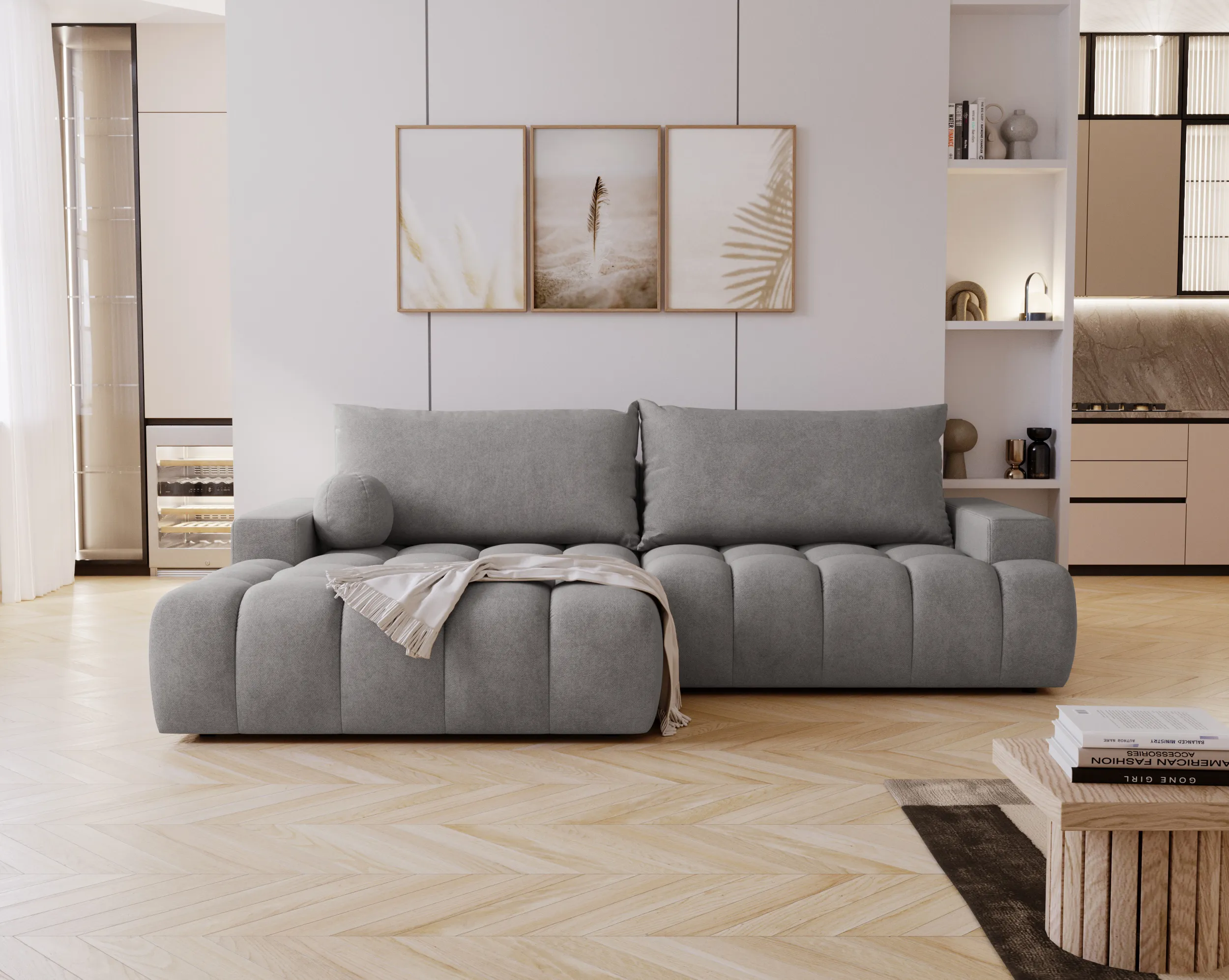 Narożnik Nubi to doskonały wybór dla osób ceniących wygodę, styl i funkcjonalność w jednym. Idealnie sprawdzi się w nowoczesnym salonie, stając się jego centralnym punktem.