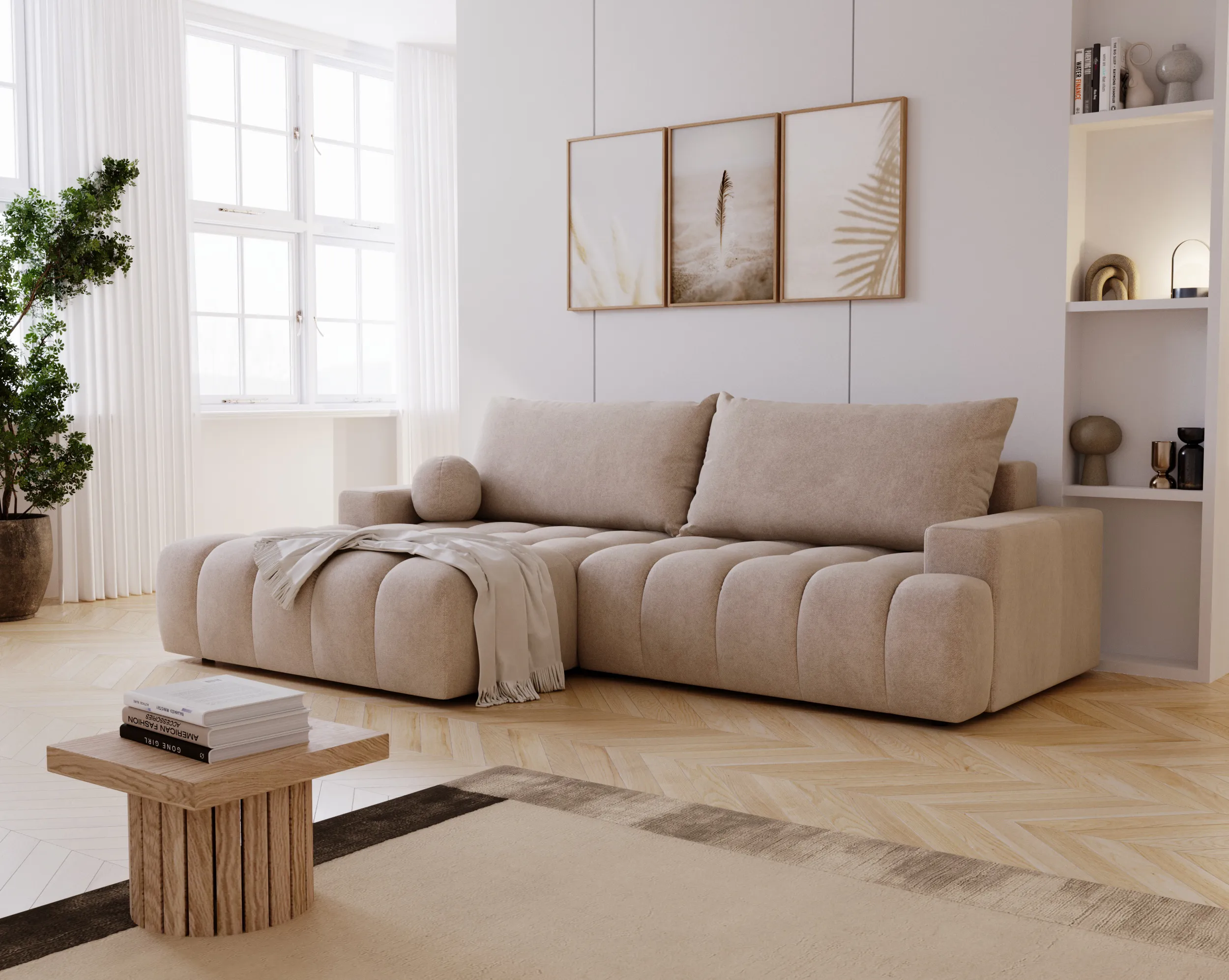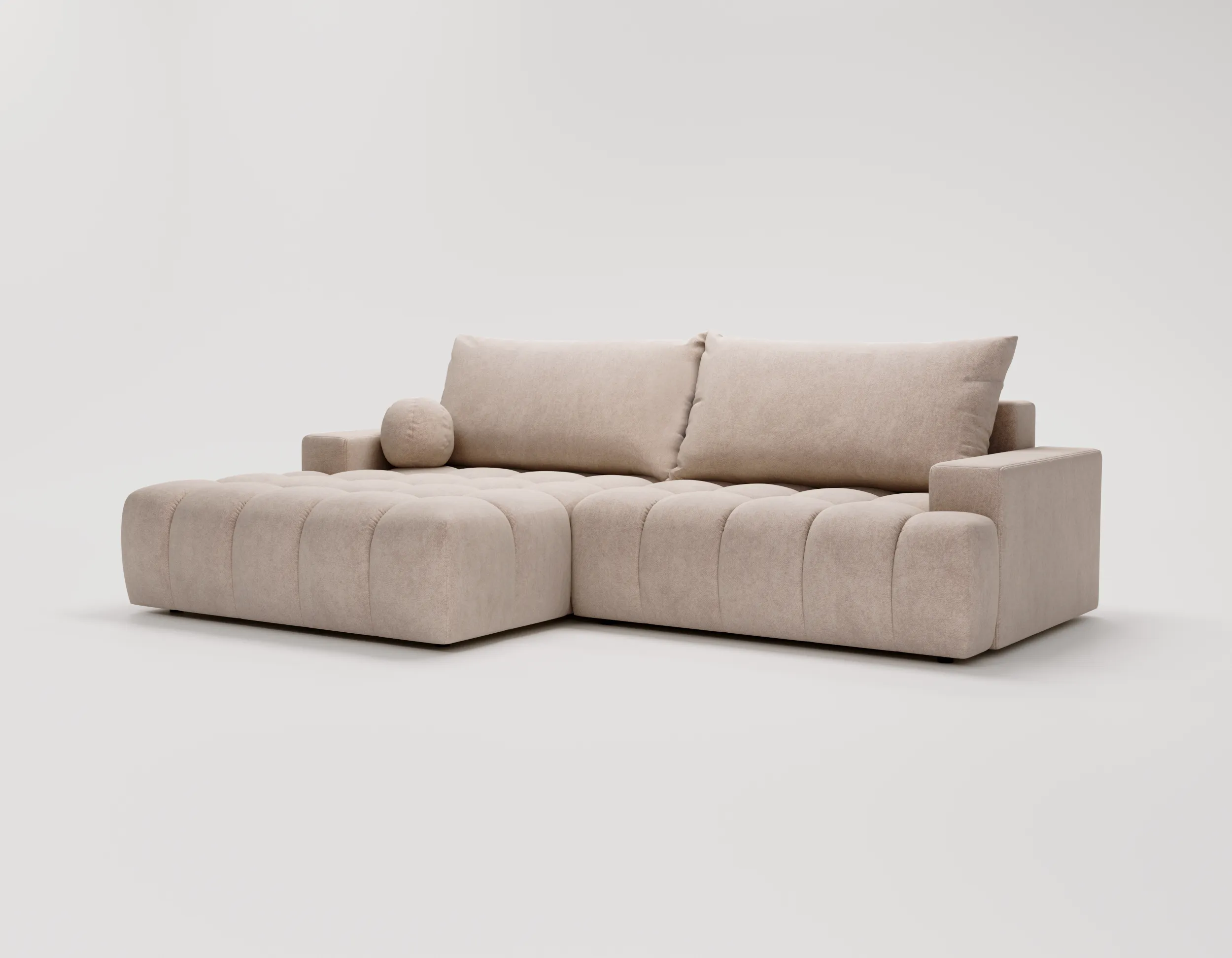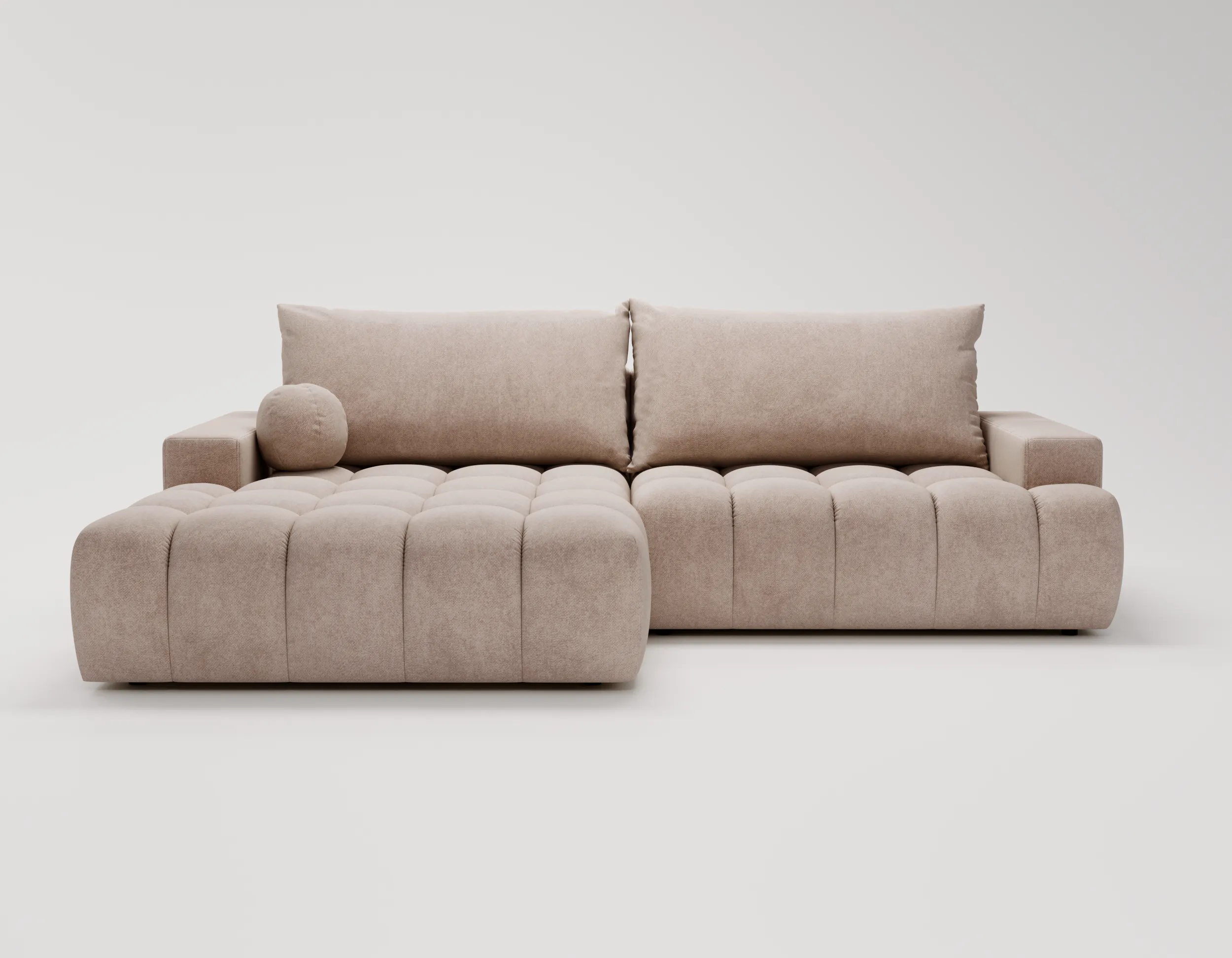 Narożnik L z funkcją spania i pojemnikiem Nubi lewostronny ciemny beż