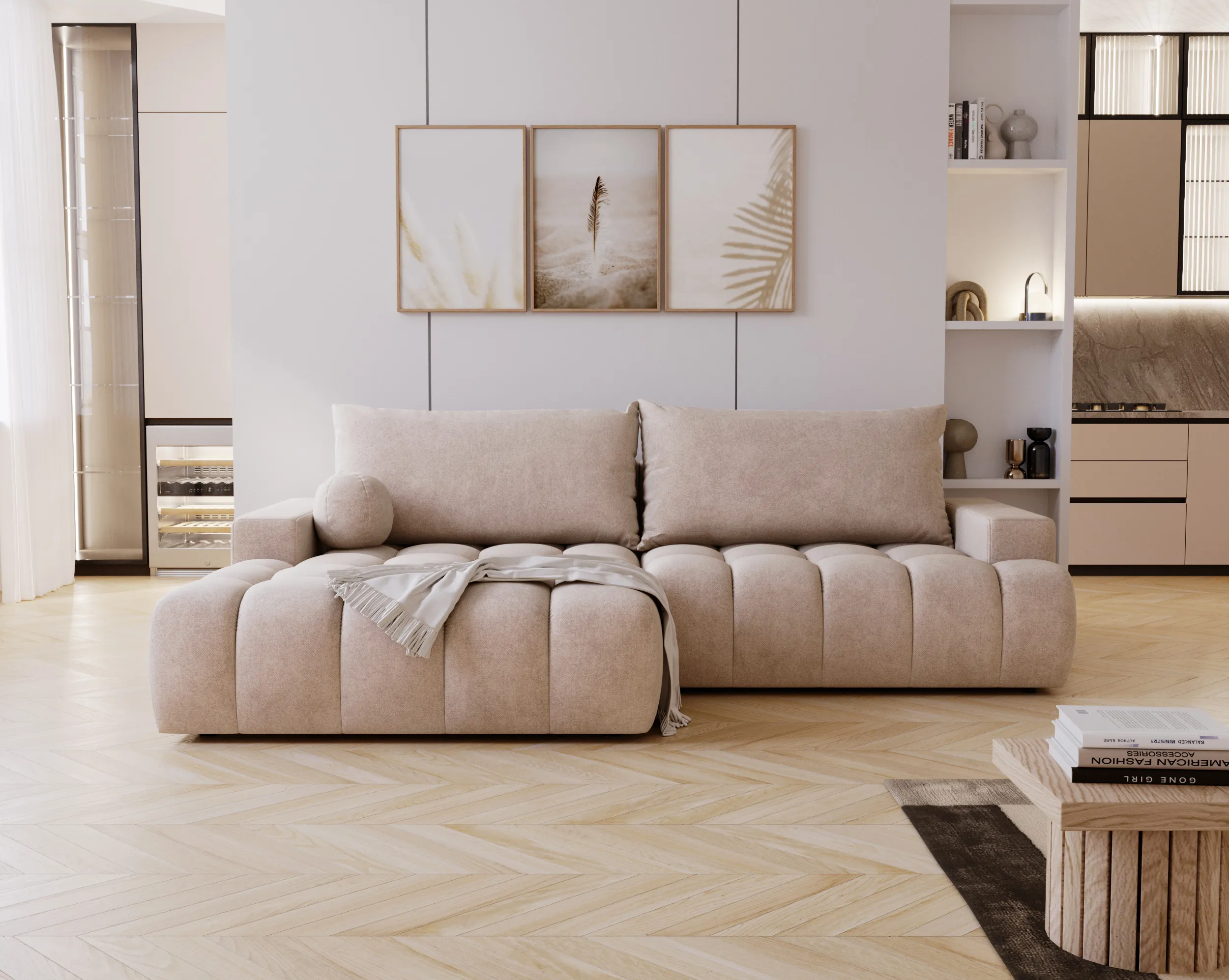 Narożnik Nubi to doskonały wybór dla osób ceniących wygodę, styl i funkcjonalność w jednym. Idealnie sprawdzi się w nowoczesnym salonie, stając się jego centralnym punktem.