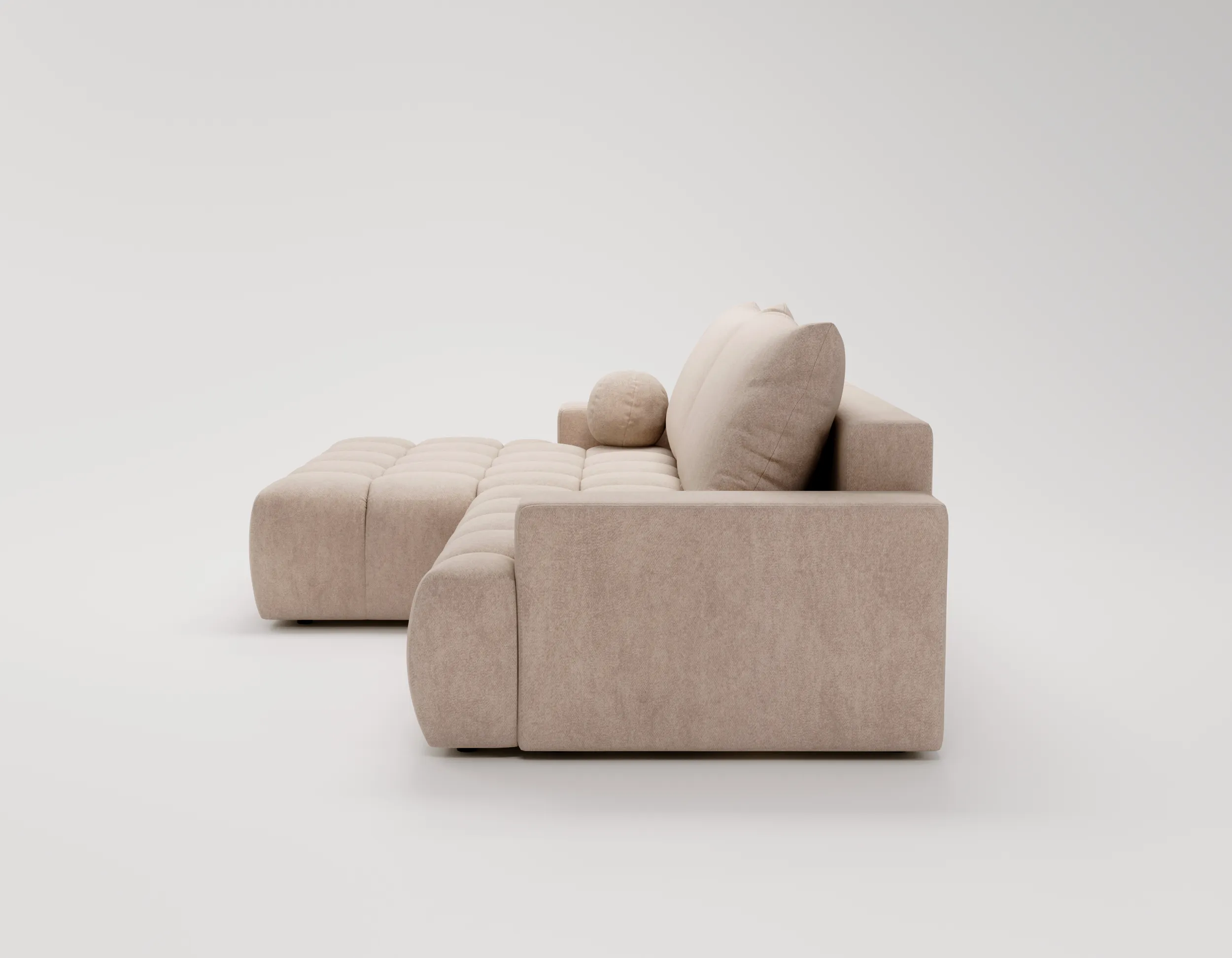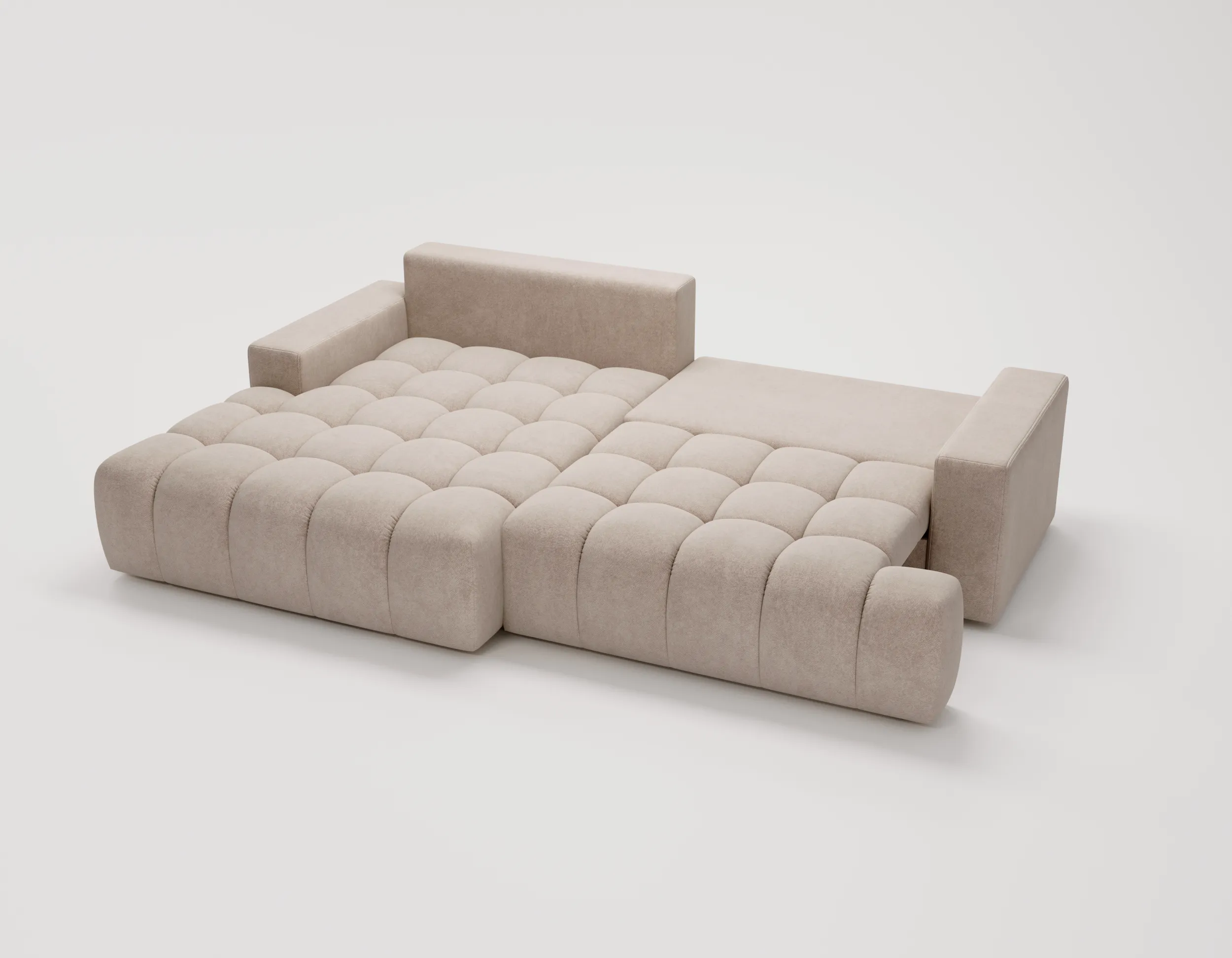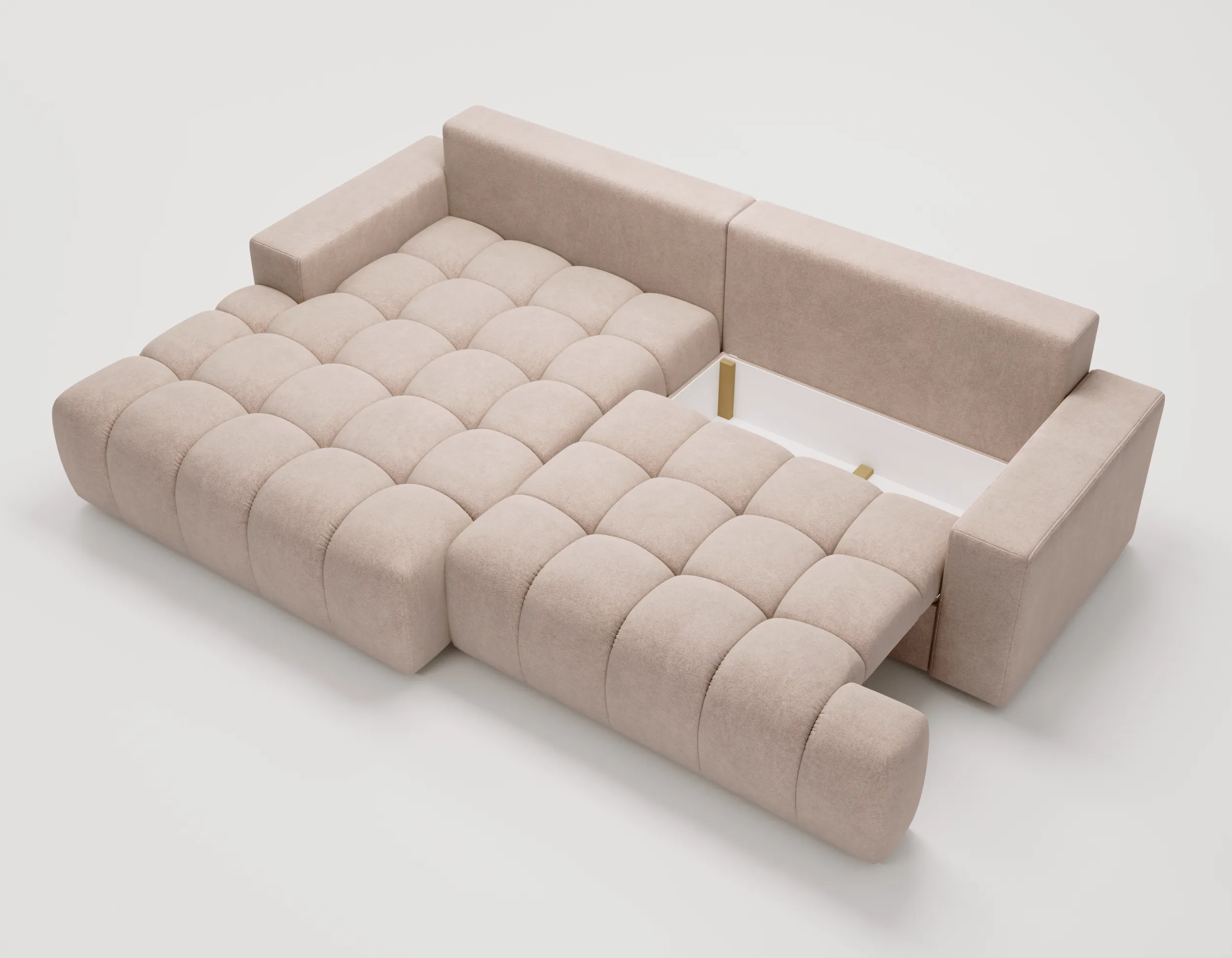 Narożnik z funkcją spania i pojemnikiem Nubi – welur Chill Me, nowoczesny design
