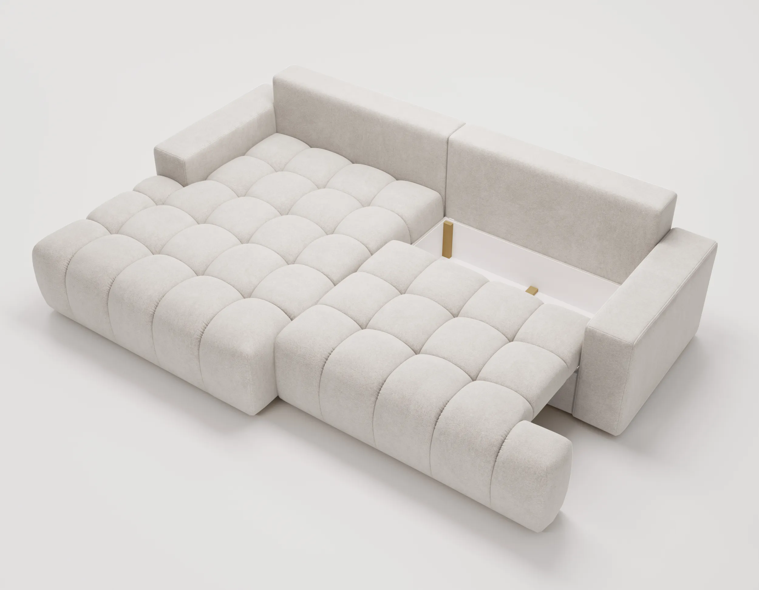 Narożnik z funkcją spania i pojemnikiem Nubi – welur Chill Me, nowoczesny design