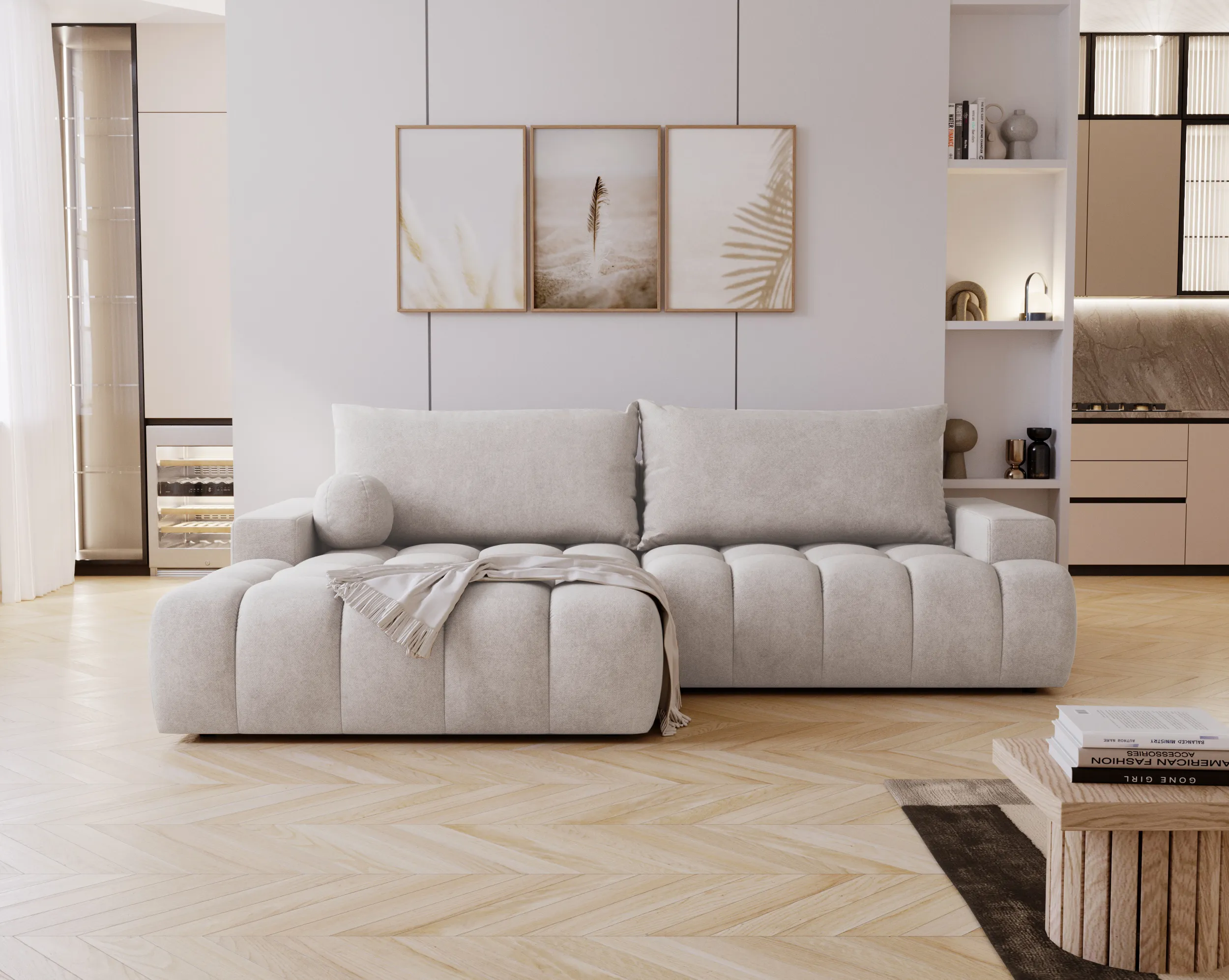Narożnik Nubi to doskonały wybór dla osób ceniących wygodę, styl i funkcjonalność w jednym. Idealnie sprawdzi się w nowoczesnym salonie, stając się jego centralnym punktem.