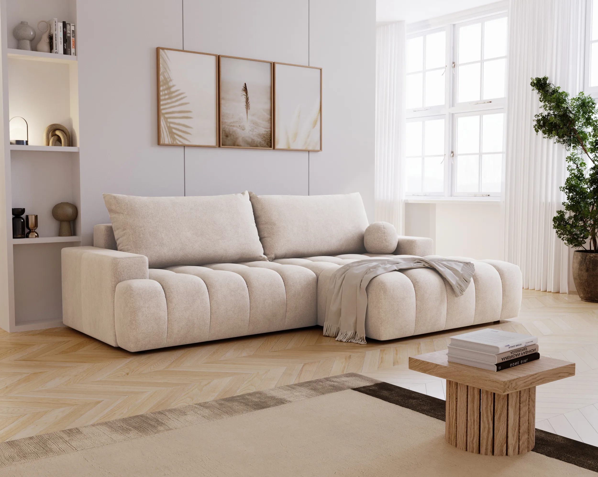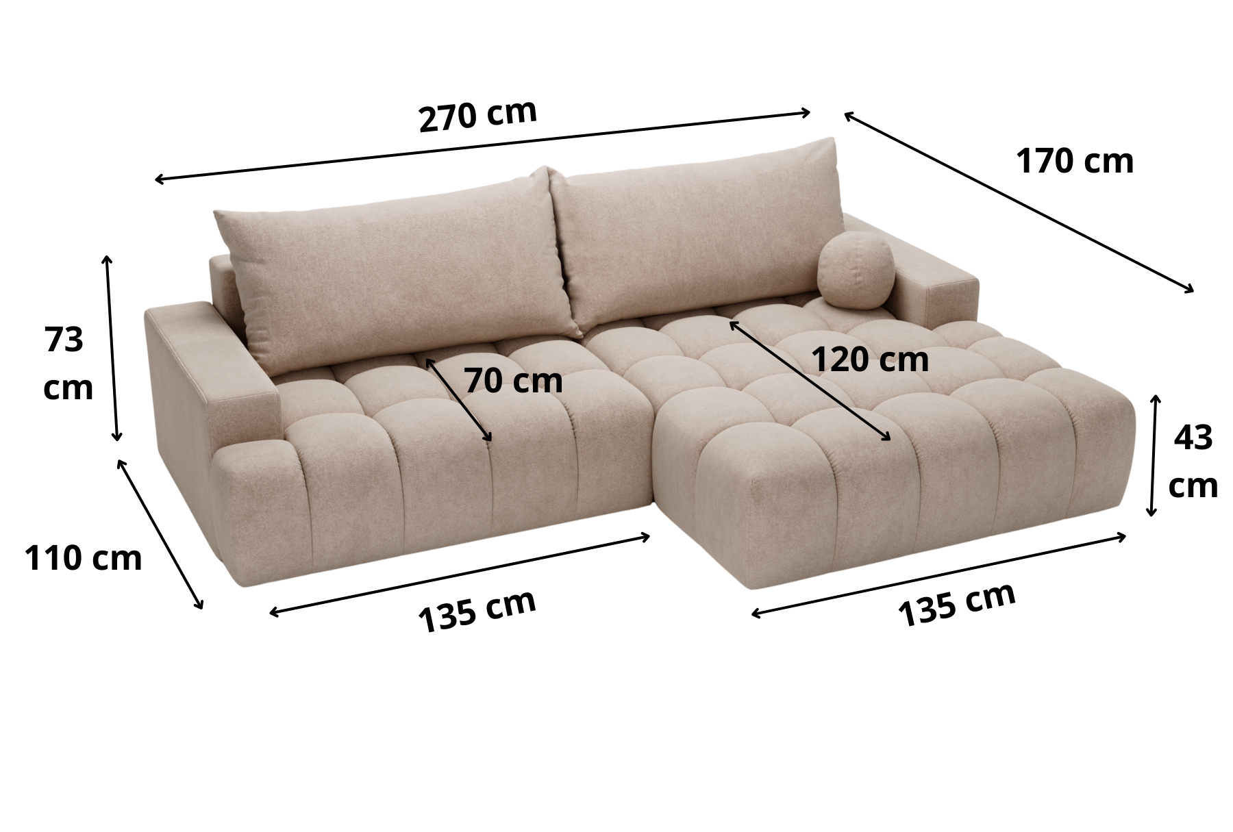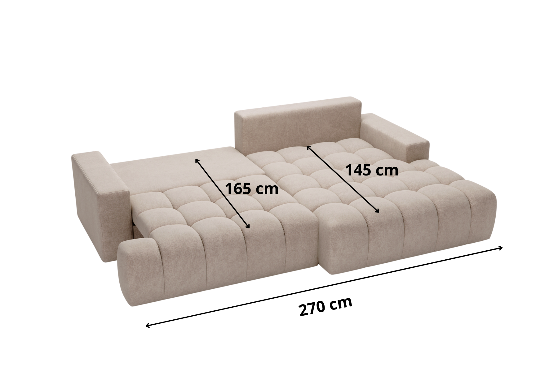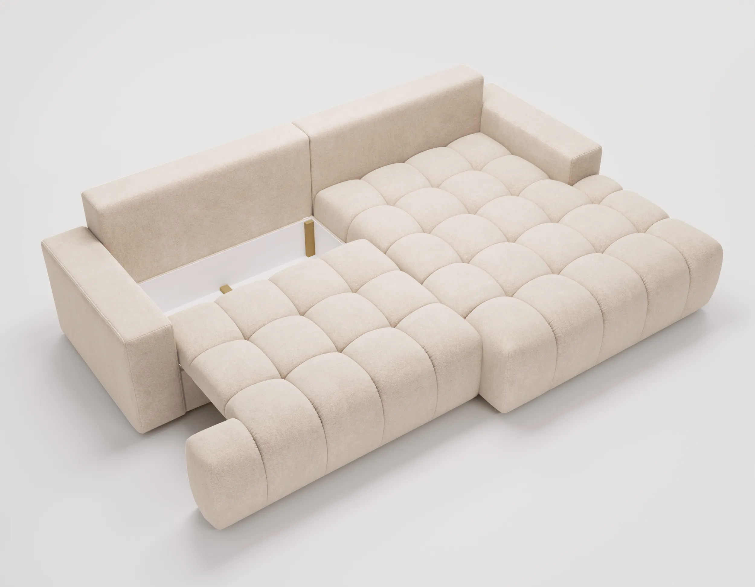 Narożnik L z funkcją spania i pojemnikiem Nubi prawostronny beżowy