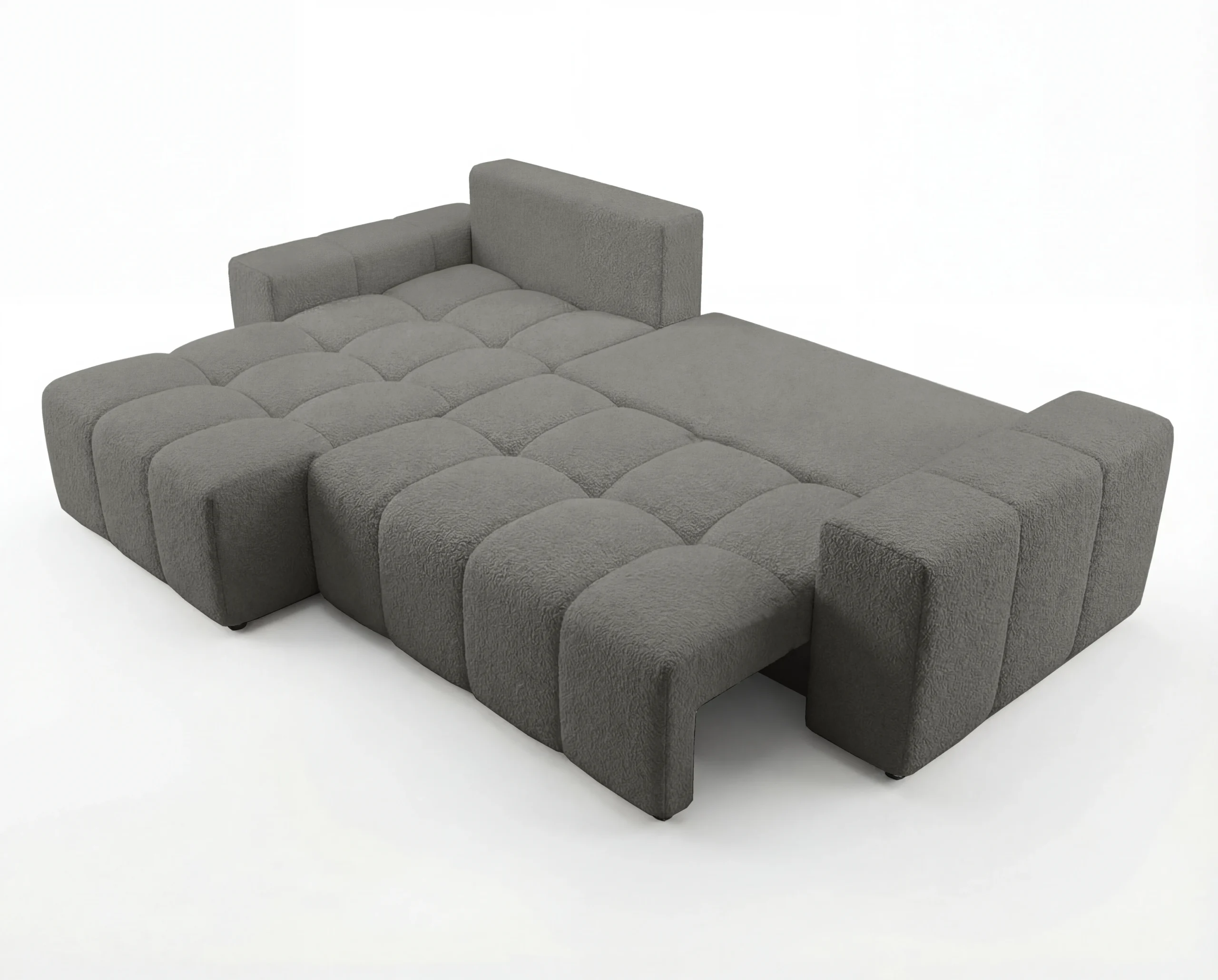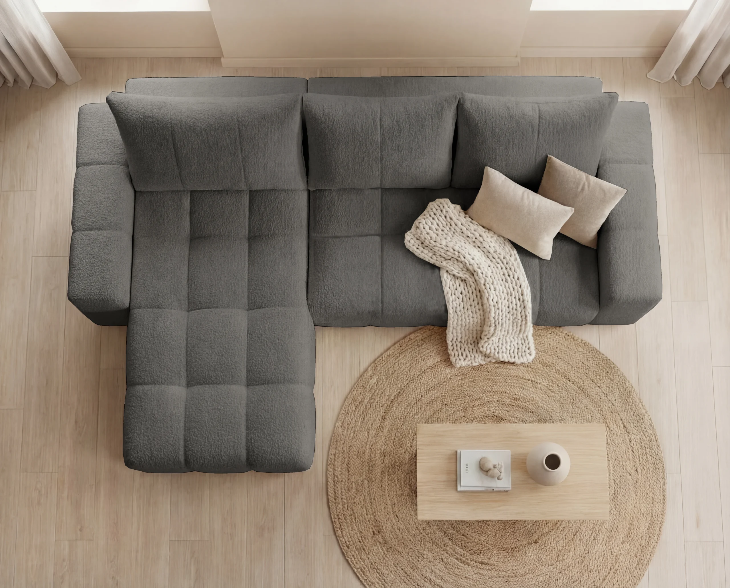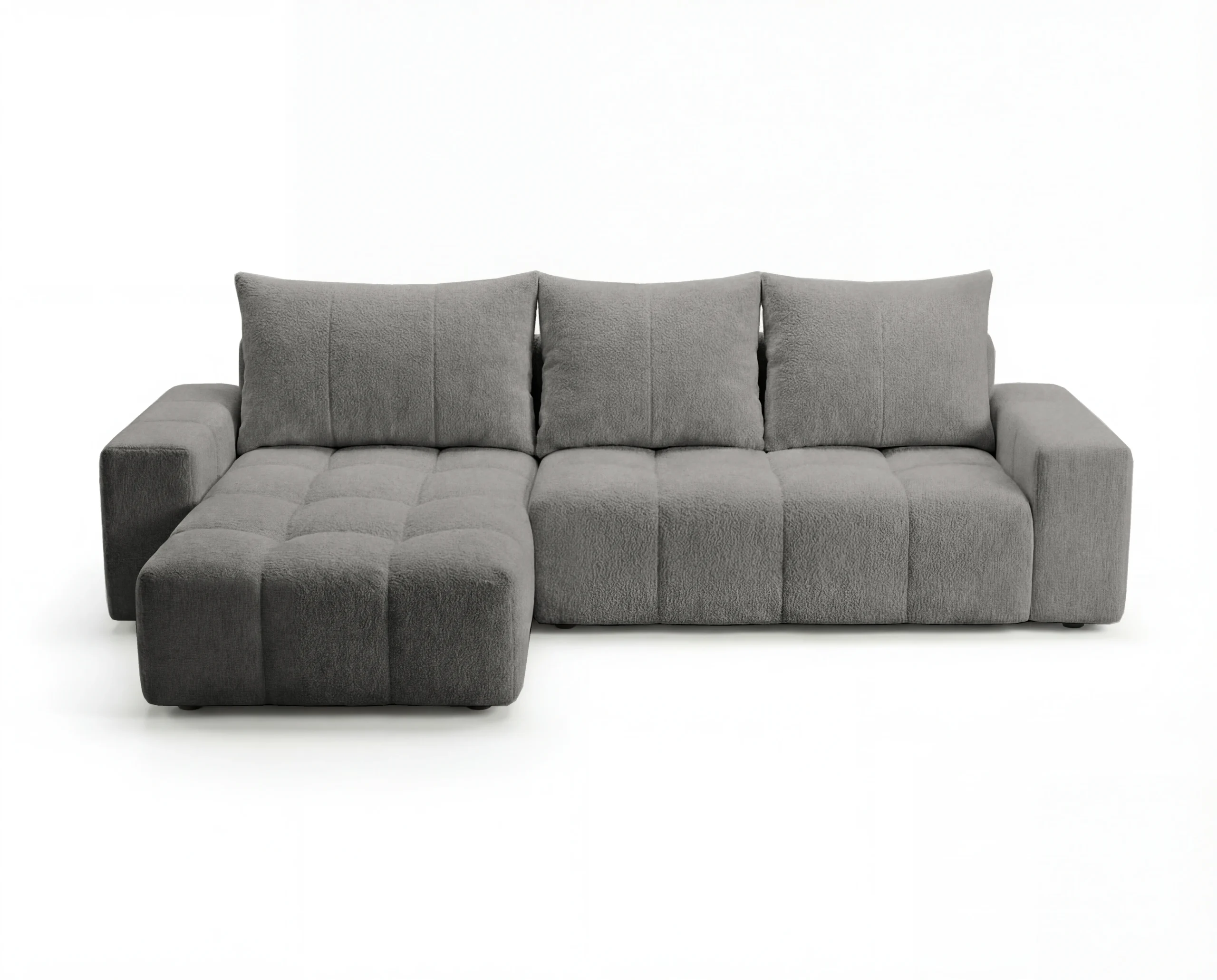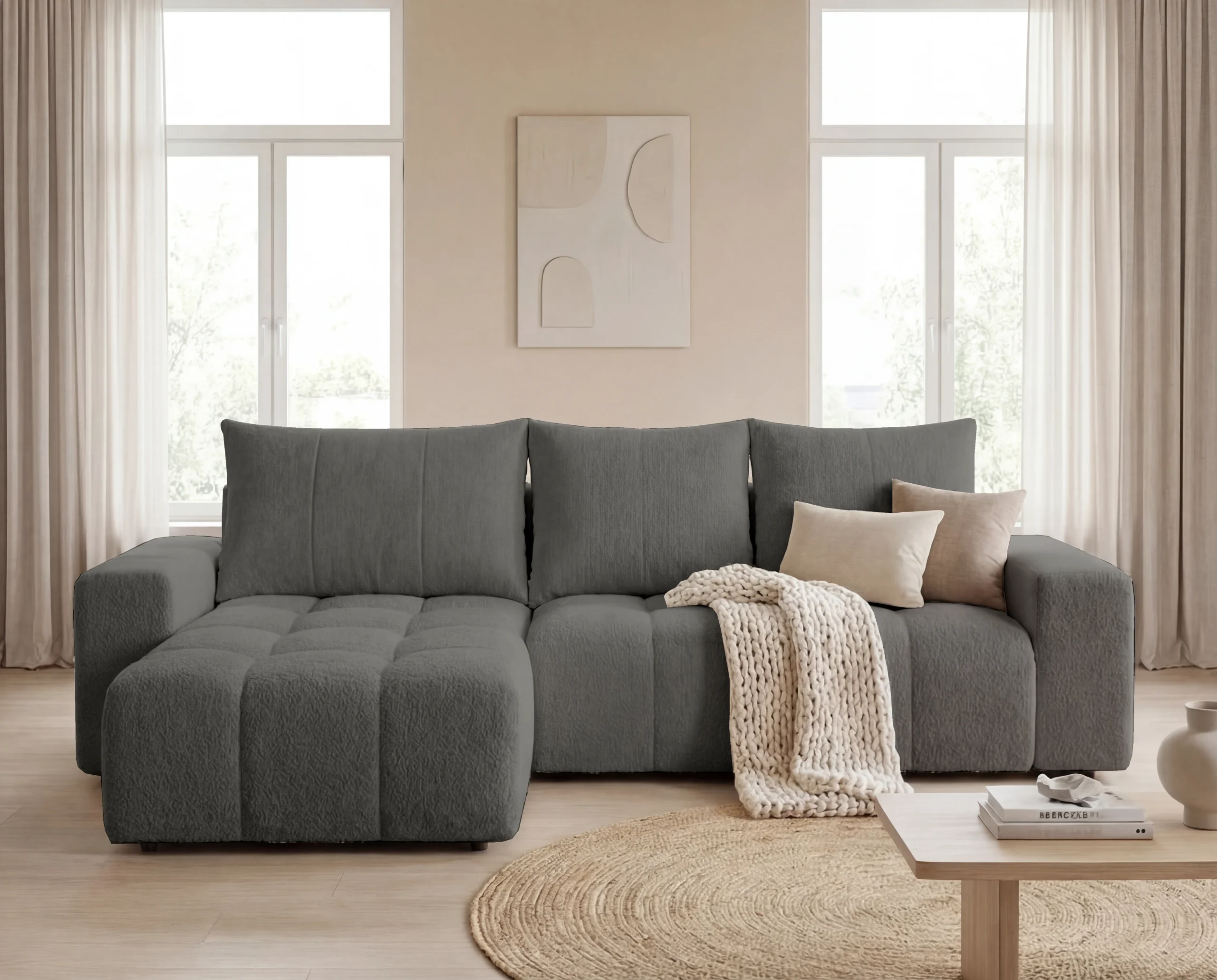 Postaw na narożnik L do salonu w tkaninie bouclé, który łączy styl, wygodę i funkcjonalność. To mebel, który stanie się centralnym punktem Twojego wnętrza i zapewni komfort na lata.