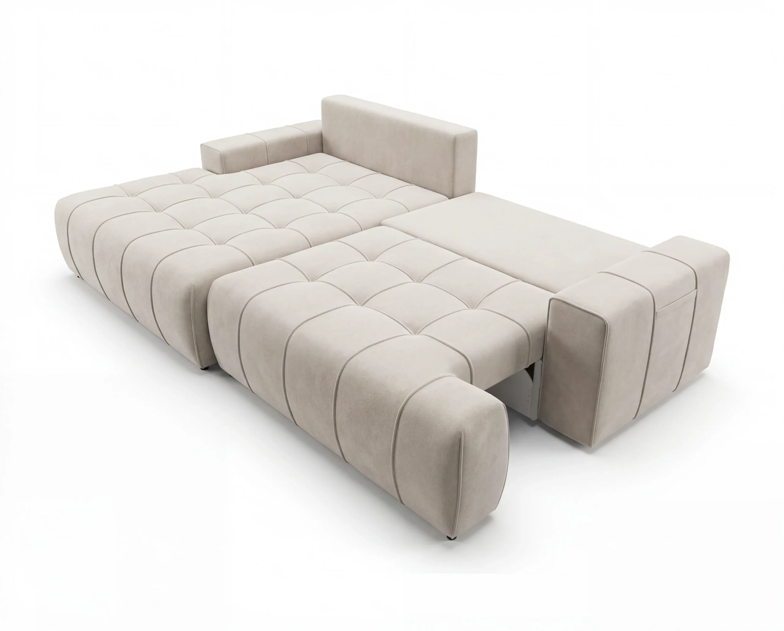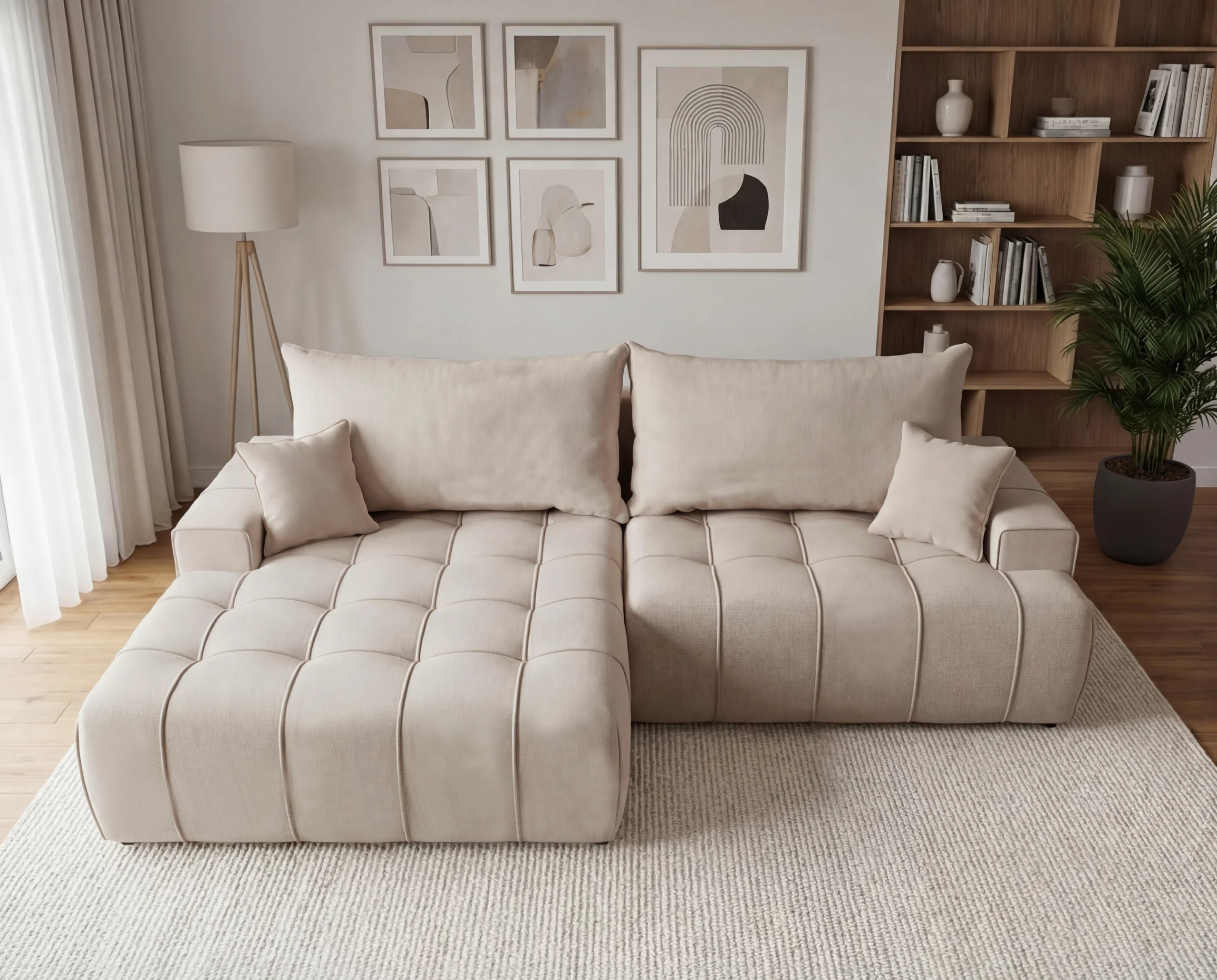 Napisz pierwszą opinię o „Nowoczesny narożnik z funkcją spania, pojemnikiem i kieszonką na boczkach Capri lewostronny beżowy”