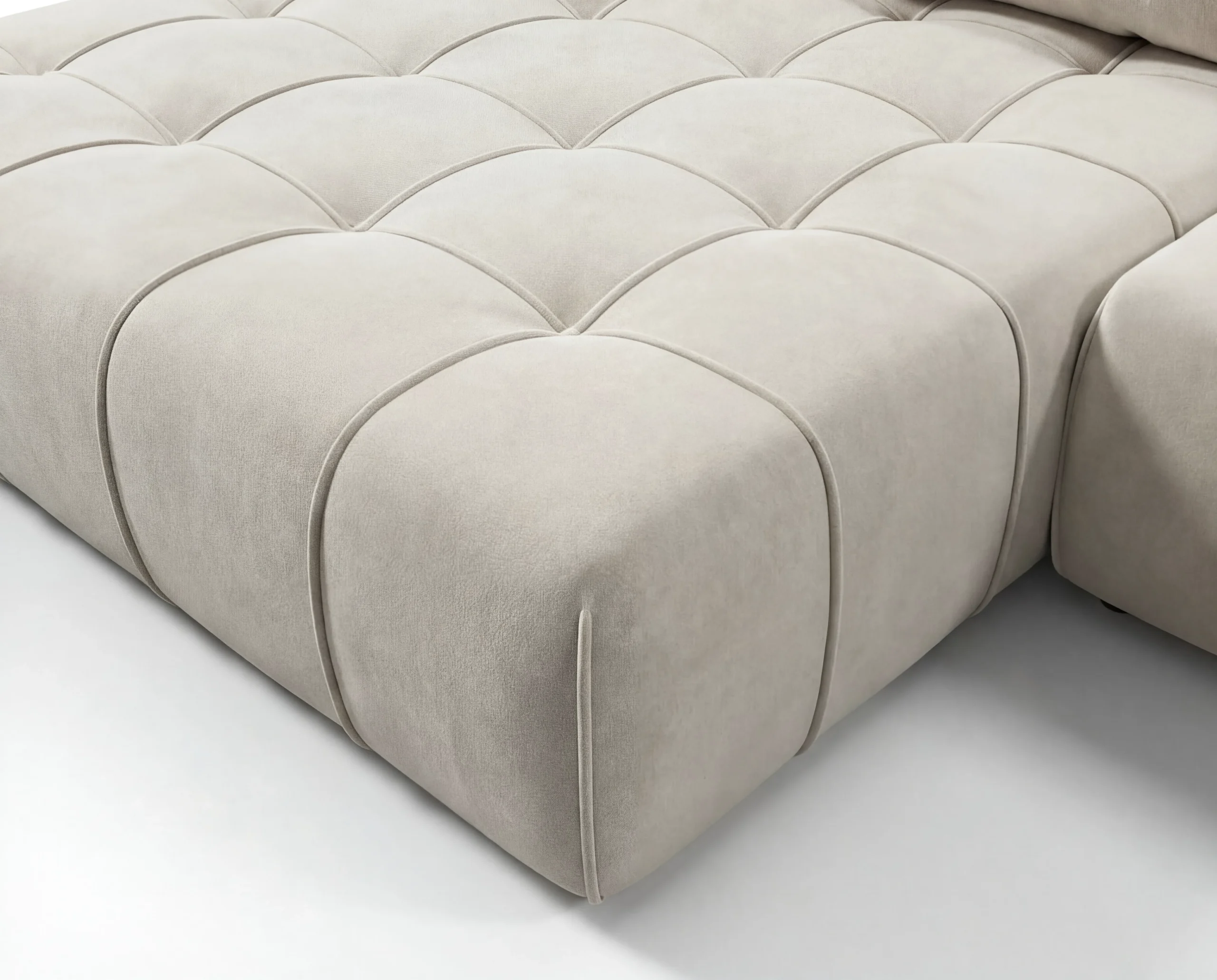 Model Capri wyróżniają eleganckie przeszycia z pikowaniami, które podkreślają nowoczesny styl mebla. Obicie stanowi tkanina pluszowa łatwoczyszcząca, miękka w dotyku i odporna na codzienne użytkowanie. Poduszki oparciowe oraz poduszki akcesoryjne z wypełnieniem silikonowym gwarantują wysoki komfort siedzenia i relaksu.