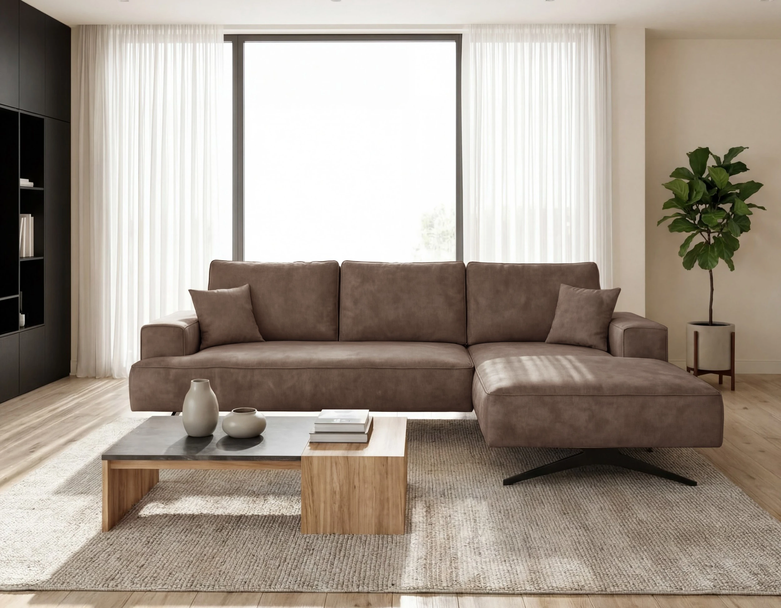 Sofa narożna Capitol to propozycja dla osób ceniących minimalistyczny styl, wygodę oraz wysoką jakość wykonania. Model bez funkcji spania doskonale sprawdzi się w eleganckim salonie, przestronnym apartamencie czy nowoczesnym biurze. Prosta, geometryczna bryła w połączeniu z designerskimi metalowymi nogami typu płozy tworzy efektowny mebel, który przyciąga wzrok i nadaje wnętrzu lekkości.