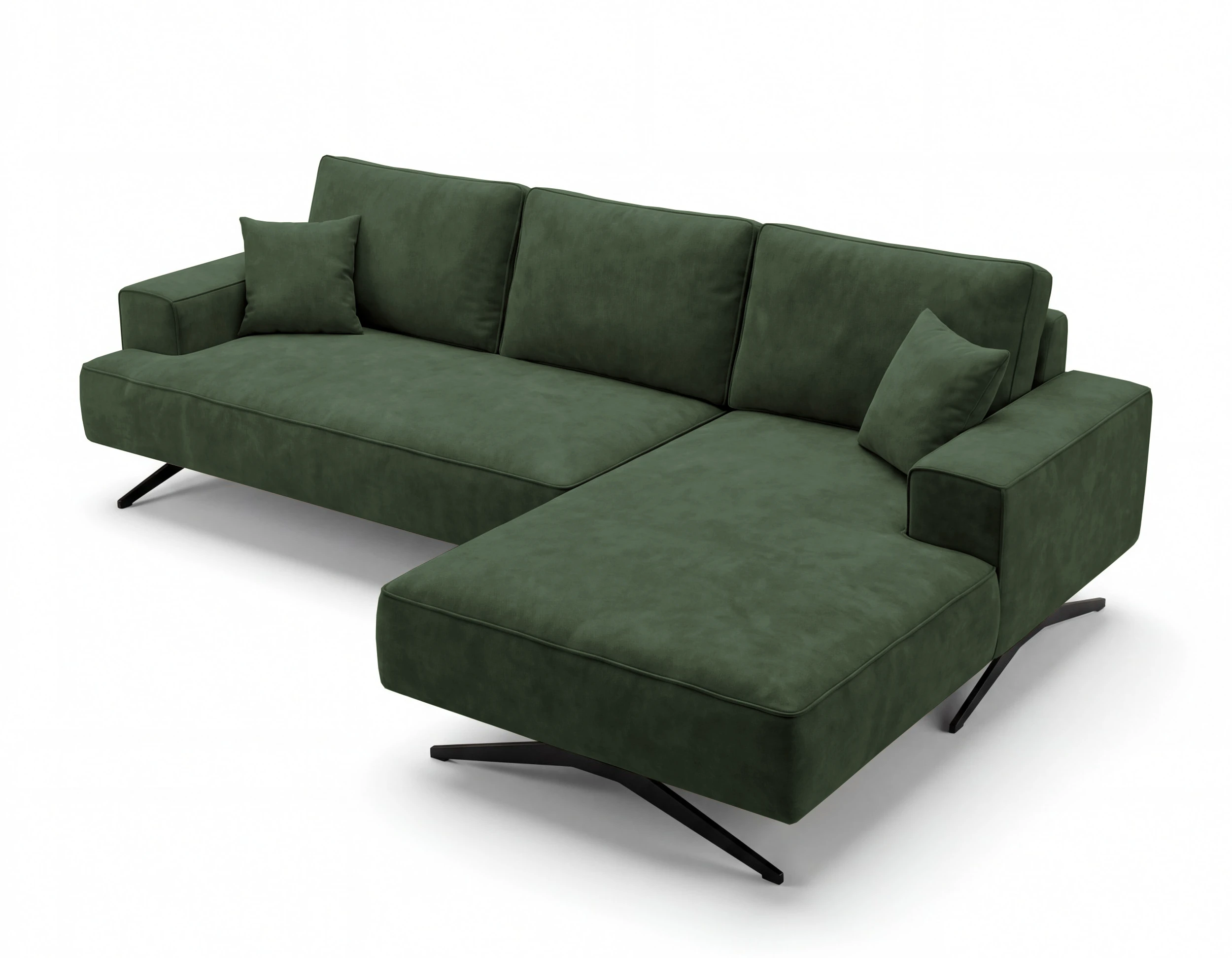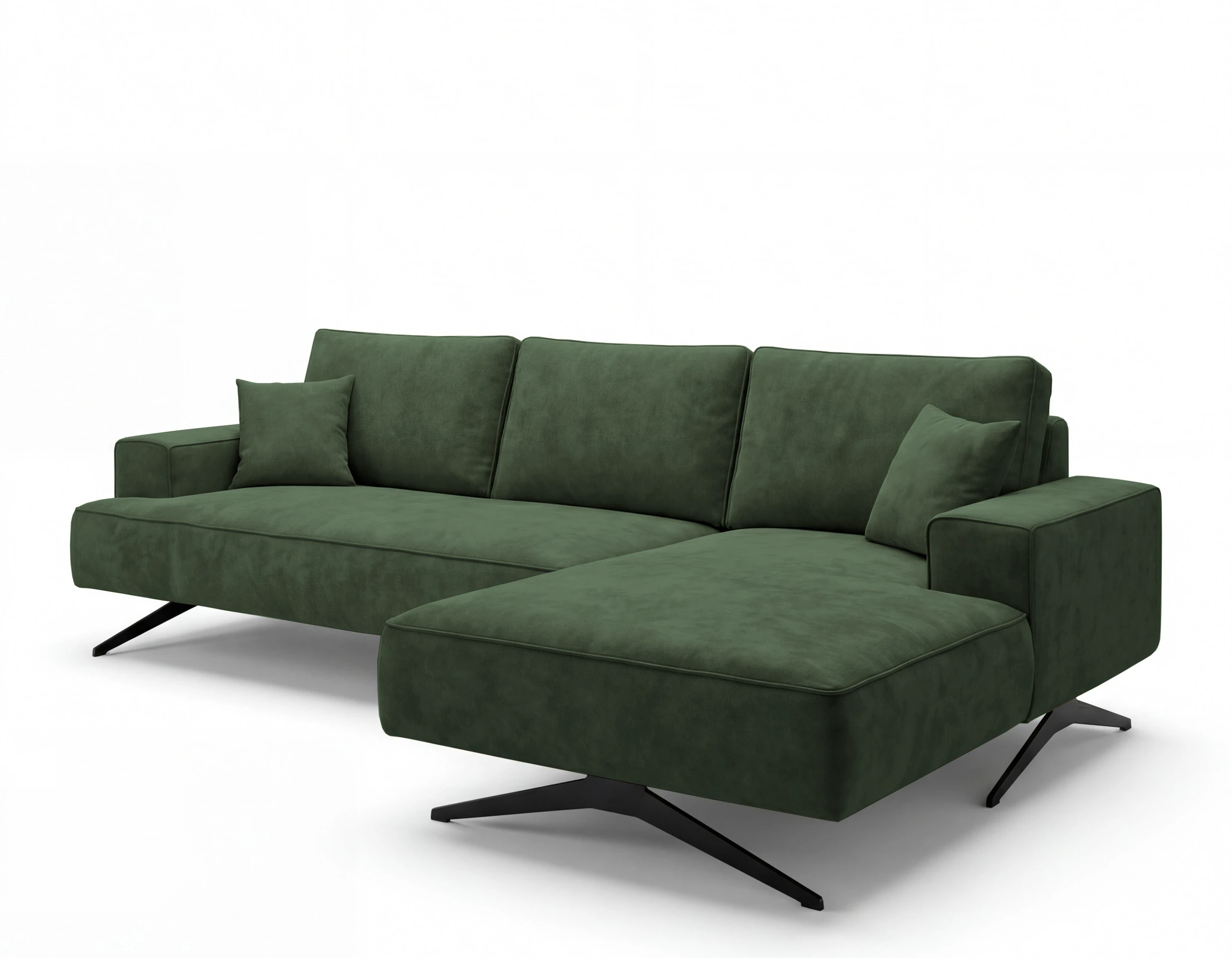 Sofa narożna Capitol bez funkcji spania – nowoczesny design i komfort na metalowych płozach
