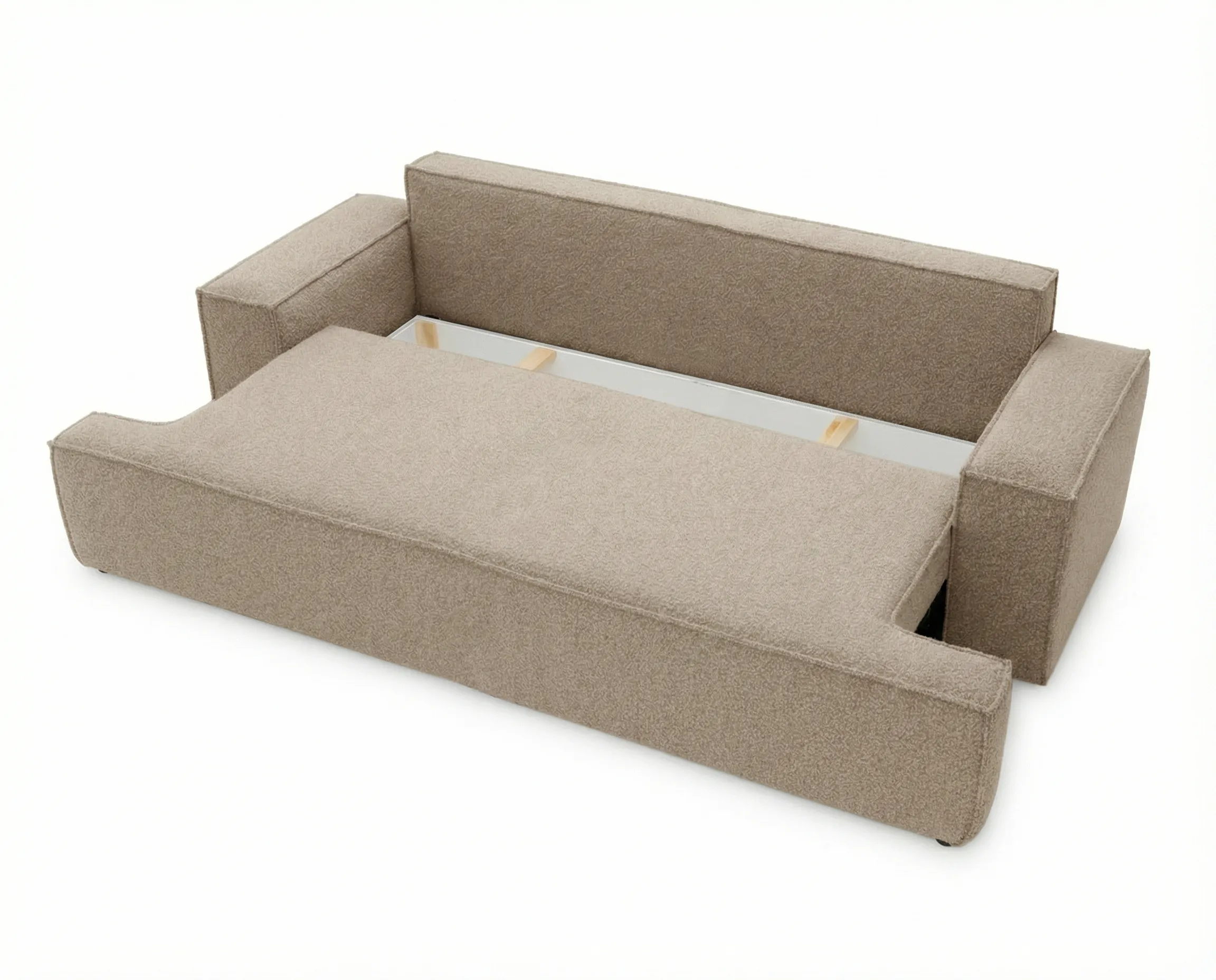 Komfort użytkowania stoi na najwyższym poziomie dzięki zastosowaniu wysokoelastycznej pianki w siedzisku oraz sprężyny falistej, które gwarantują odpowiednie podparcie, trwałość oraz wygodę zarówno podczas siedzenia, jak i spania.