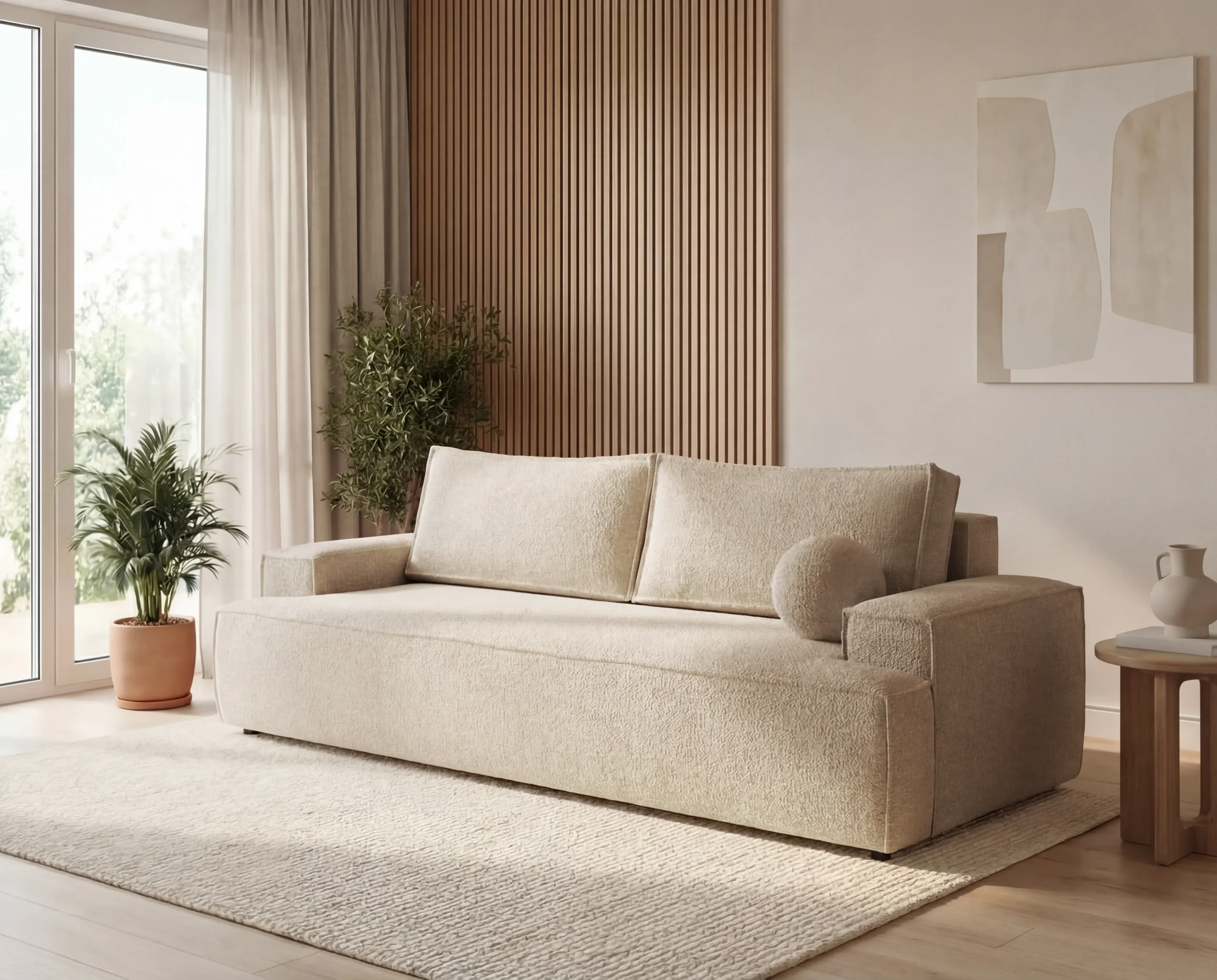Sofa trzyosobowa Ines z funkcją spania to propozycja dla osób ceniących nowoczesny styl, wygodę oraz funkcjonalne rozwiązania do codziennego użytku. Jej minimalistyczna forma, proste linie oraz subtelne detale sprawiają, że doskonale odnajdzie się w nowoczesnych, skandynawskich i loftowych aranżacjach wnętrz.