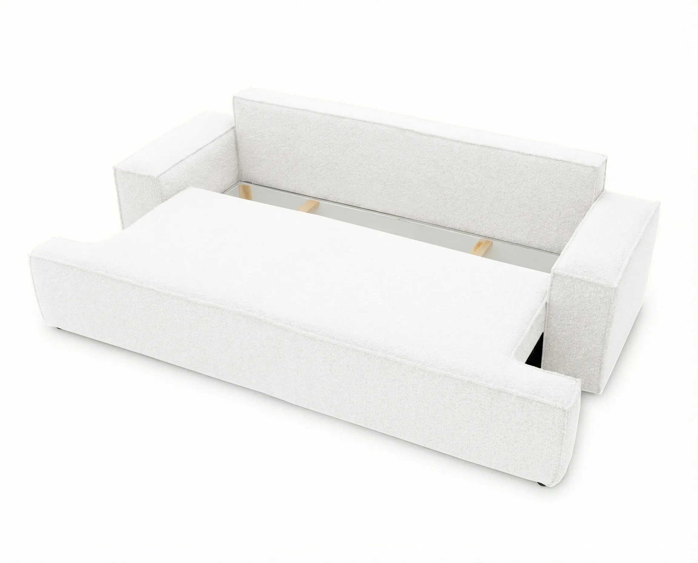 Komfort użytkowania stoi na najwyższym poziomie dzięki zastosowaniu wysokoelastycznej pianki w siedzisku oraz sprężyny falistej, które gwarantują odpowiednie podparcie, trwałość oraz wygodę zarówno podczas siedzenia, jak i spania.