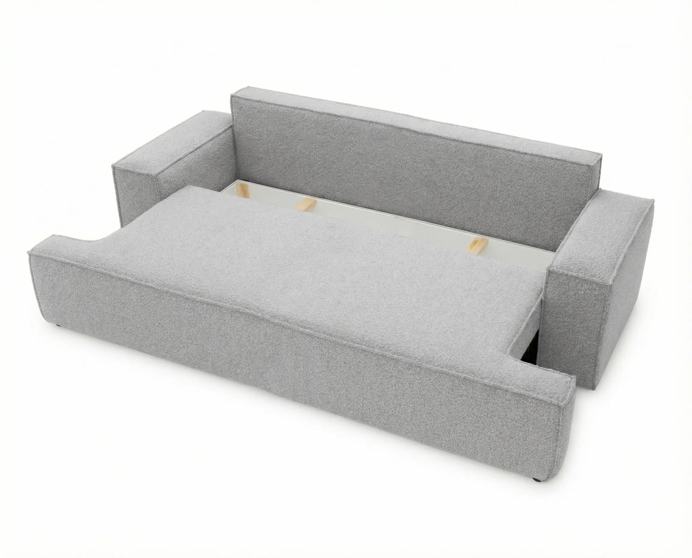 Sofa trzyosobowa z funkcją spania i pojemnikiem Ines jasnoszary