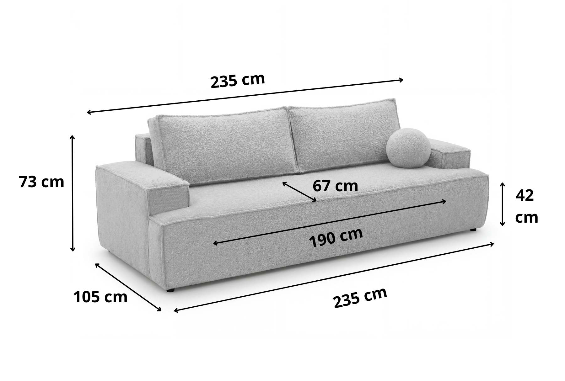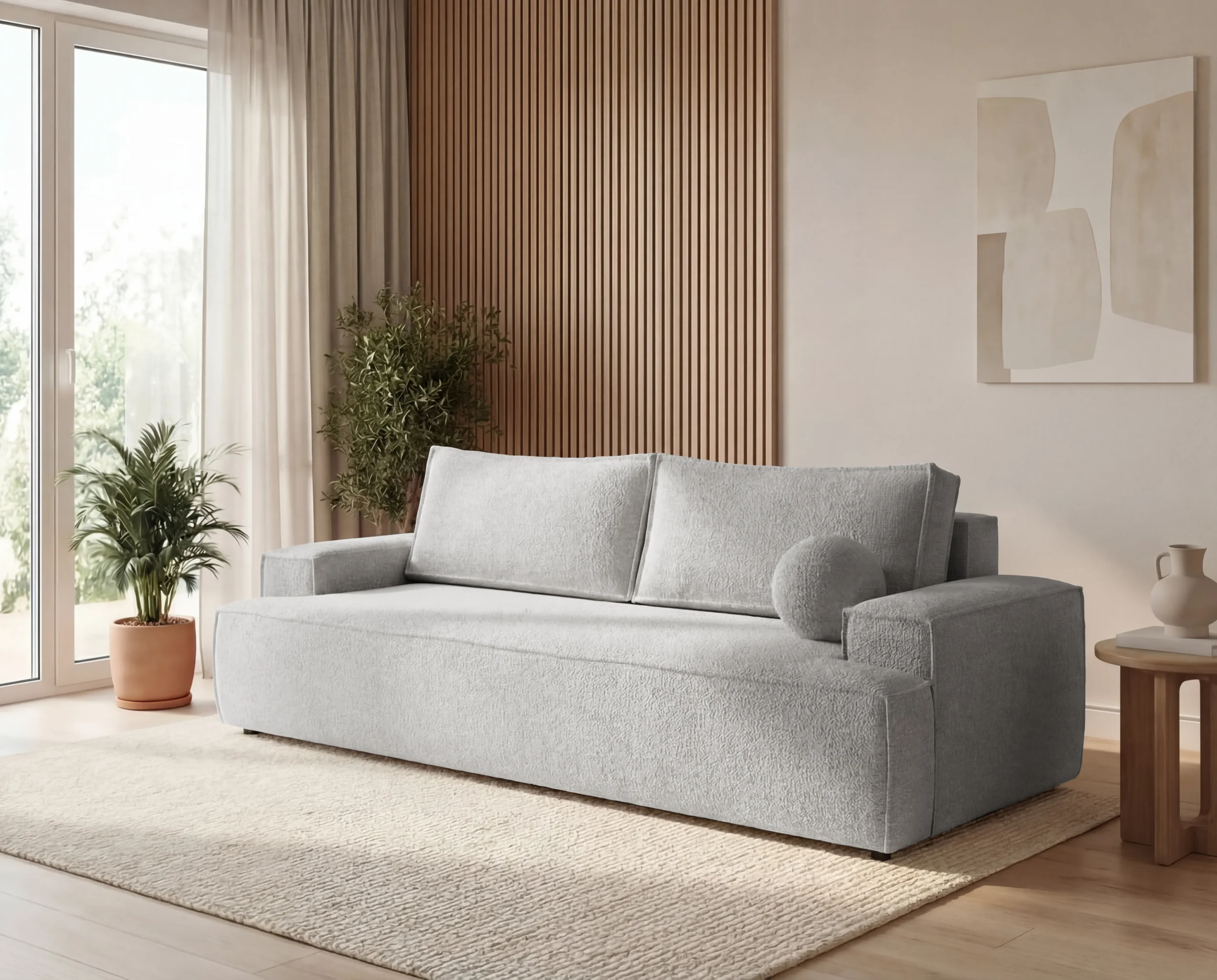 Sofa trzyosobowa Ines z funkcją spania to propozycja dla osób ceniących nowoczesny styl, wygodę oraz funkcjonalne rozwiązania do codziennego użytku. Jej minimalistyczna forma, proste linie oraz subtelne detale sprawiają, że doskonale odnajdzie się w nowoczesnych, skandynawskich i loftowych aranżacjach wnętrz.