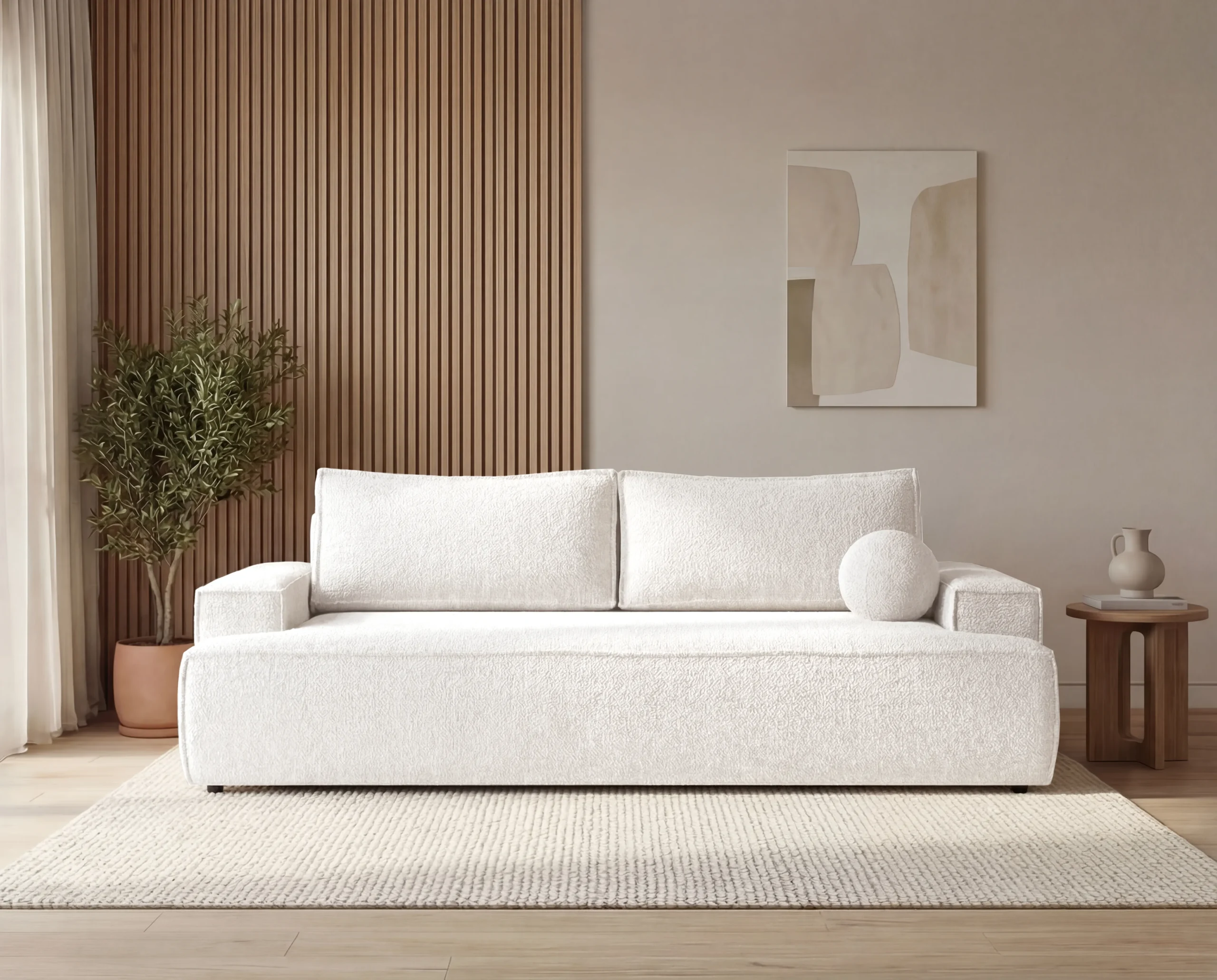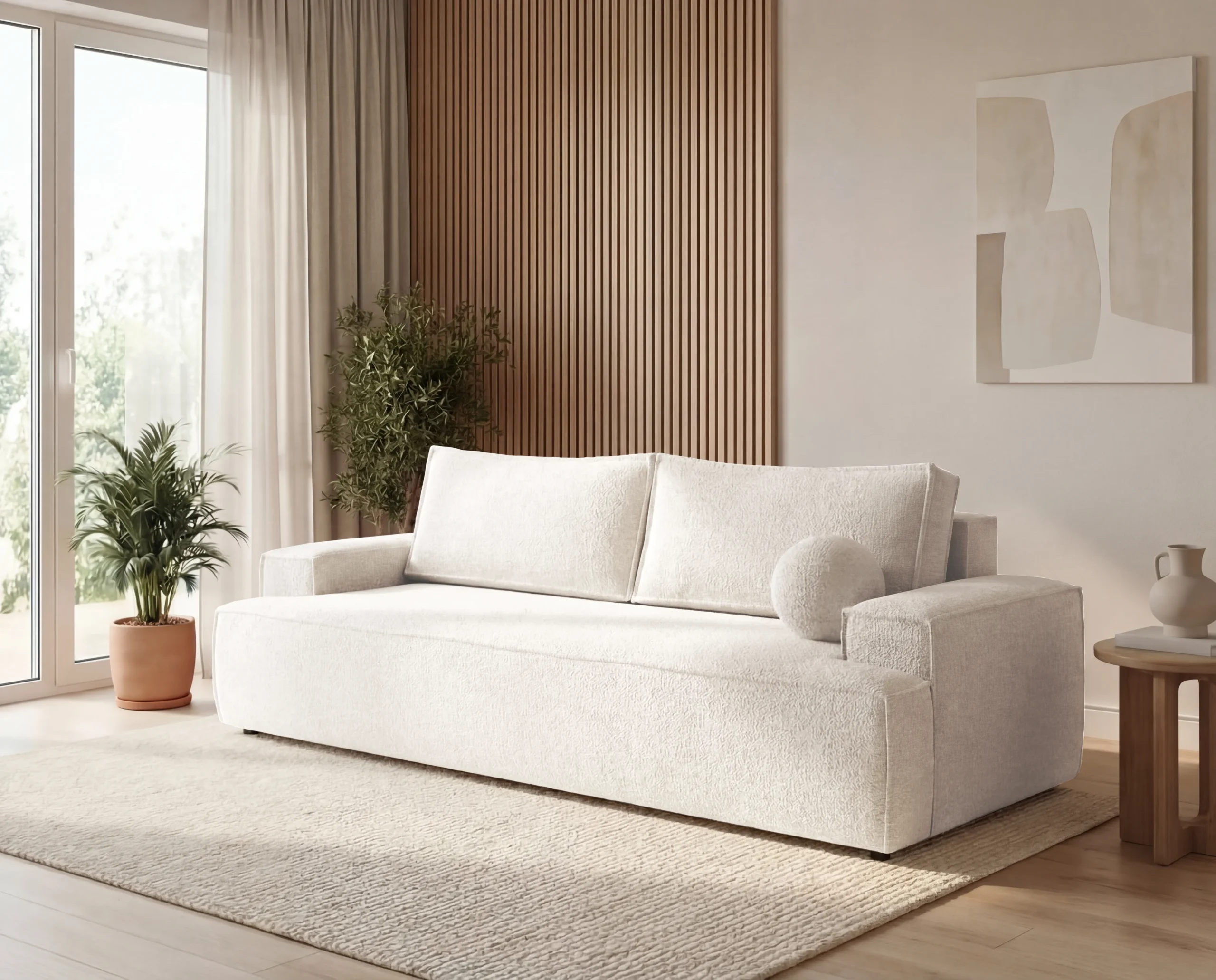 Sofa trzyosobowa Ines z funkcją spania to propozycja dla osób ceniących nowoczesny styl, wygodę oraz funkcjonalne rozwiązania do codziennego użytku. Jej minimalistyczna forma, proste linie oraz subtelne detale sprawiają, że doskonale odnajdzie się w nowoczesnych, skandynawskich i loftowych aranżacjach wnętrz.
