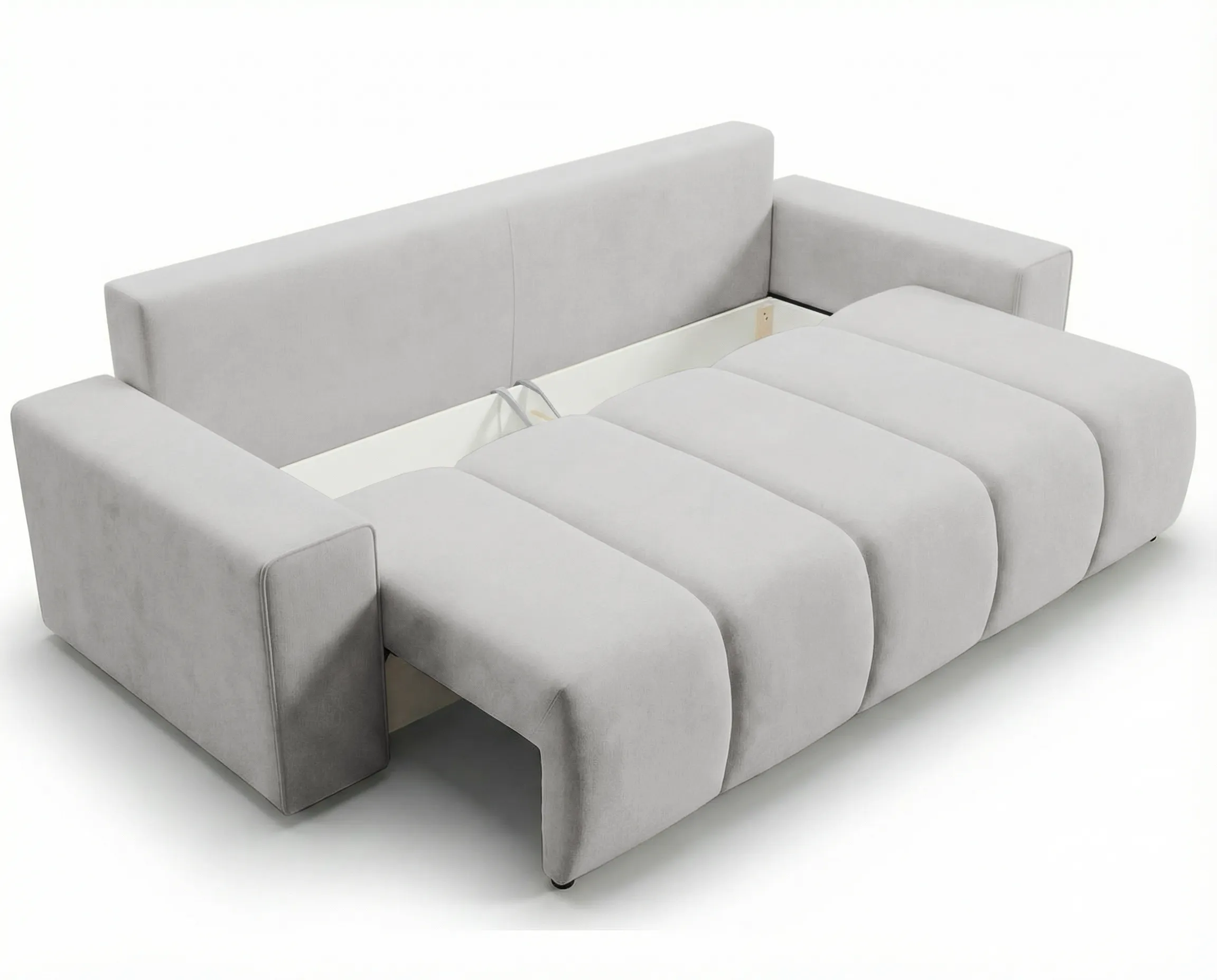 Model został wyposażony w funkcję spania otwieraną za pomocą automatu DL, który umożliwia szybkie i wygodne rozkładanie – bez konieczności użycia dużej siły. Po rozłożeniu sofa oferuje komfortową i równą powierzchnię spania, idealną zarówno do codziennego użytkowania, jak i dla gości.