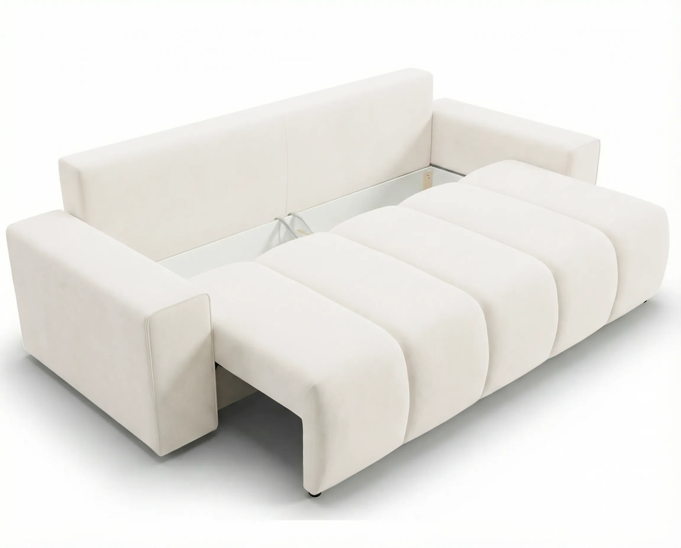 Model został wyposażony w funkcję spania otwieraną za pomocą automatu DL, który umożliwia szybkie i wygodne rozkładanie – bez konieczności użycia dużej siły. Po rozłożeniu sofa oferuje komfortową i równą powierzchnię spania, idealną zarówno do codziennego użytkowania, jak i dla gości.