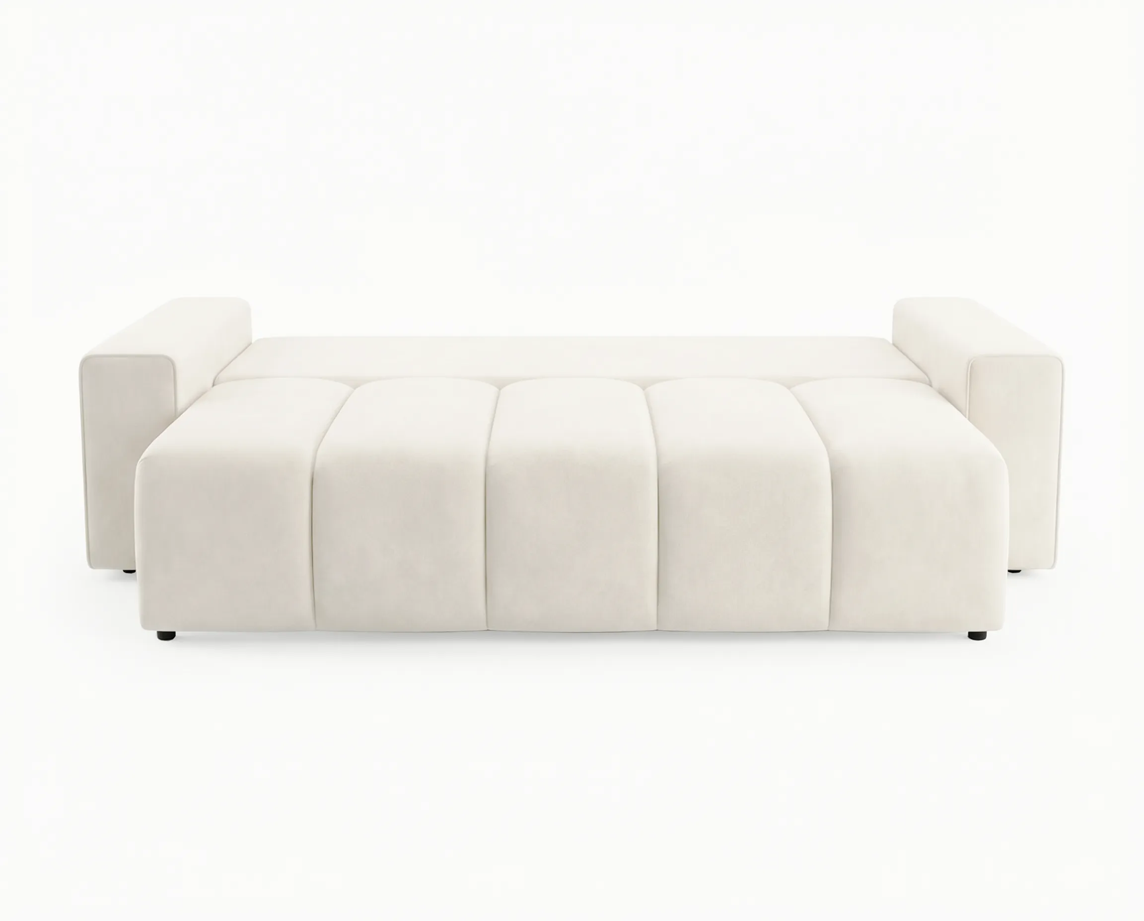 Model został wyposażony w funkcję spania otwieraną za pomocą automatu DL, który umożliwia szybkie i wygodne rozkładanie – bez konieczności użycia dużej siły. Po rozłożeniu sofa oferuje komfortową i równą powierzchnię spania, idealną zarówno do codziennego użytkowania, jak i dla gości.