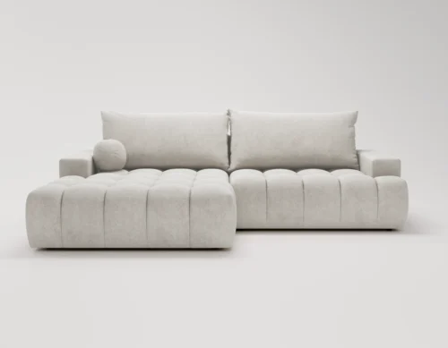 • Narożnik L z funkcją spania i pojemnikiem Nubi lewostronny jasnoszary