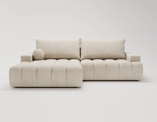 • Narożnik L z funkcją spania i pojemnikiem Nubi lewostronny beżowy