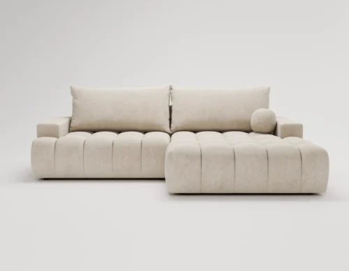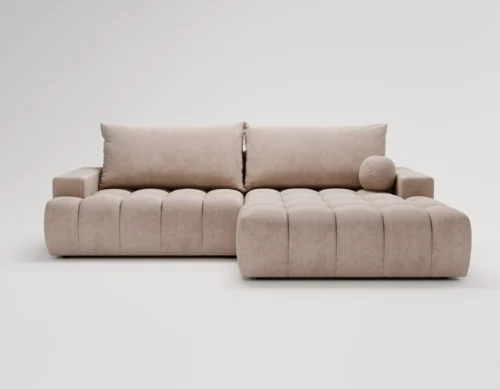 • Narożnik L z funkcją spania i pojemnikiem Nubi prawostronny beżowy