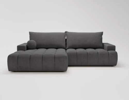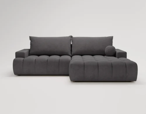 • Narożnik L z funkcją spania i pojemnikiem Nubi prawostronny ciemnoszary