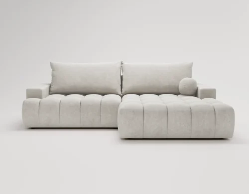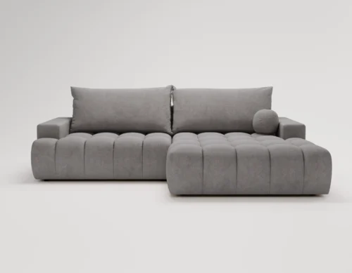 • Narożnik L z funkcją spania i pojemnikiem Nubi prawostronny jasnoszary